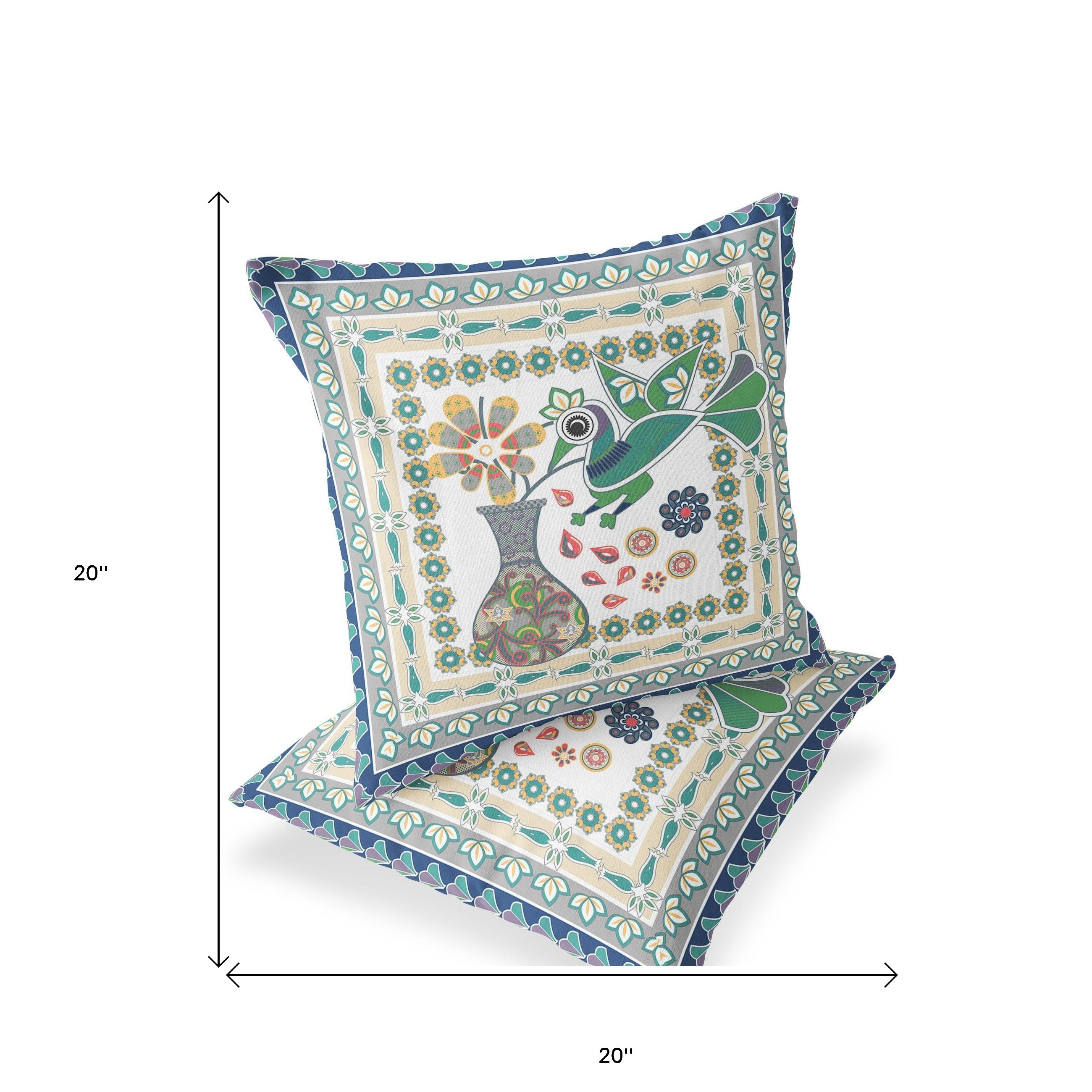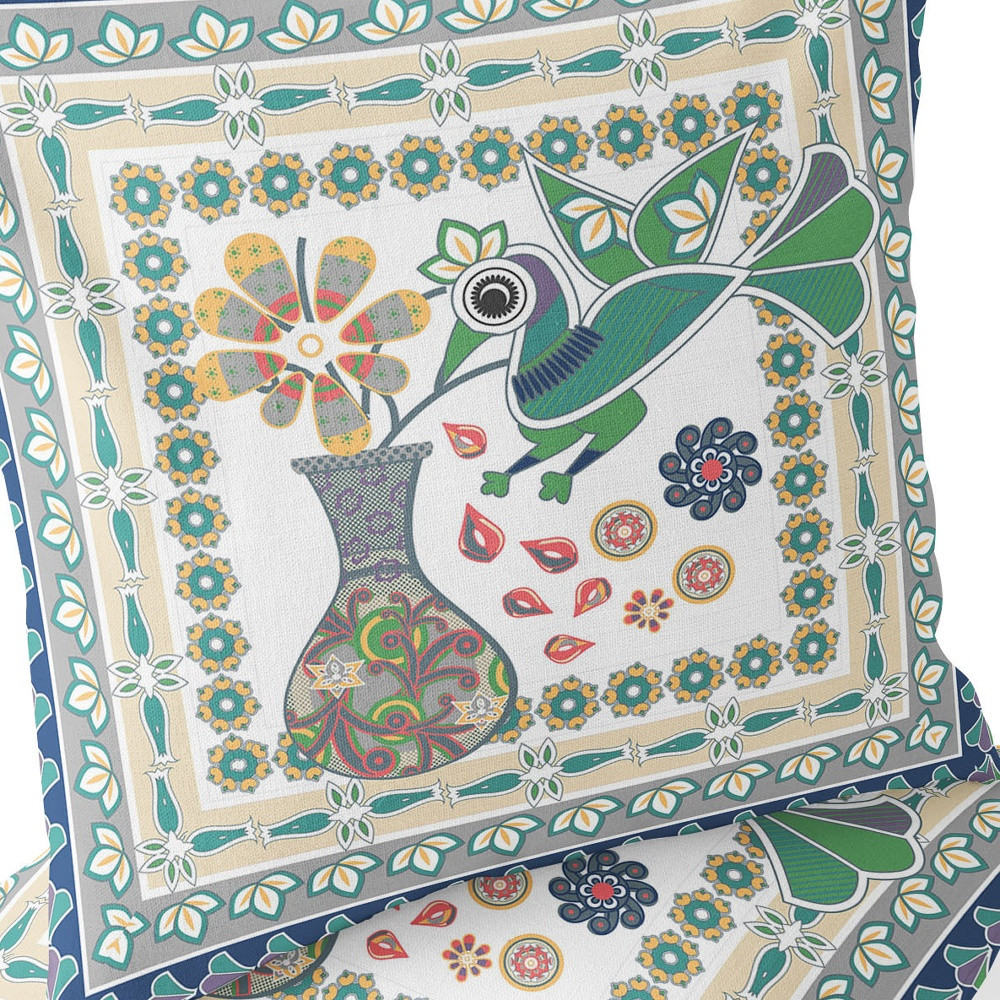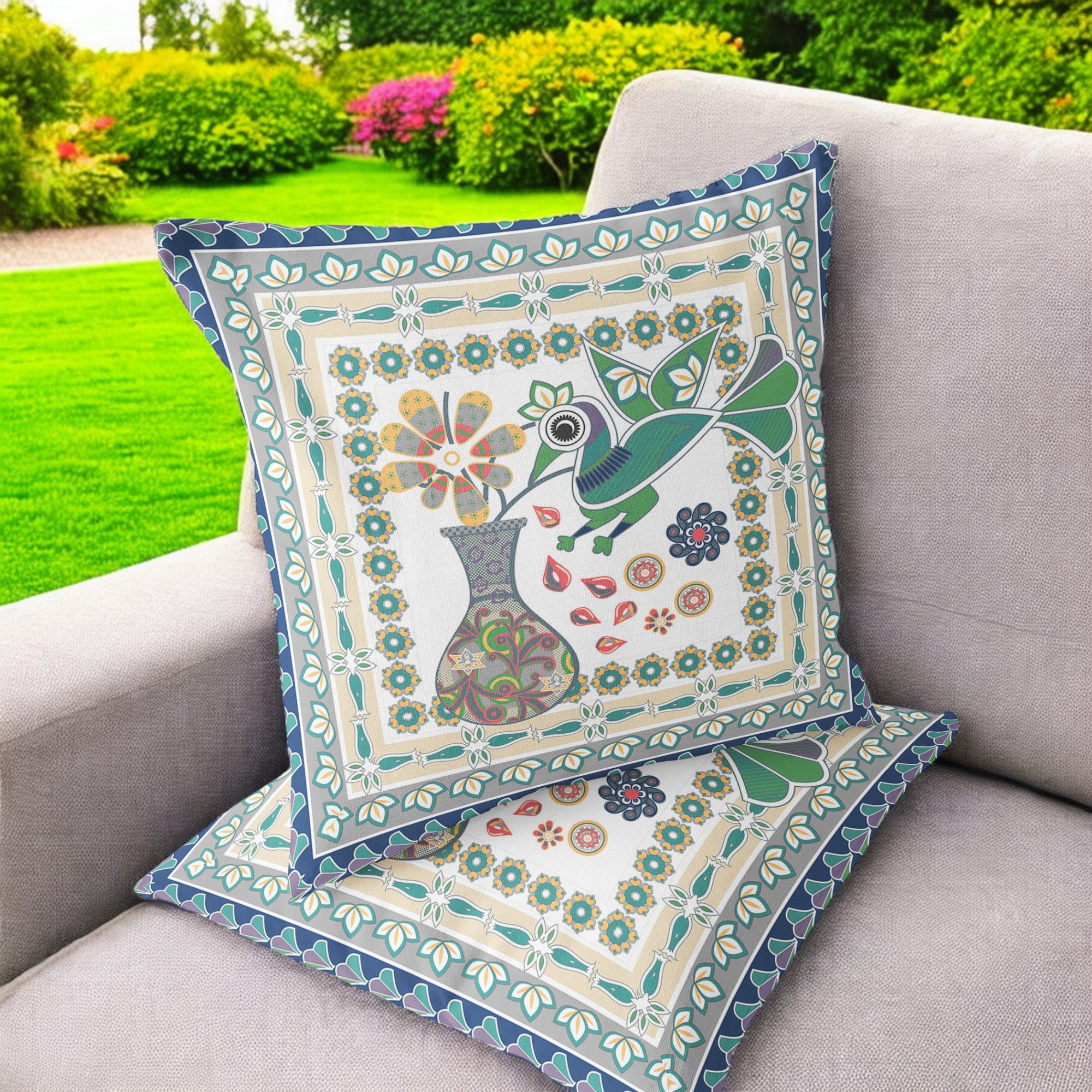 Love Your Vase Peacock Indoor/Outdoor Set of 2 Pillows in Cream Green Yellow