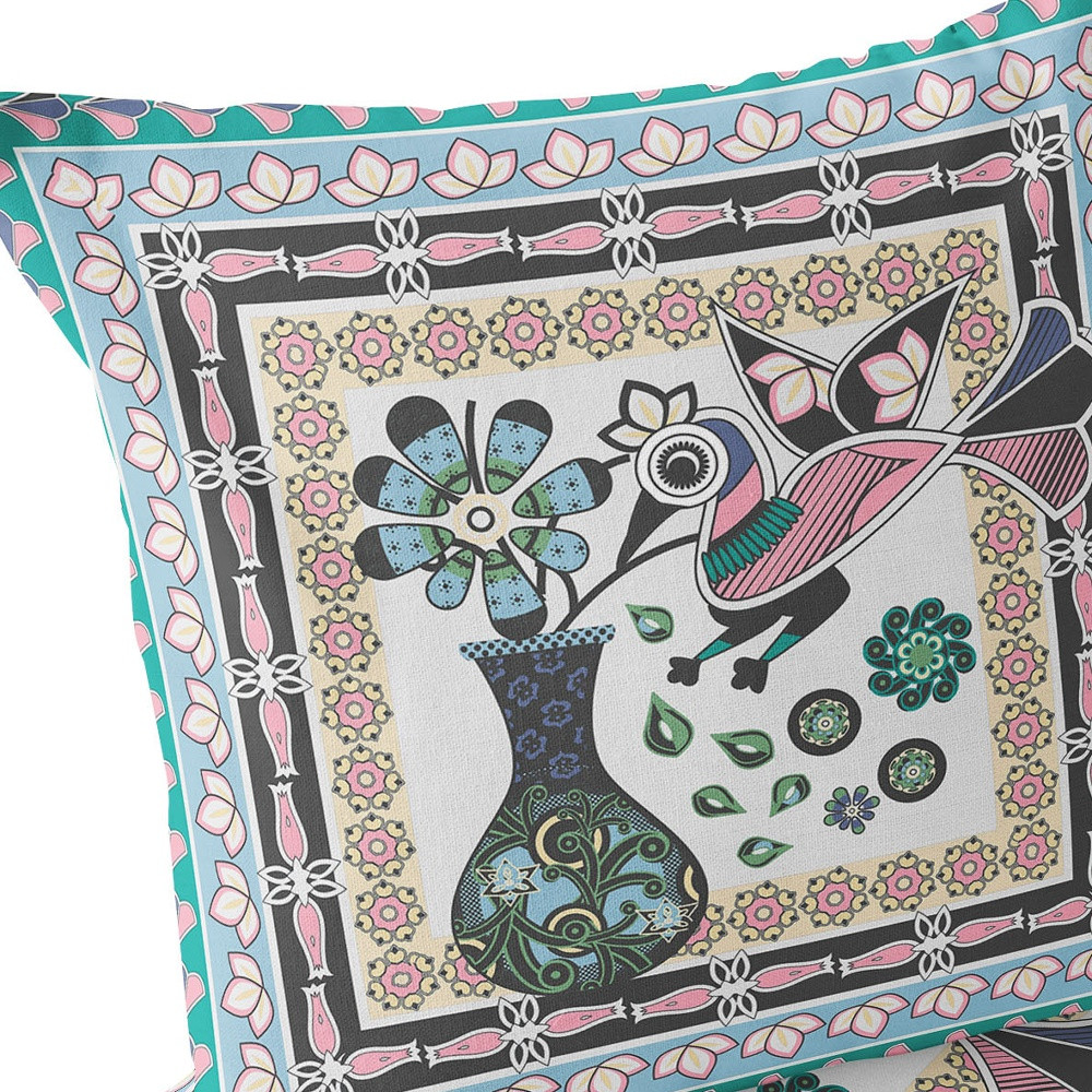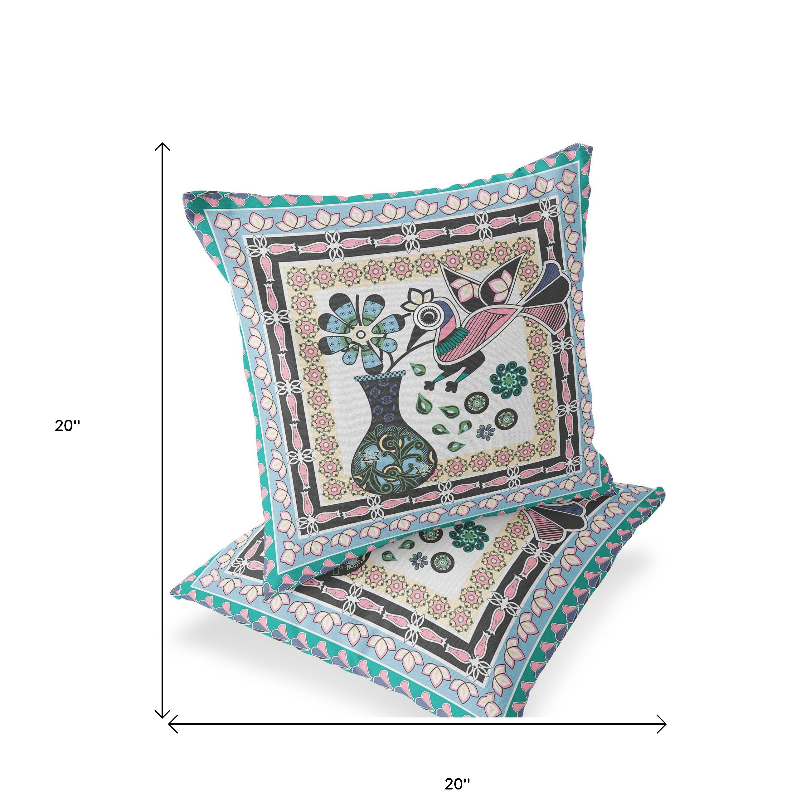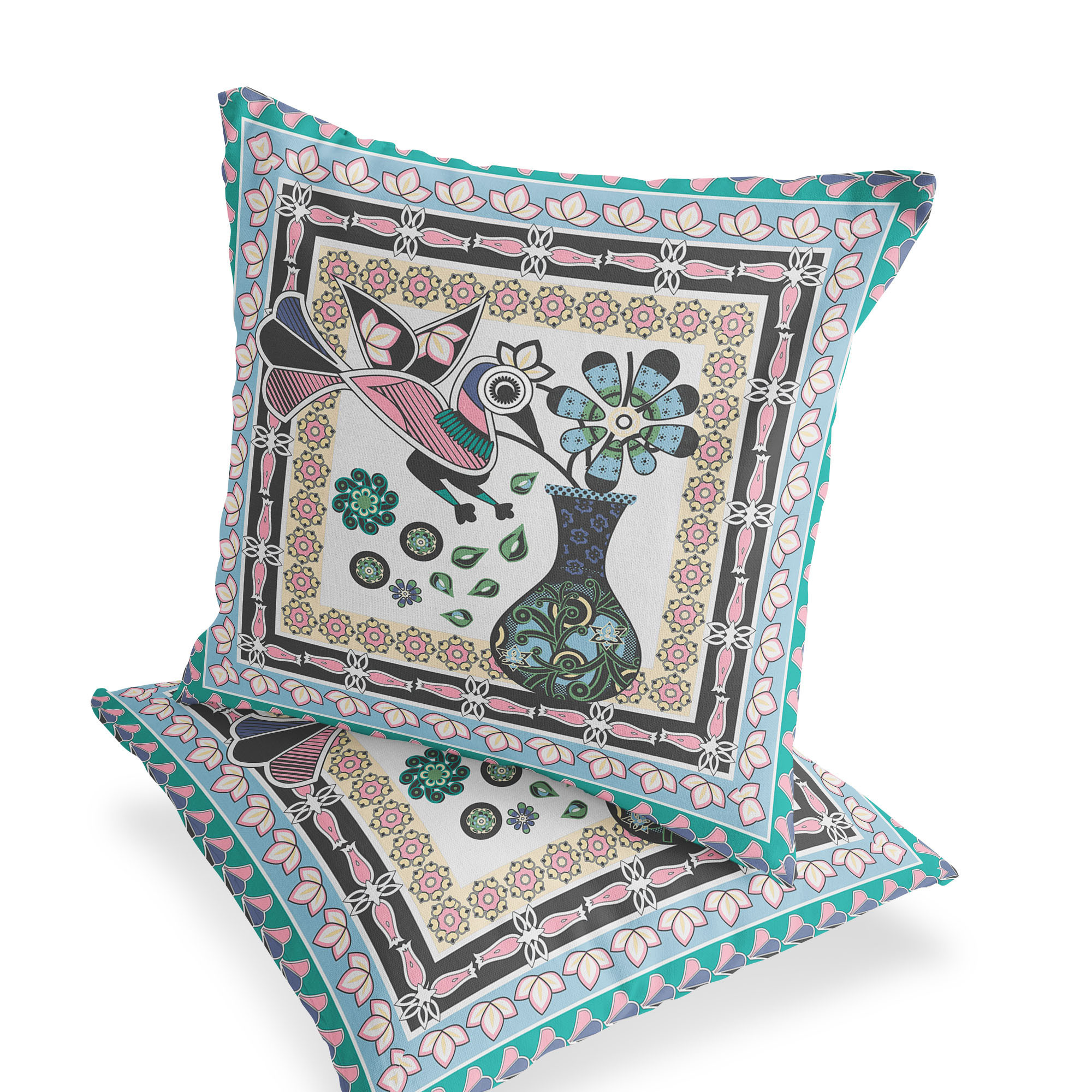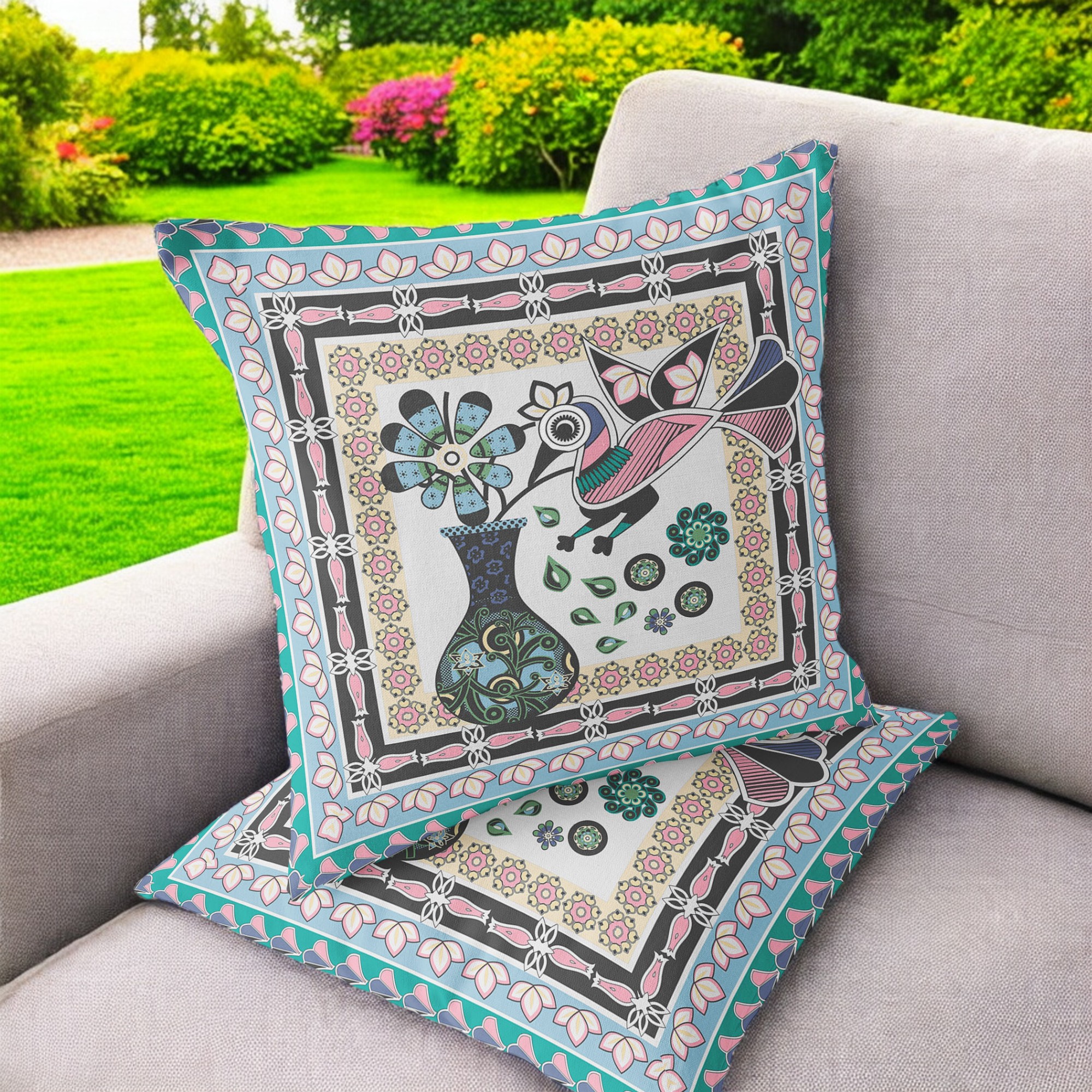 Love Your Vase Peacock Indoor/Outdoor Set of 2 Pillows in Gray Black Pink