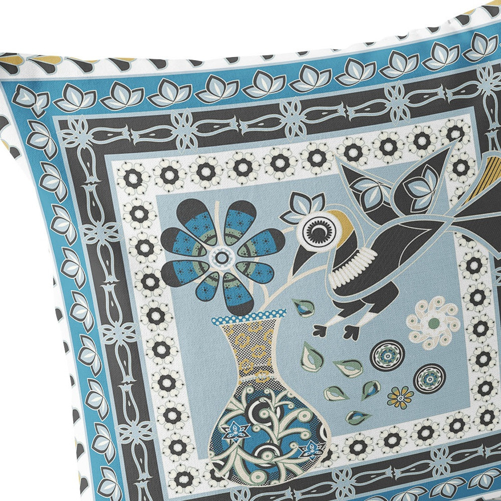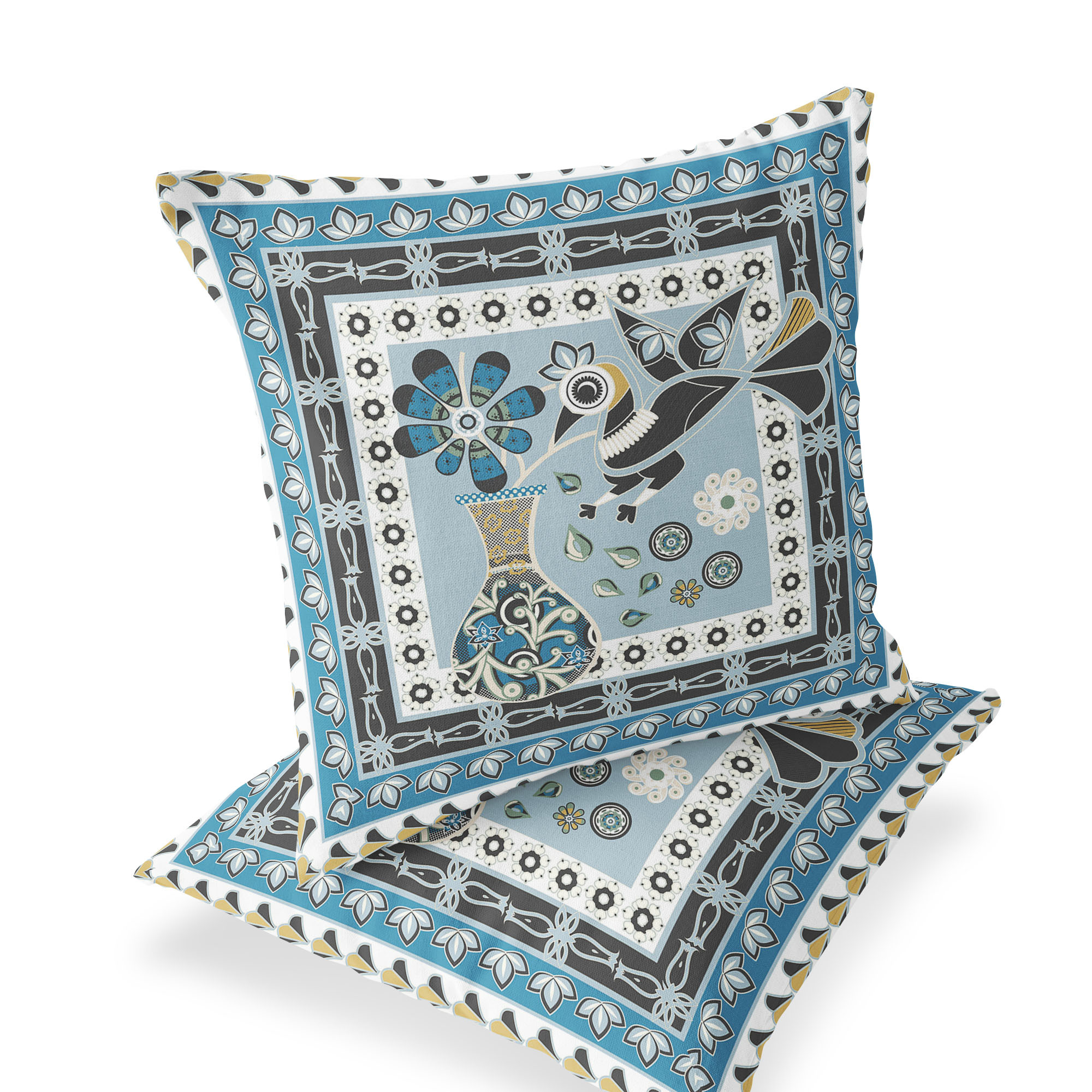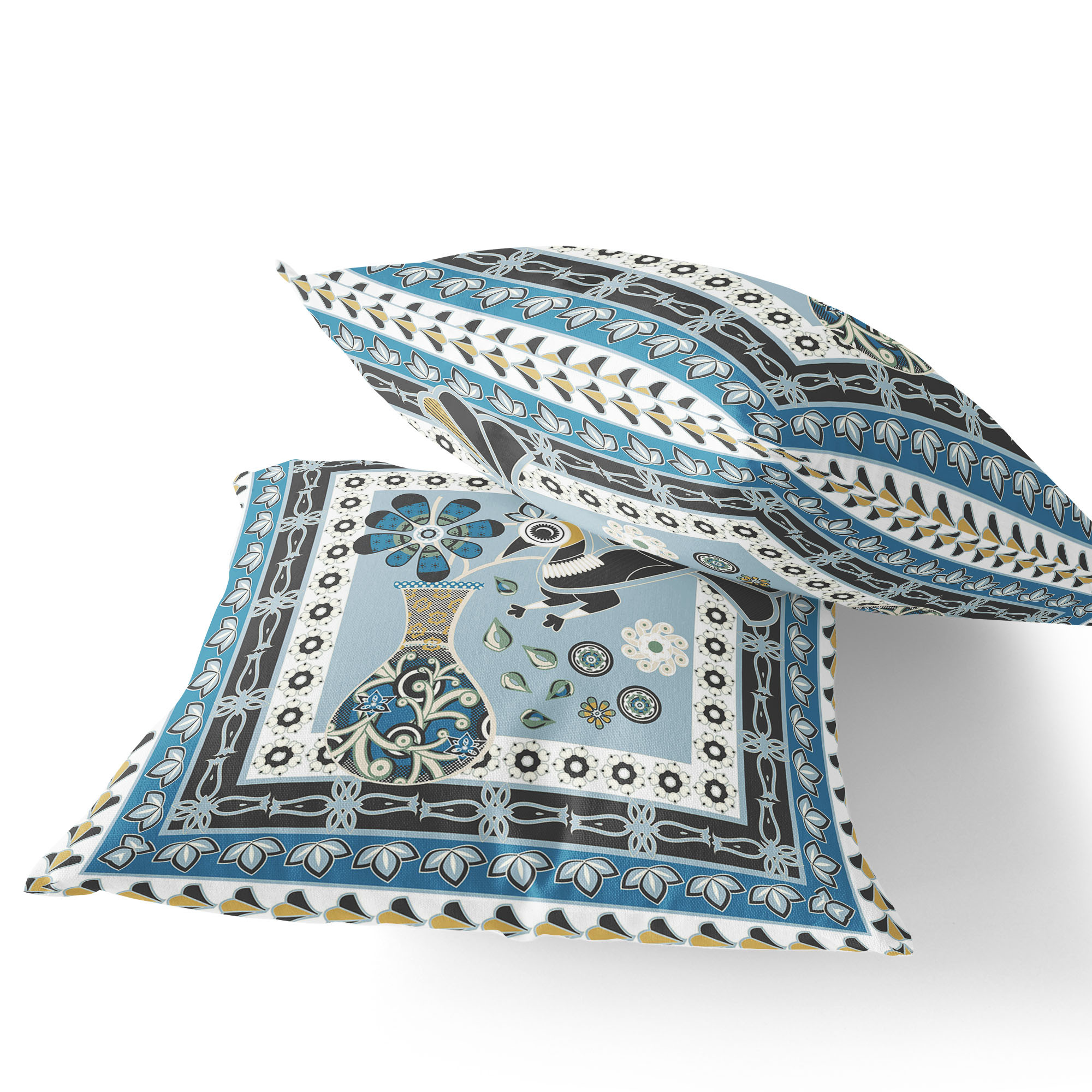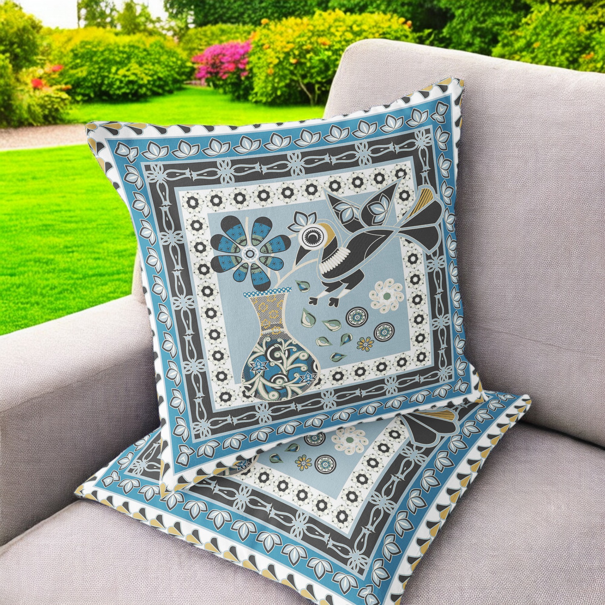 Love Your Vase Peacock Indoor/Outdoor Set of 2 Pillows in Light Blue Black White
