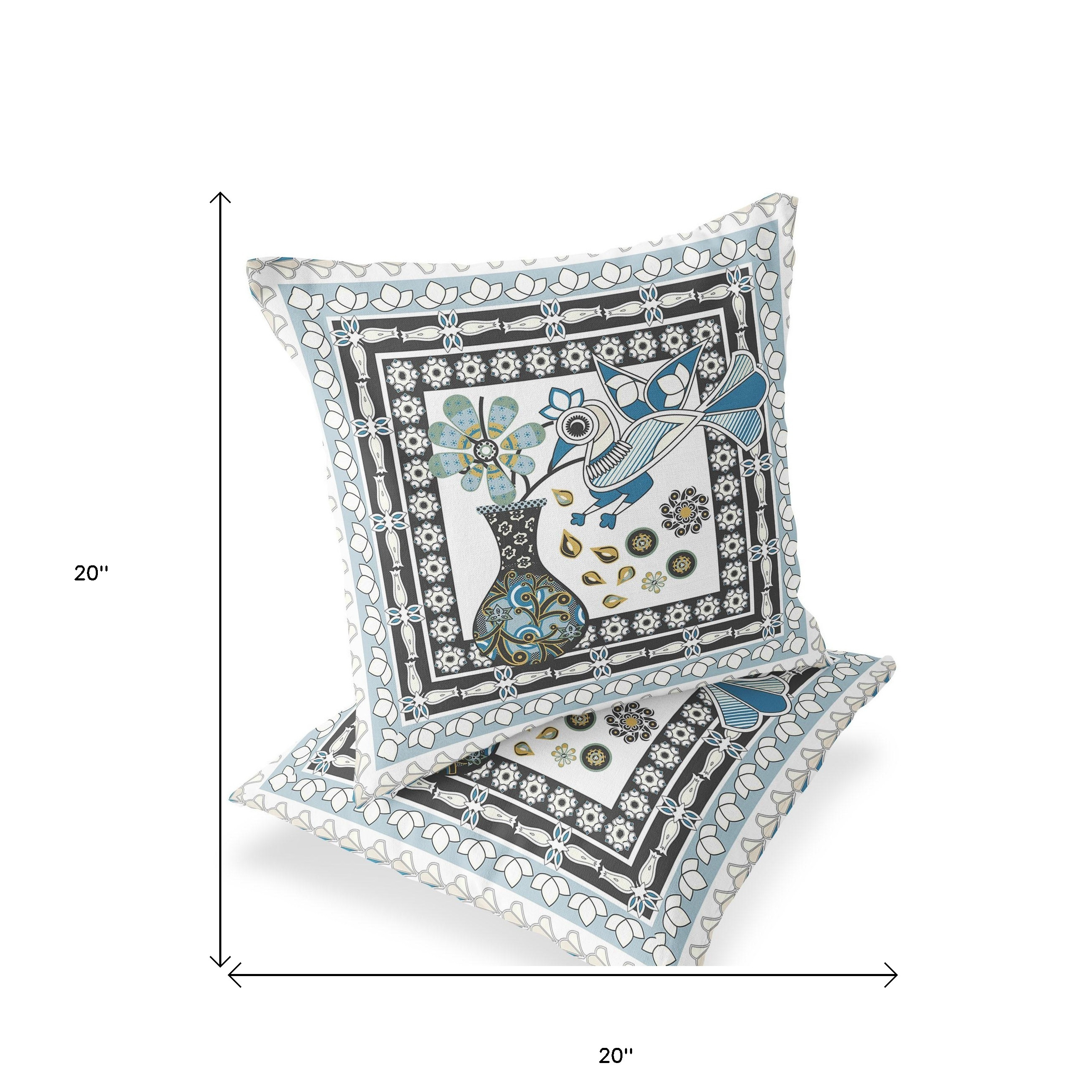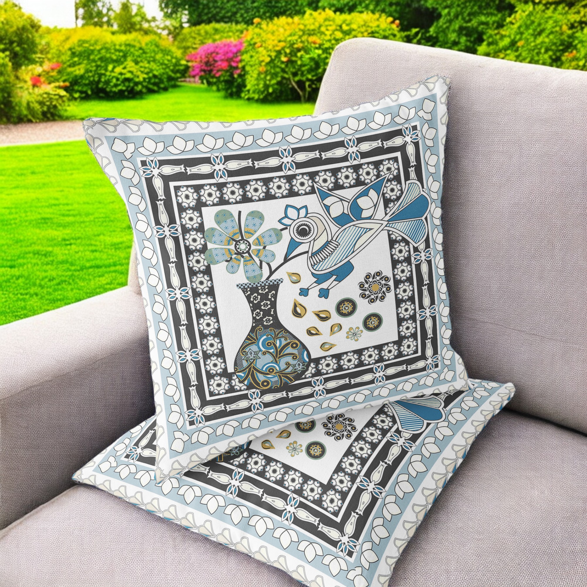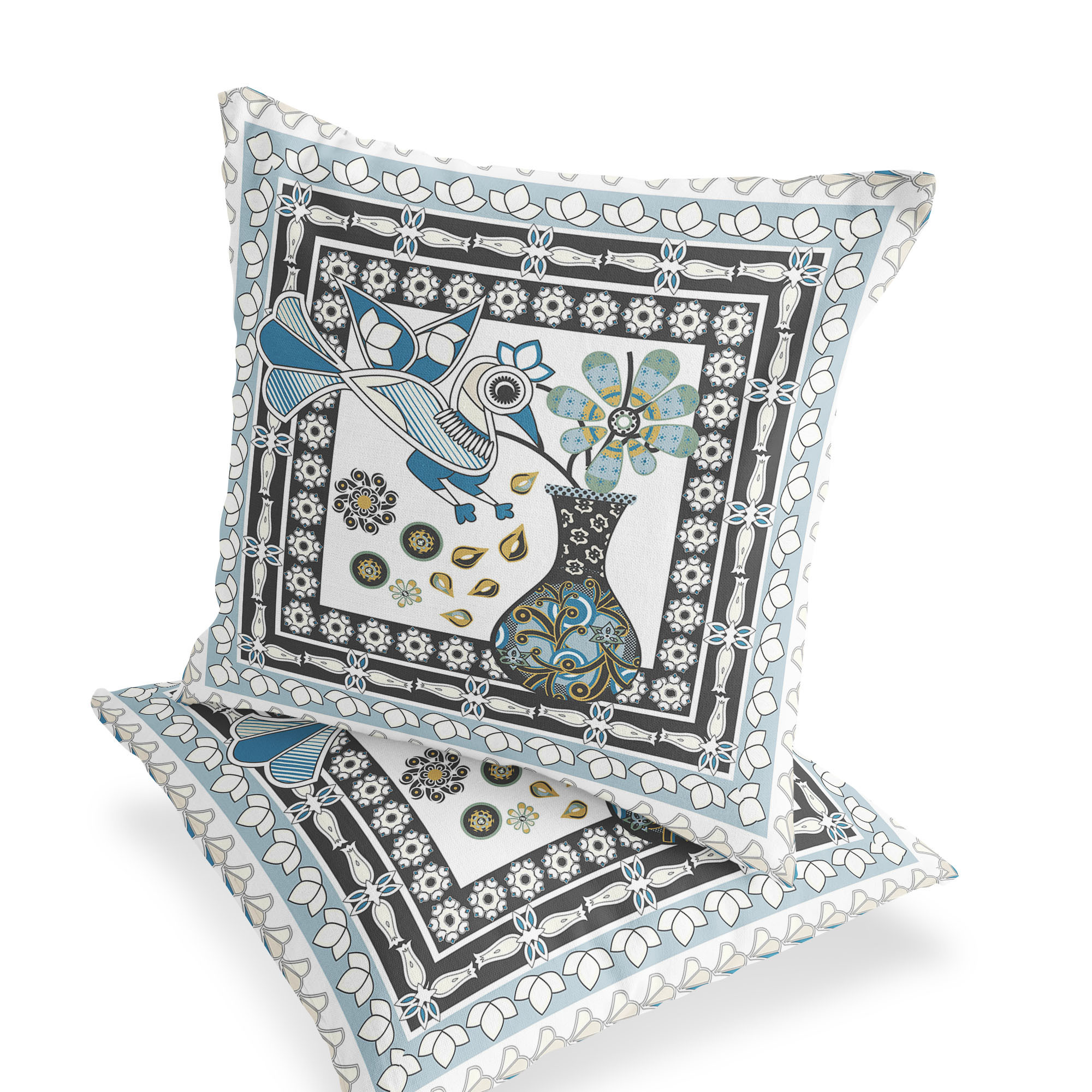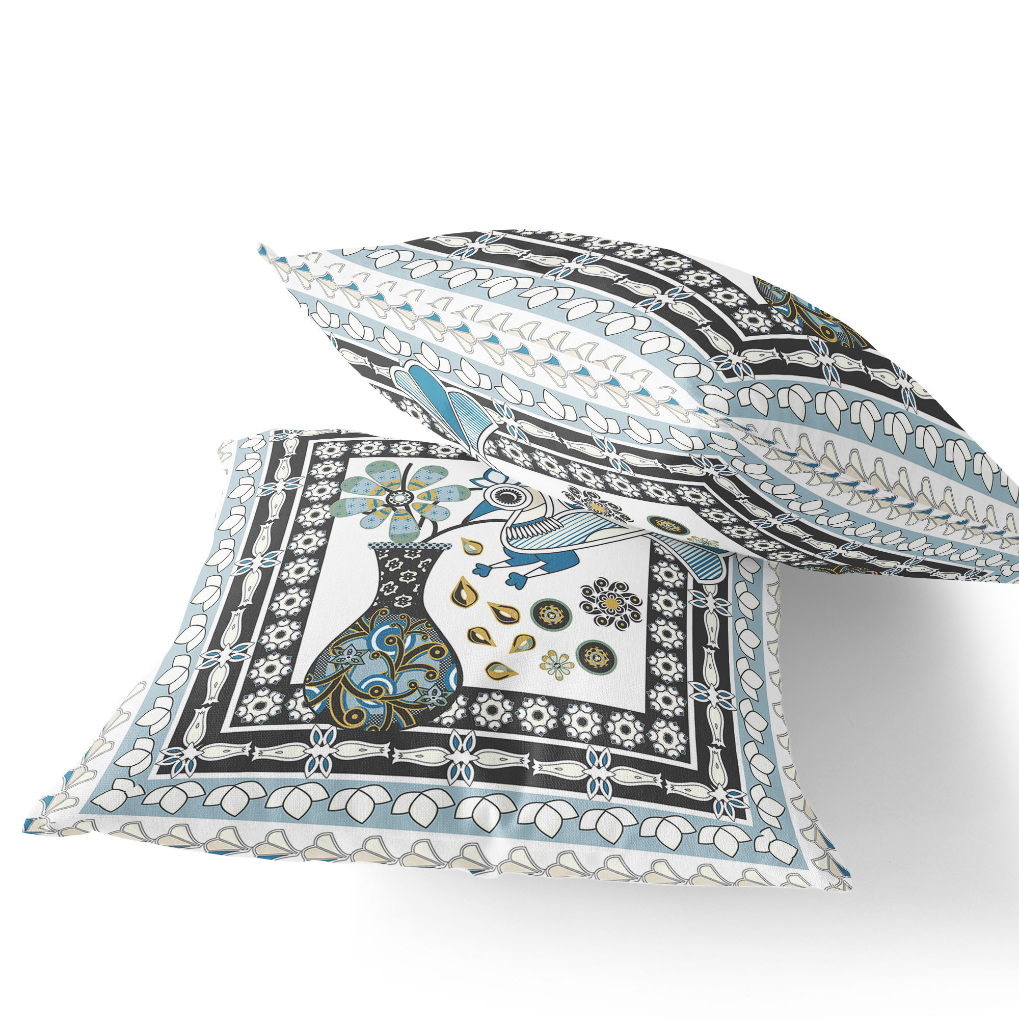 Love Your Vase Peacock Indoor/Outdoor Set of 2 Pillows in White Black Blue