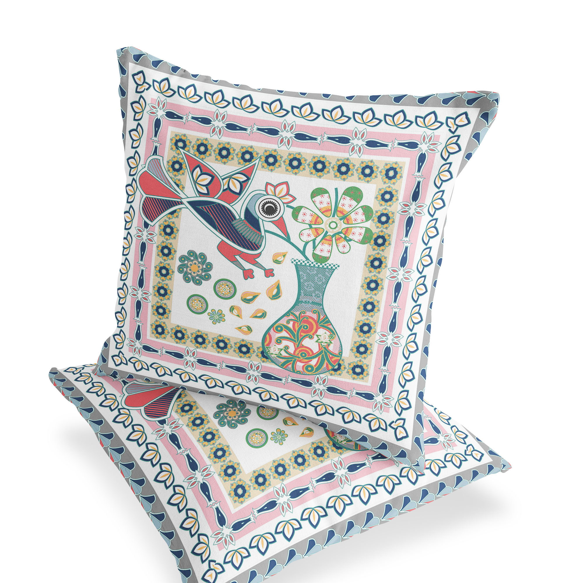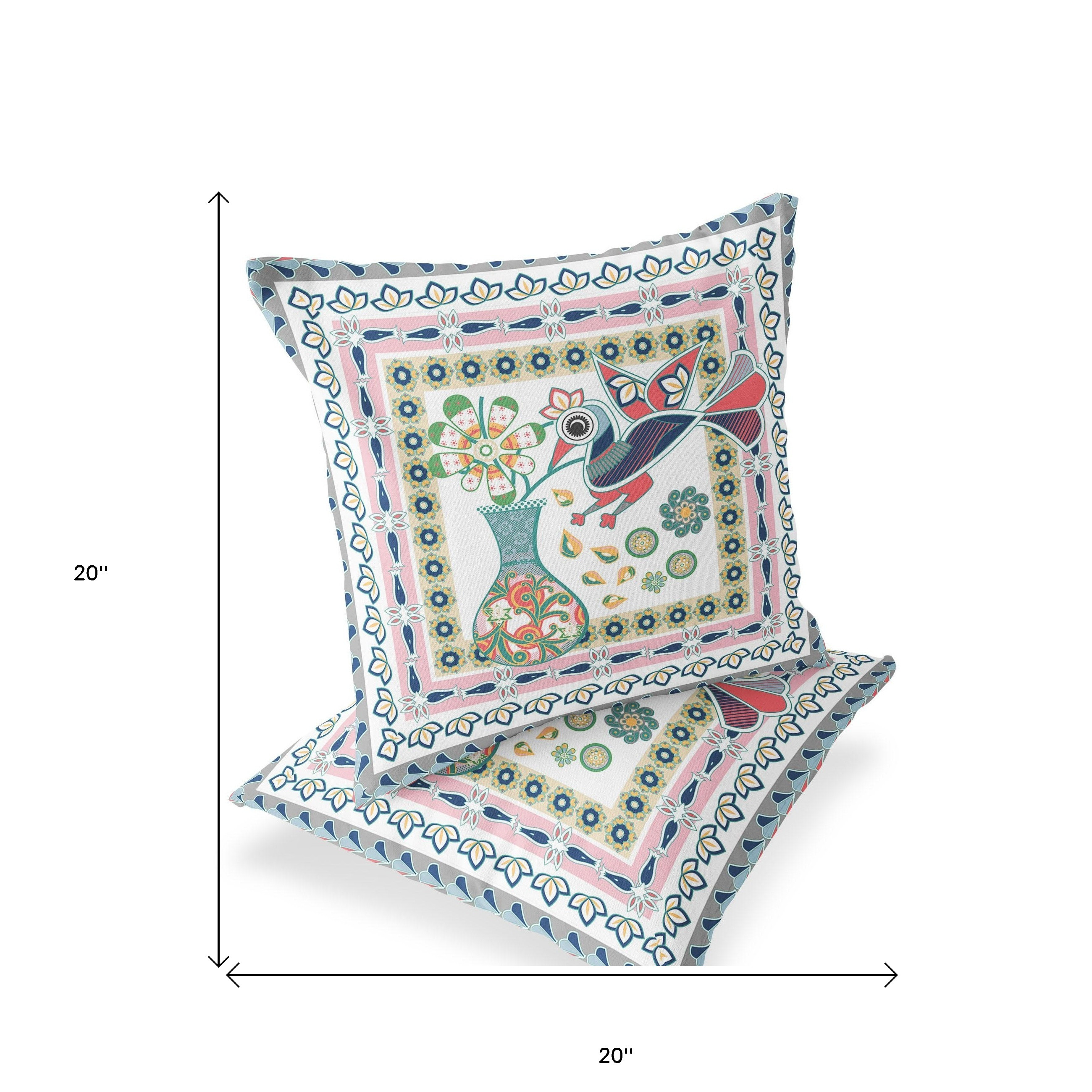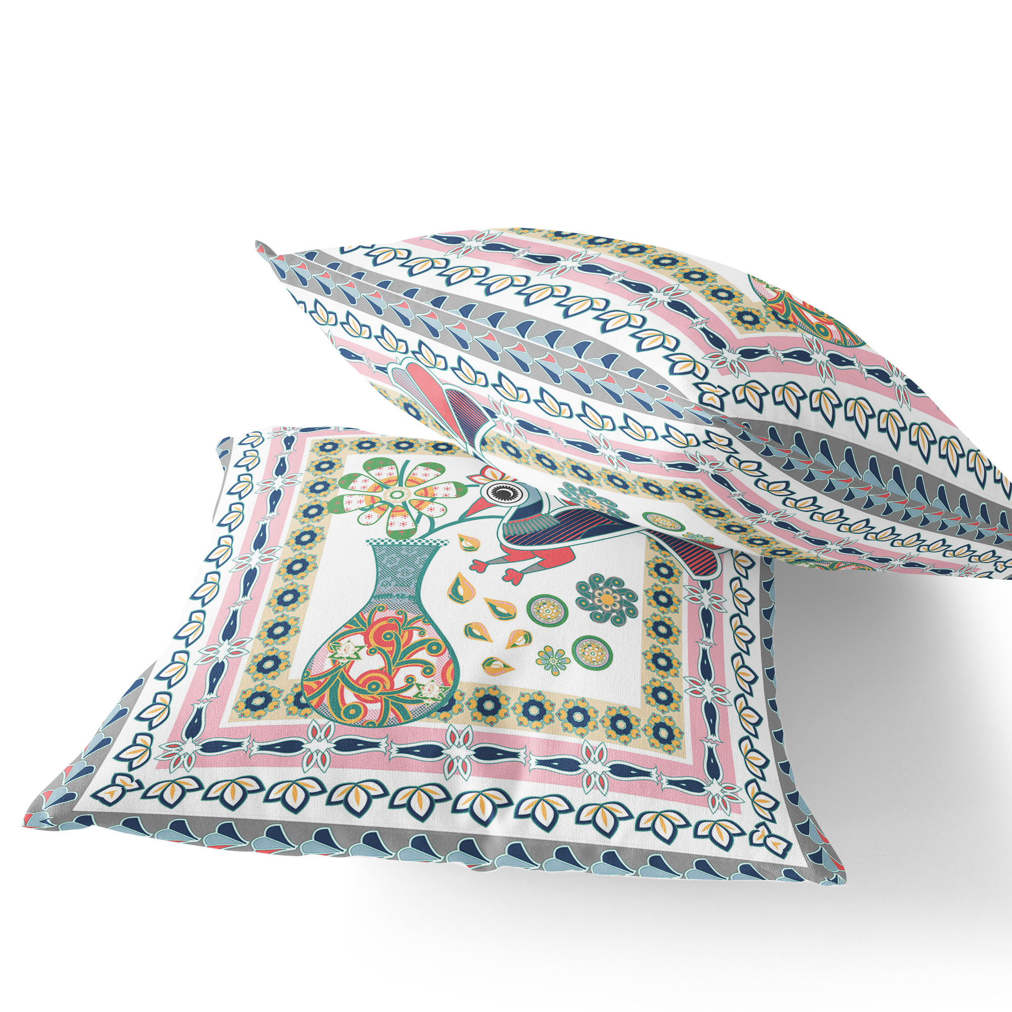 Love Your Vase Peacock Indoor/Outdoor Set of 2 Pillows in White Pink Gray
