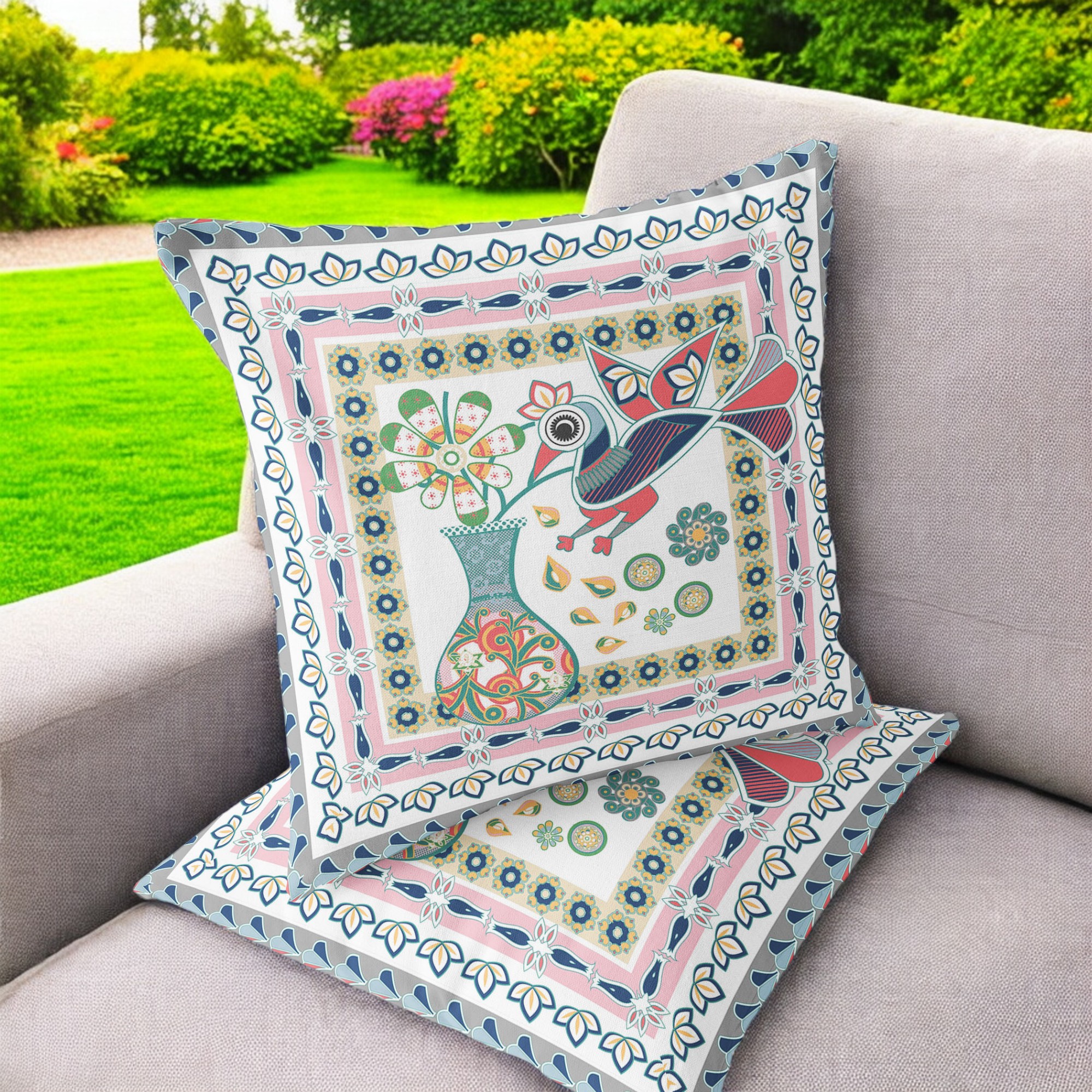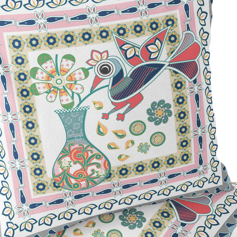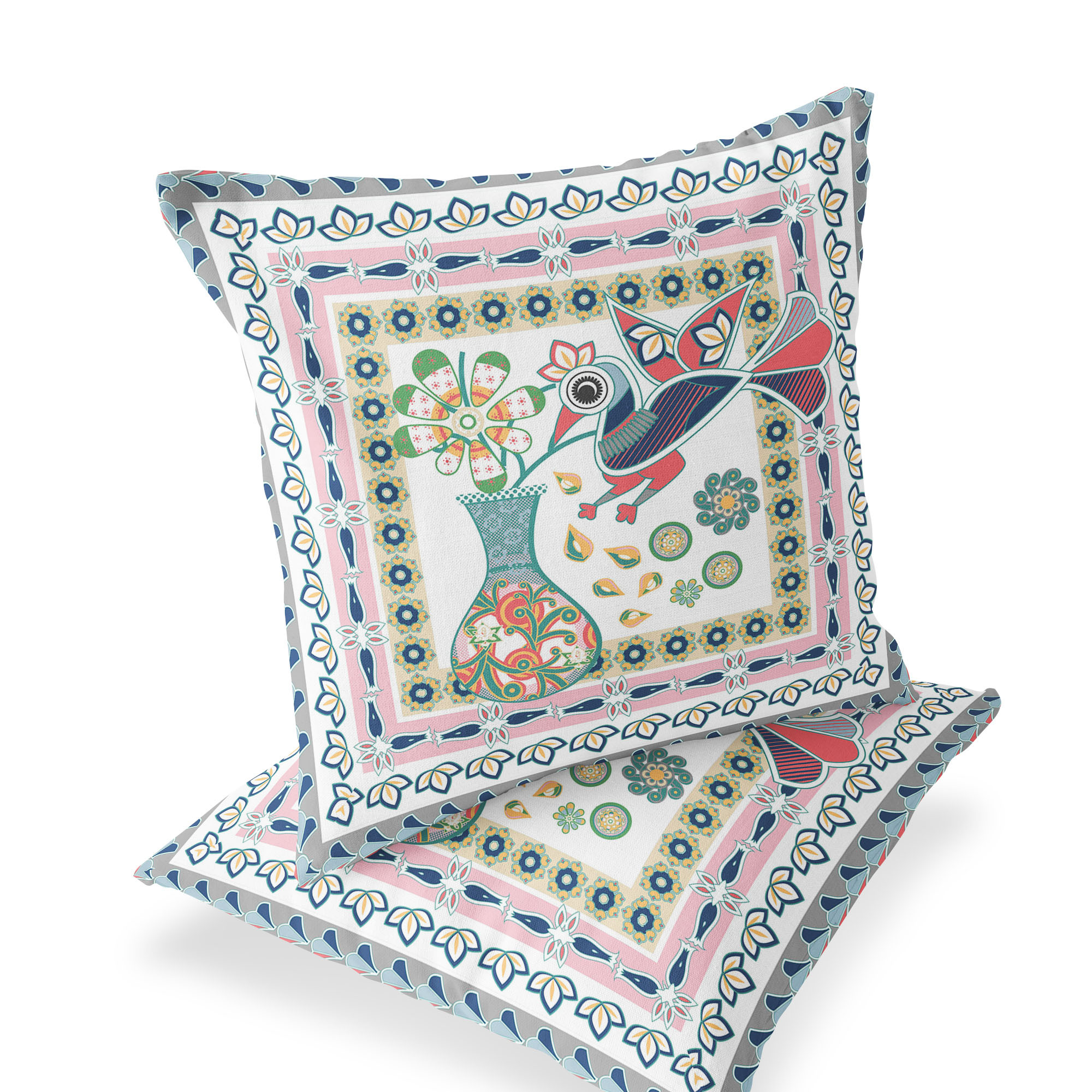 Love Your Vase Peacock Indoor/Outdoor Set of 2 Pillows in White Pink Gray