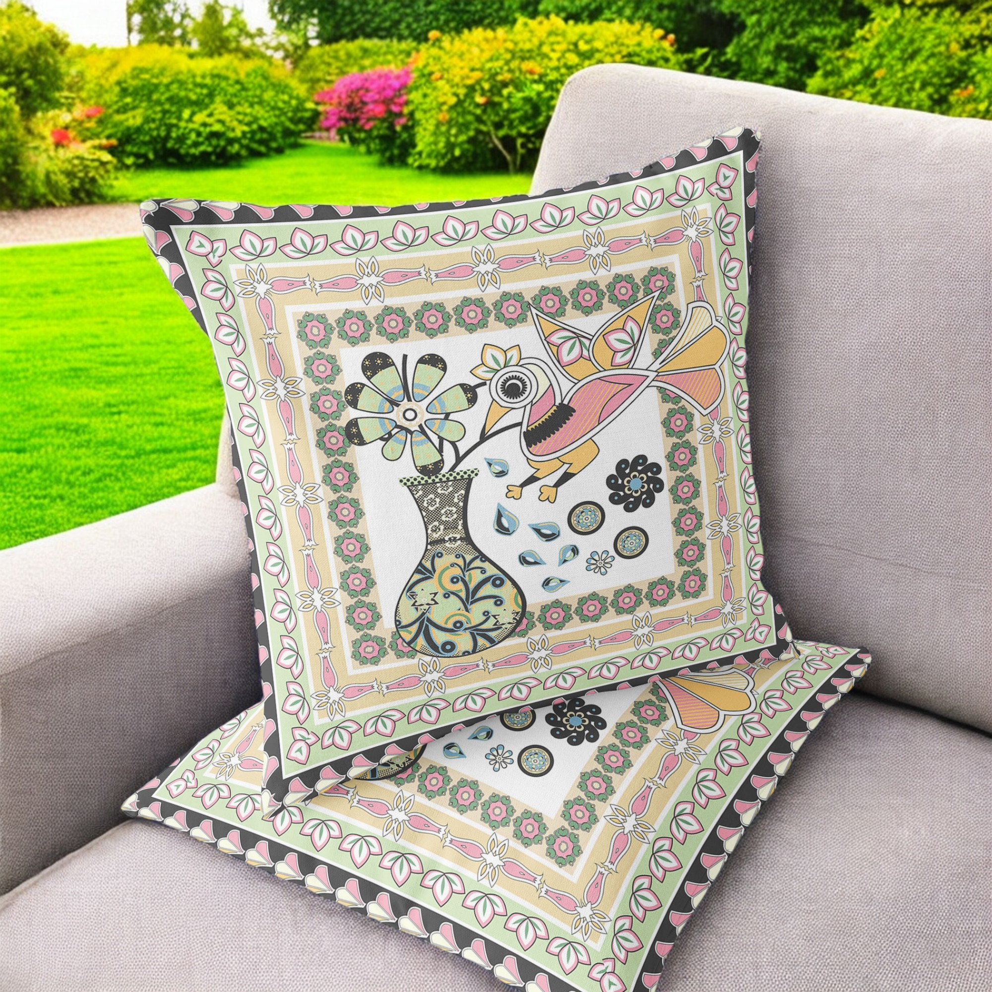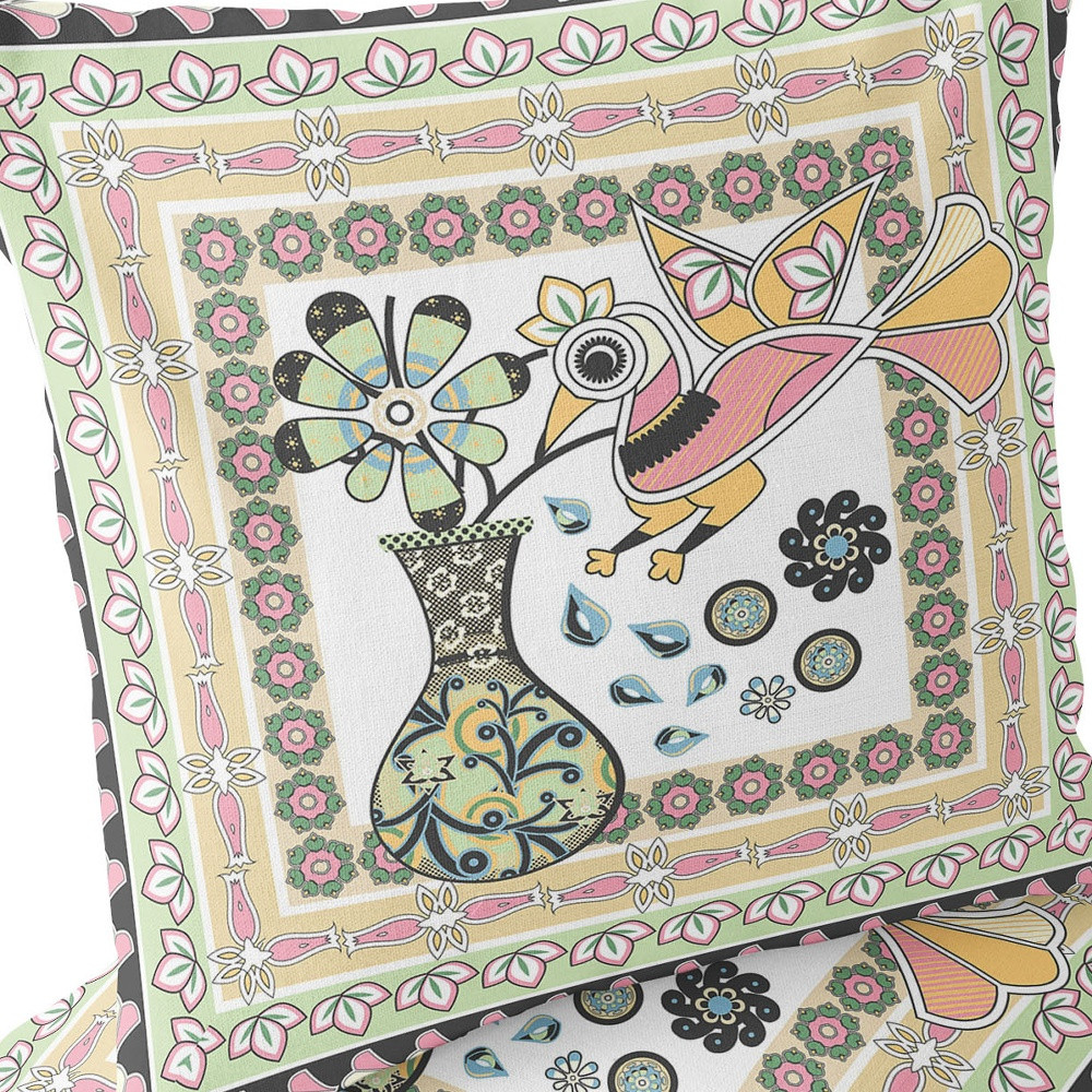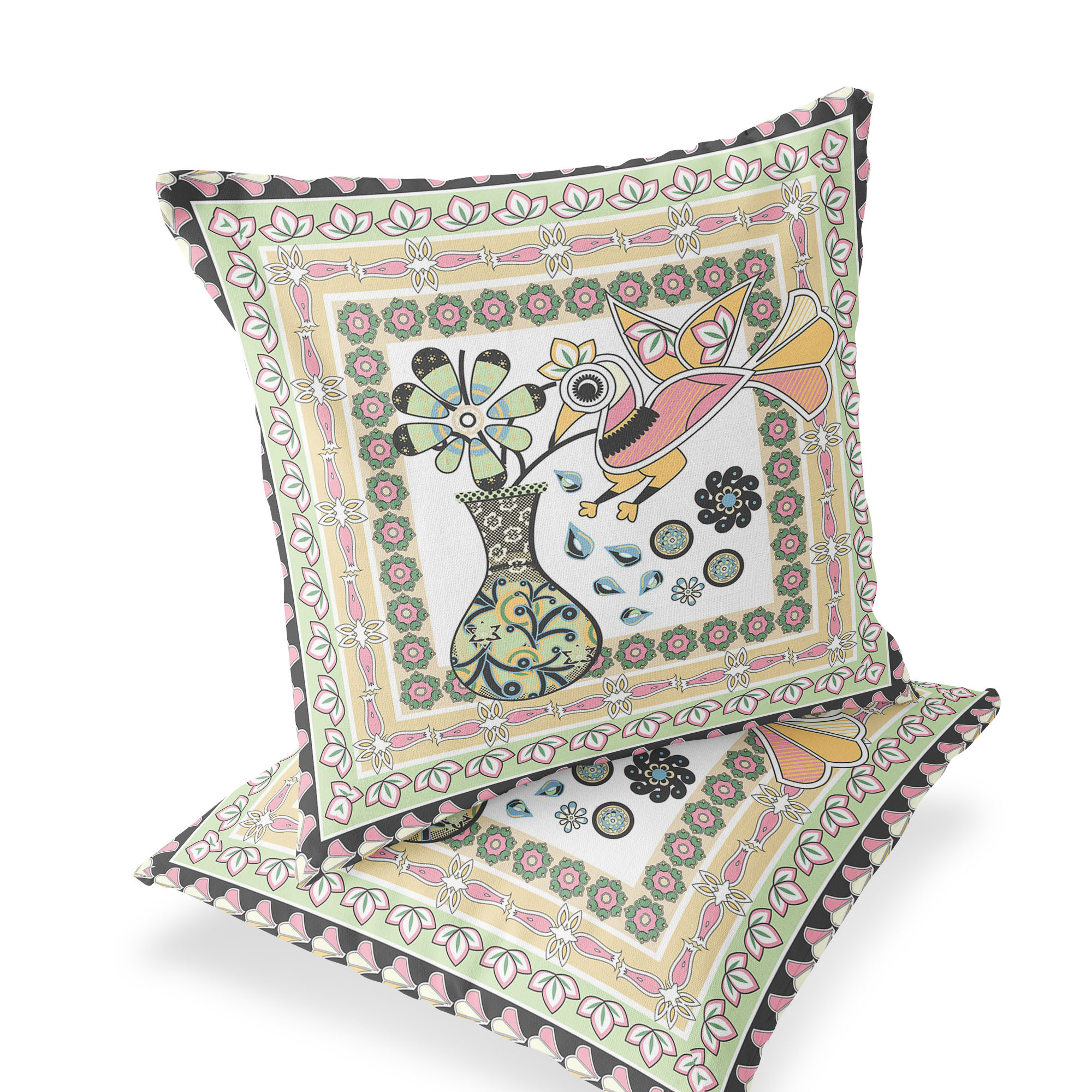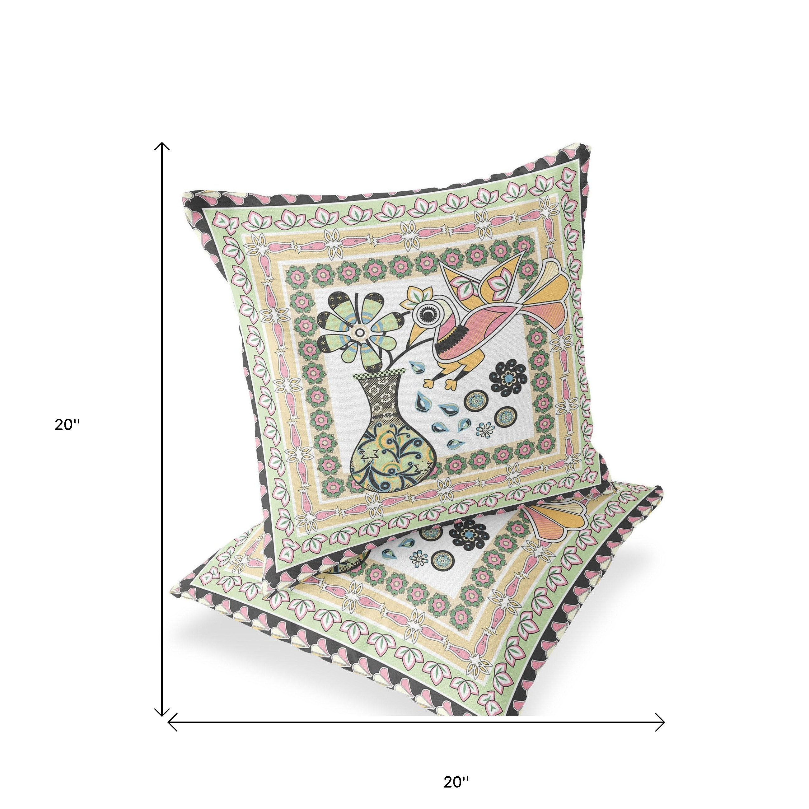Love Your Vase Peacock Indoor/Outdoor Set of 2 Pillows in White Pink Light Green