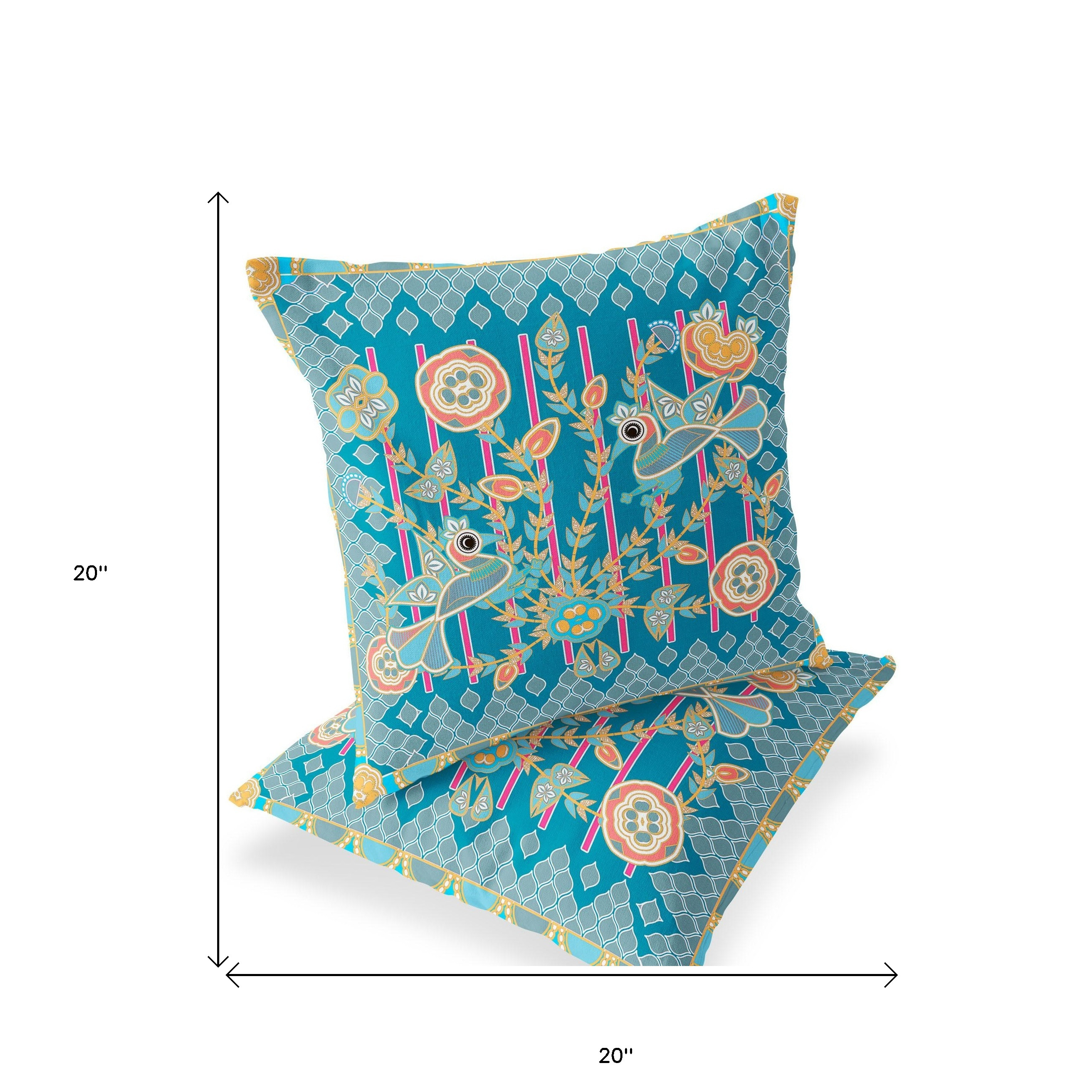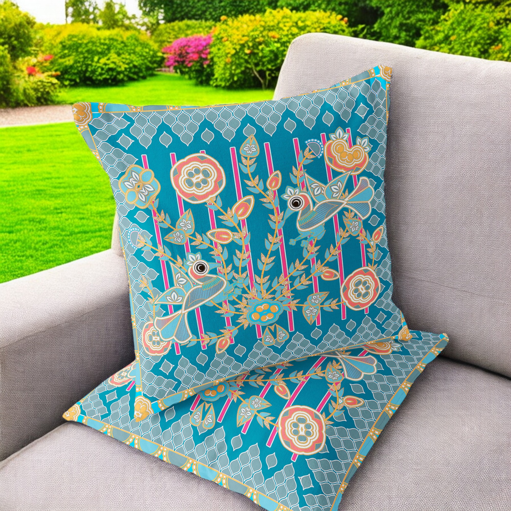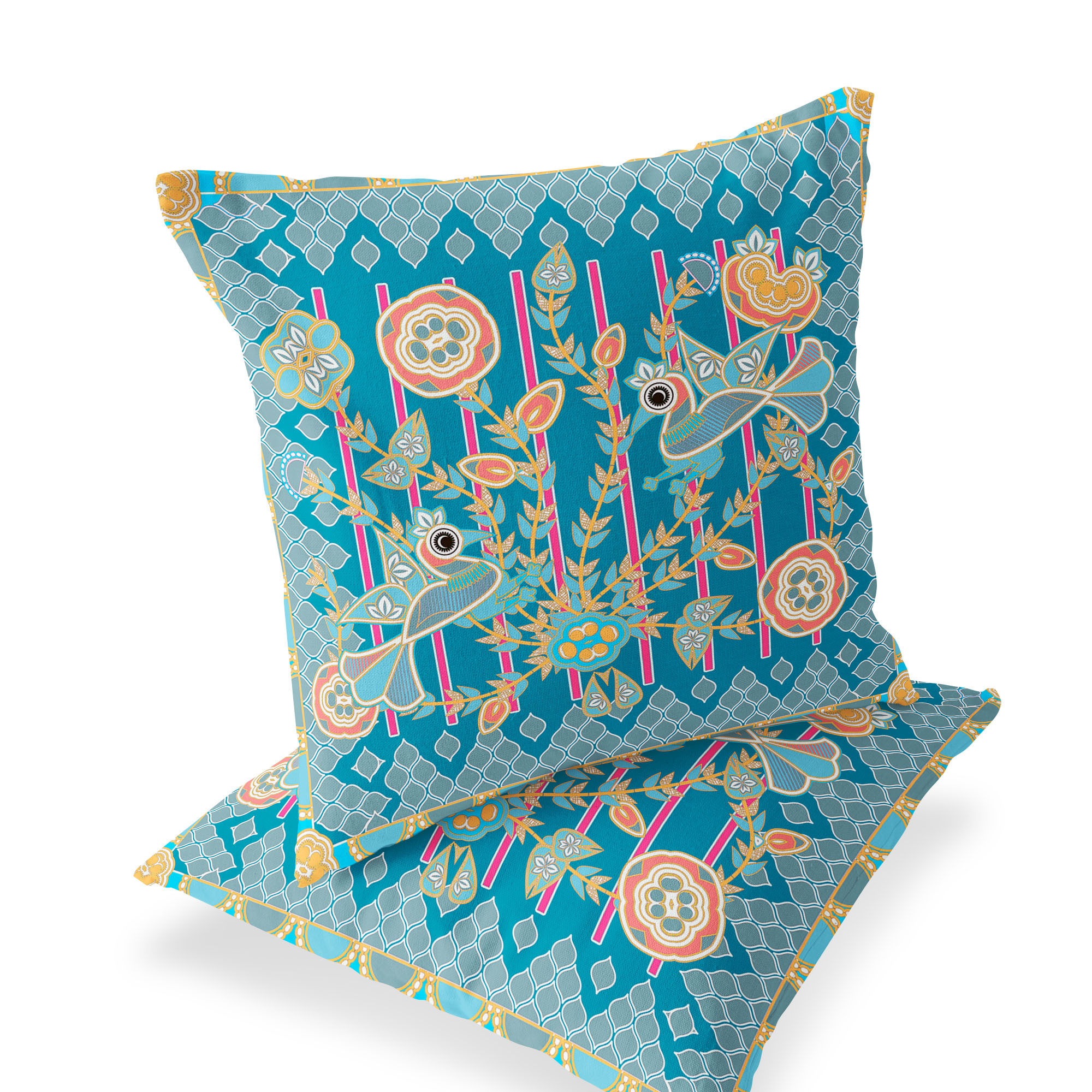 Set of Two Blue Peacock Indoor Outdoor Throw Pillow