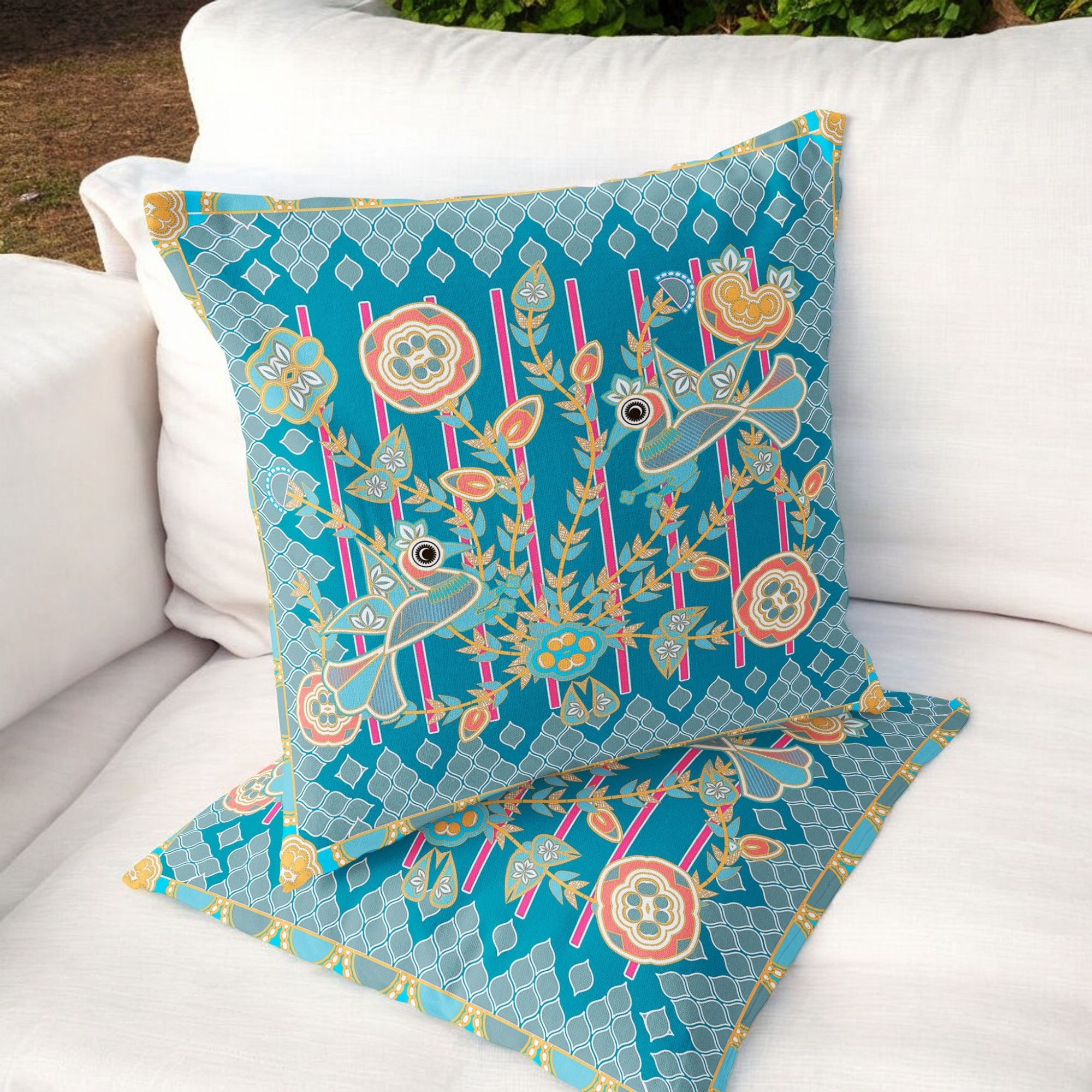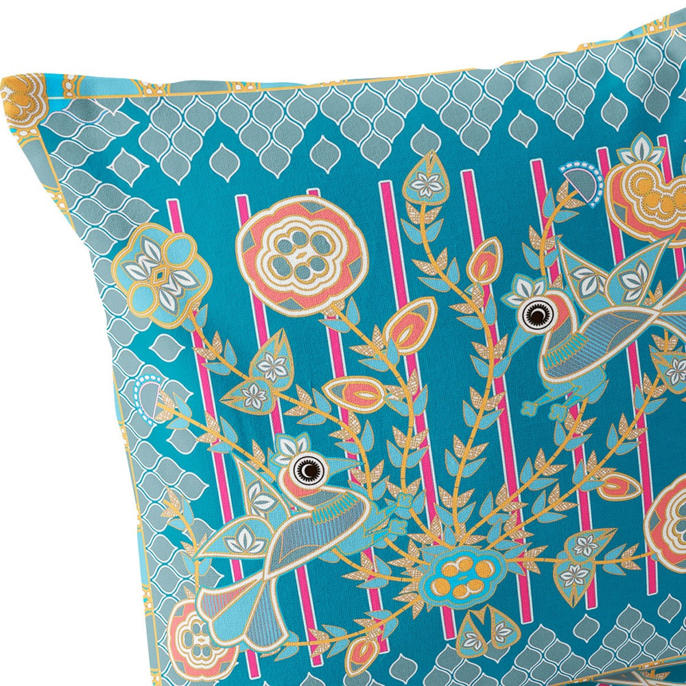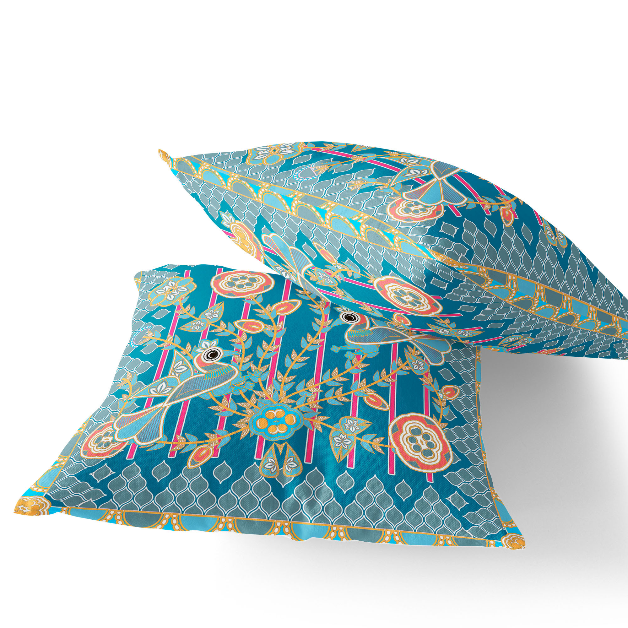 Set of Two Blue Peacock Indoor Outdoor Throw Pillow
