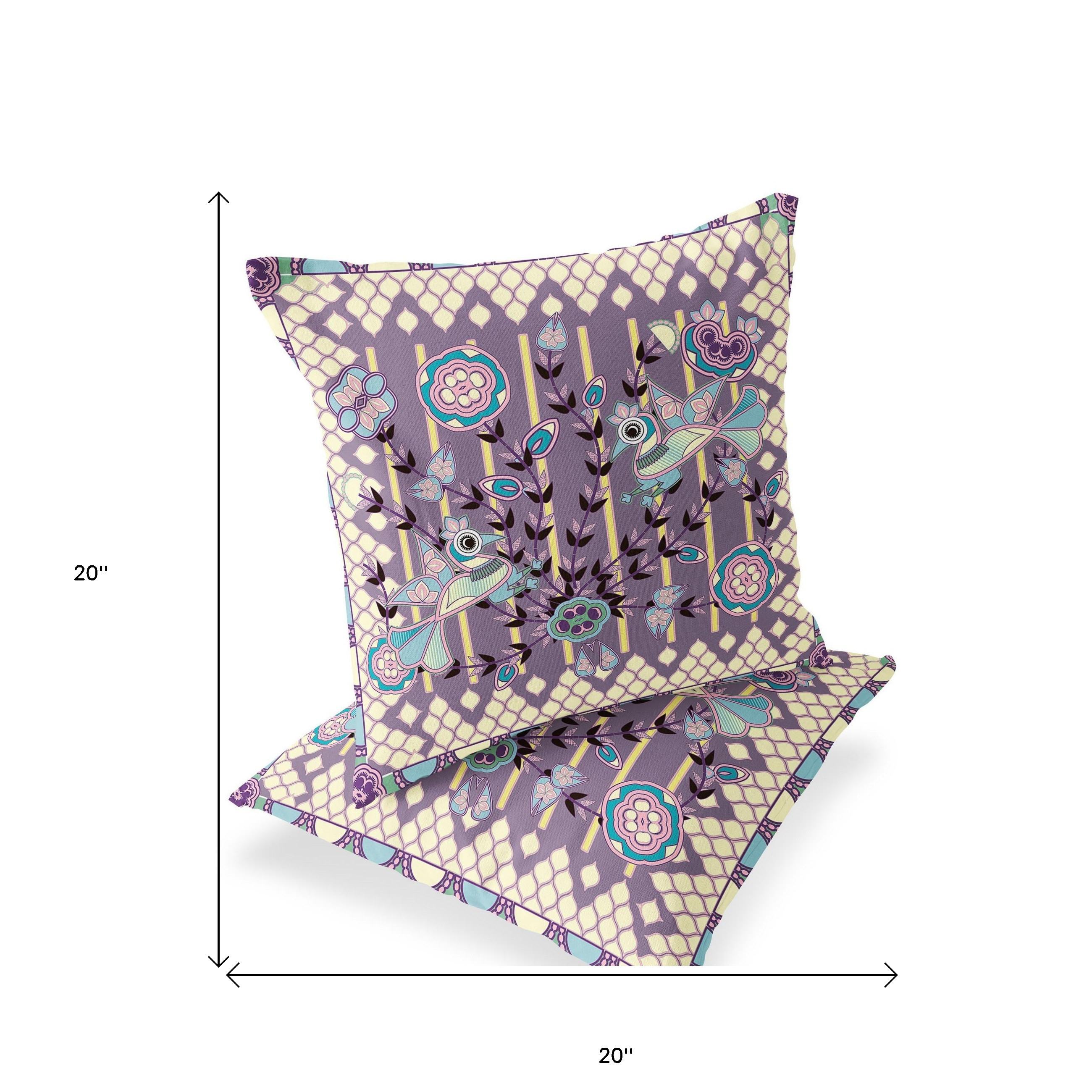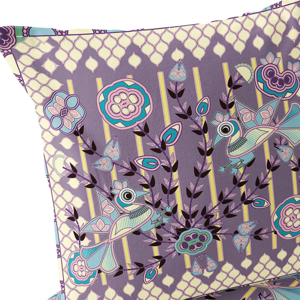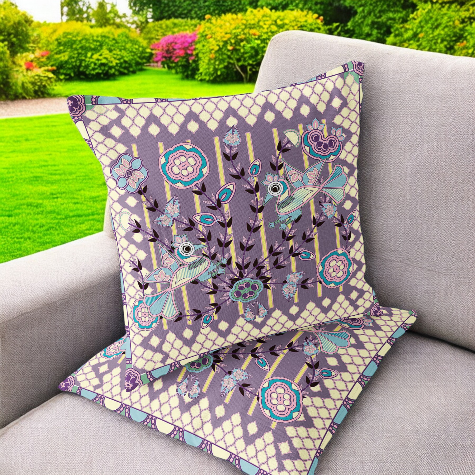 Pond Peacock Indoor/Outdoor Set of 2 Pillows in Muted Purple Yellow