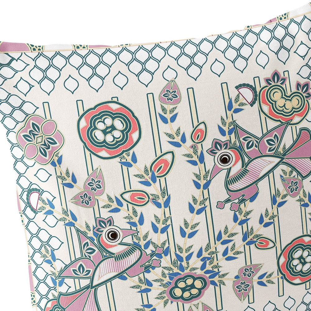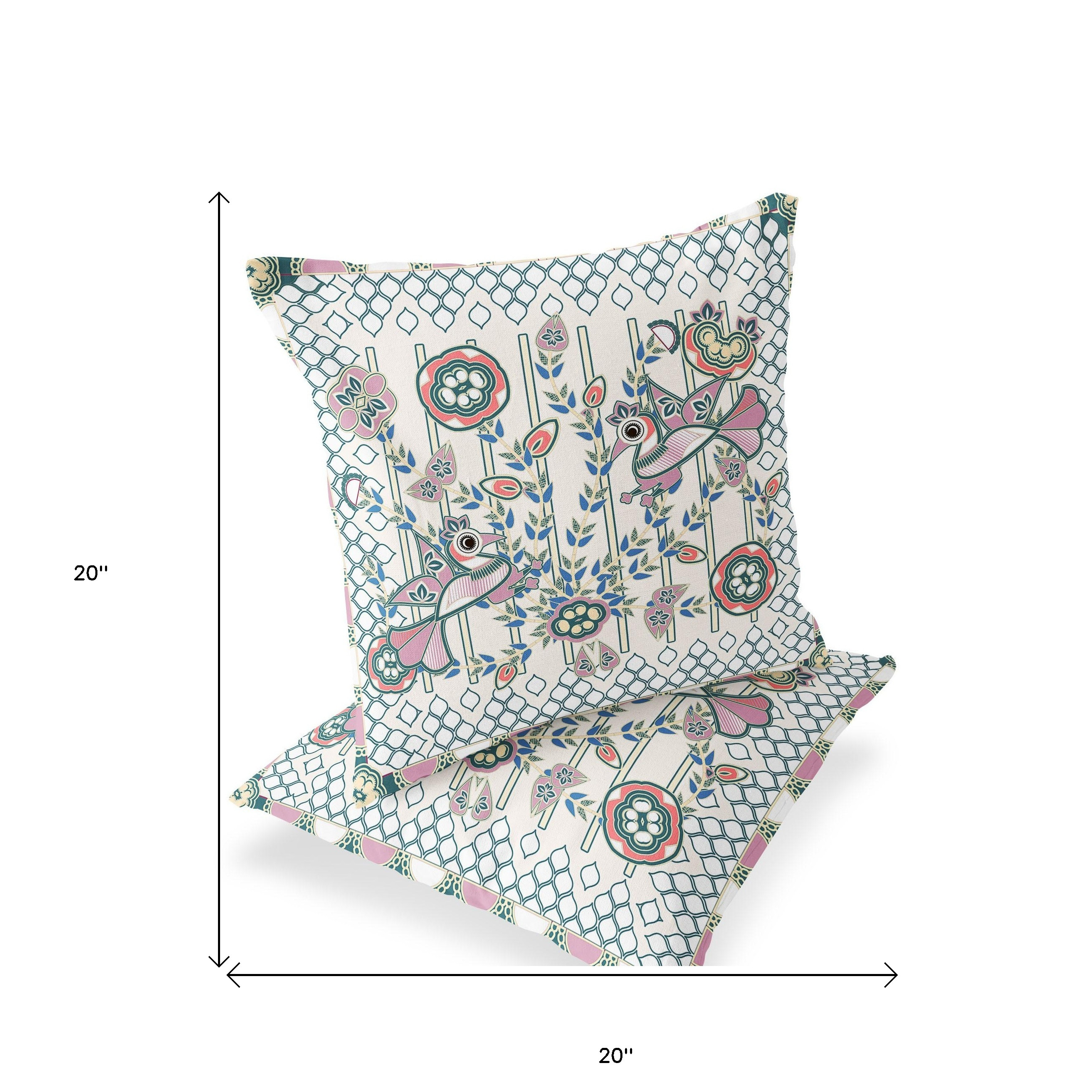 Set of Two Off White Peacock Indoor Outdoor Throw Pillow