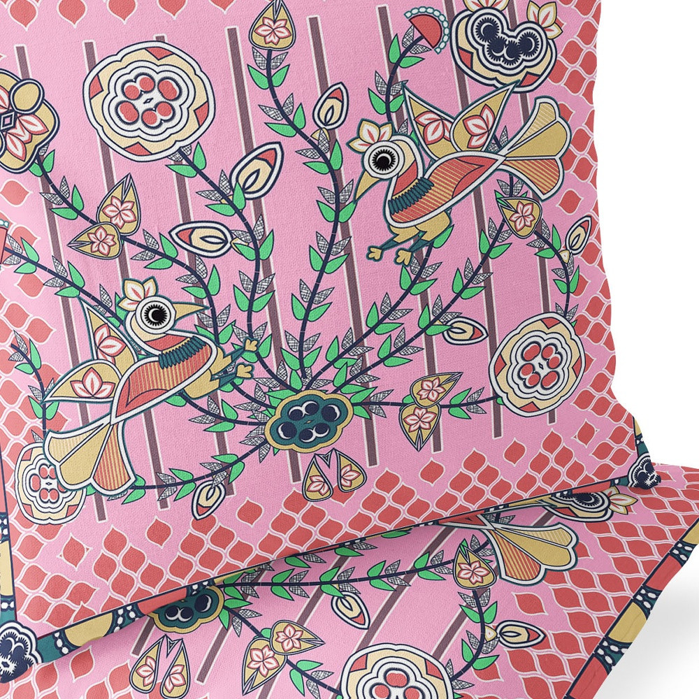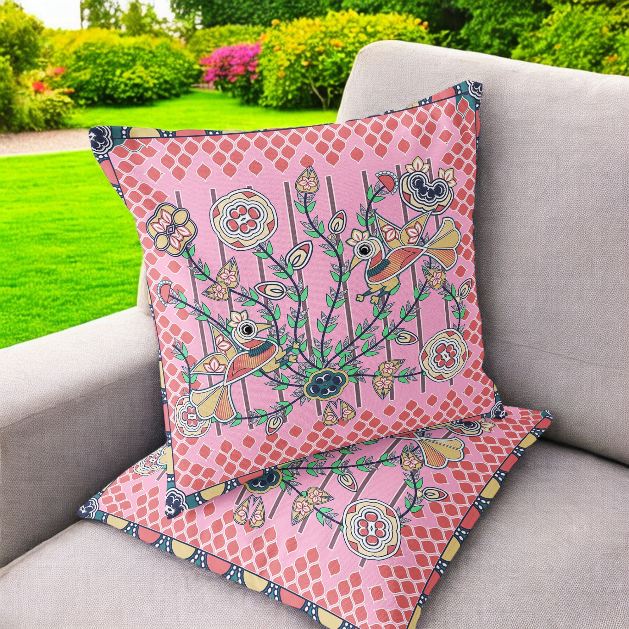 Set of Two Pink Peacock Indoor Outdoor Throw Pillow