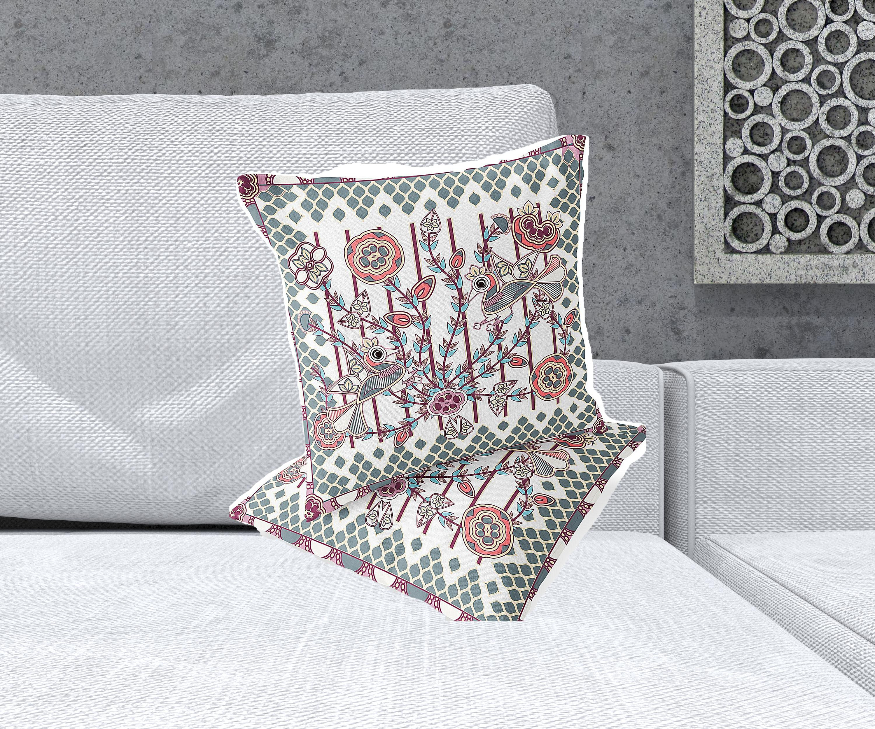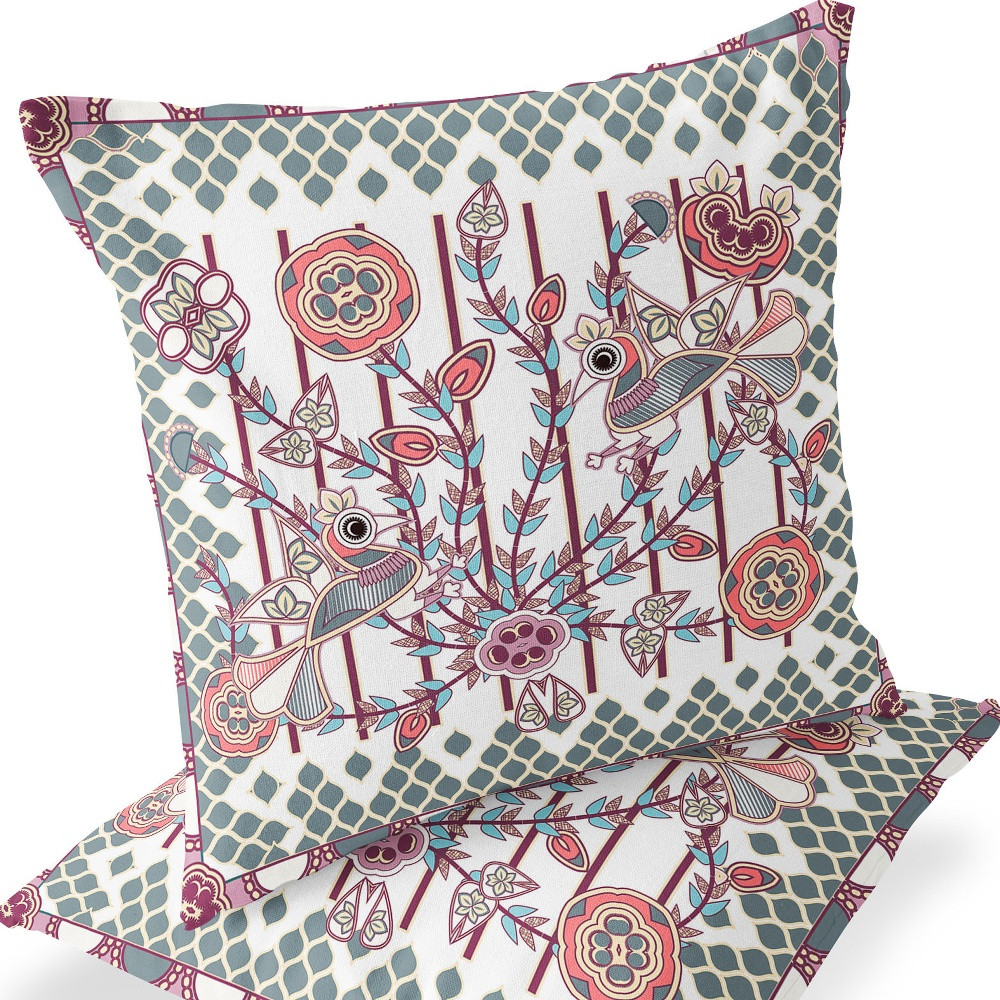 Pond Peacock Indoor/Outdoor Set of 2 Pillows in White Magenta