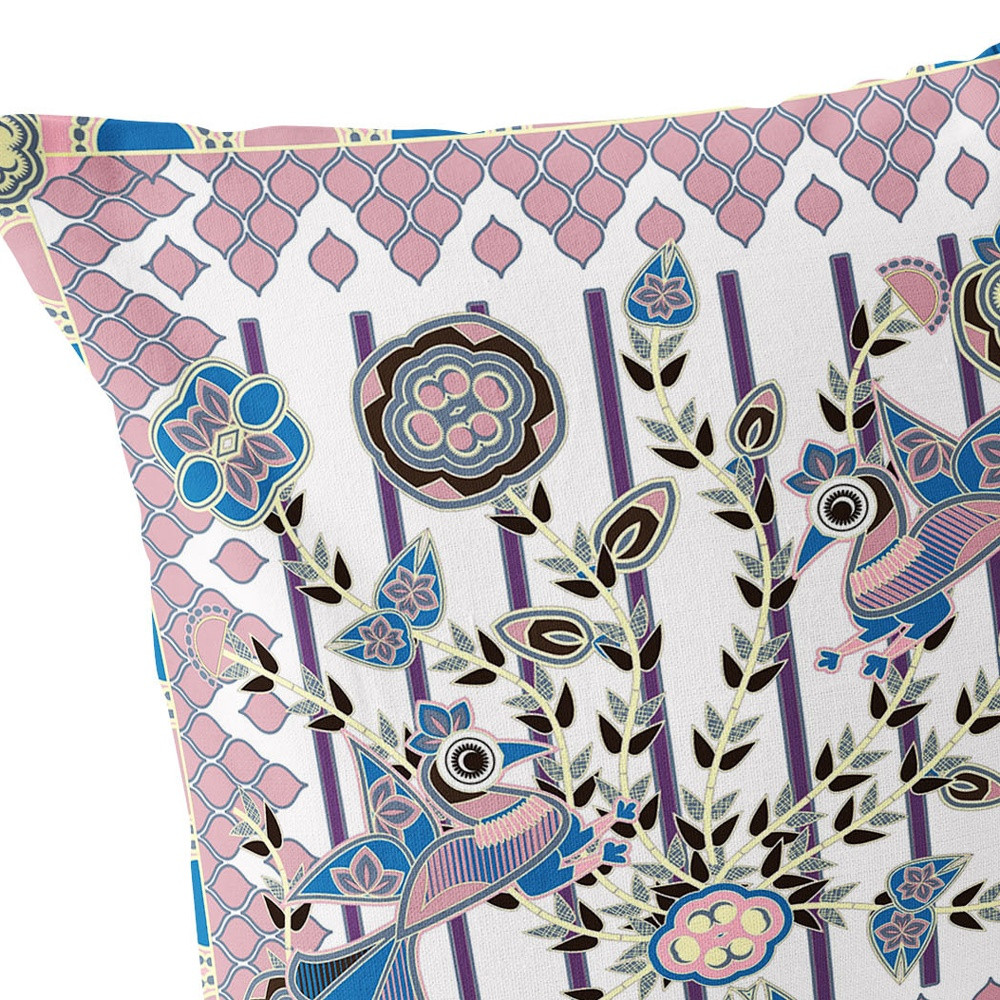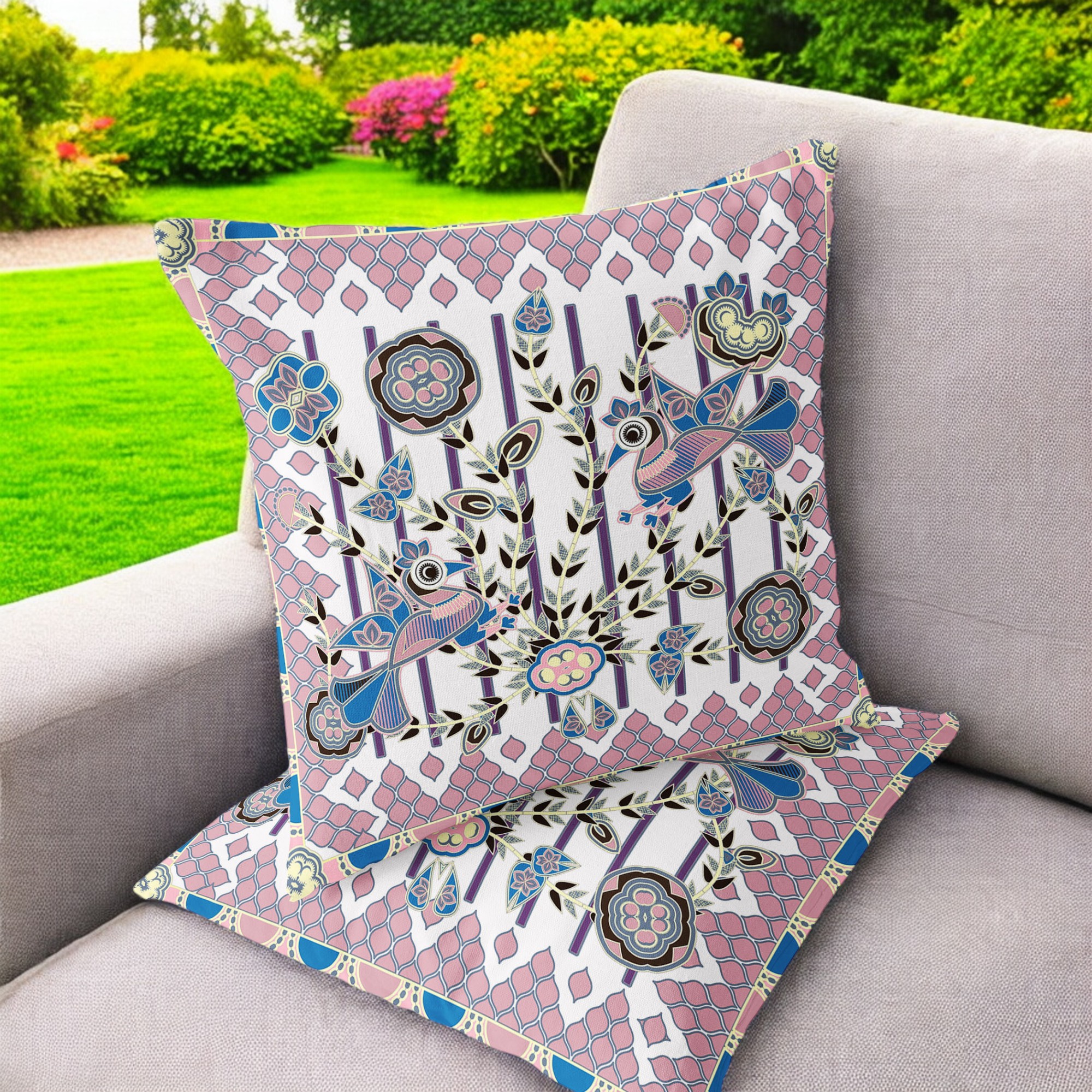 Pond Peacock Indoor/Outdoor Set of 2 Pillows in White Muted Pink Black