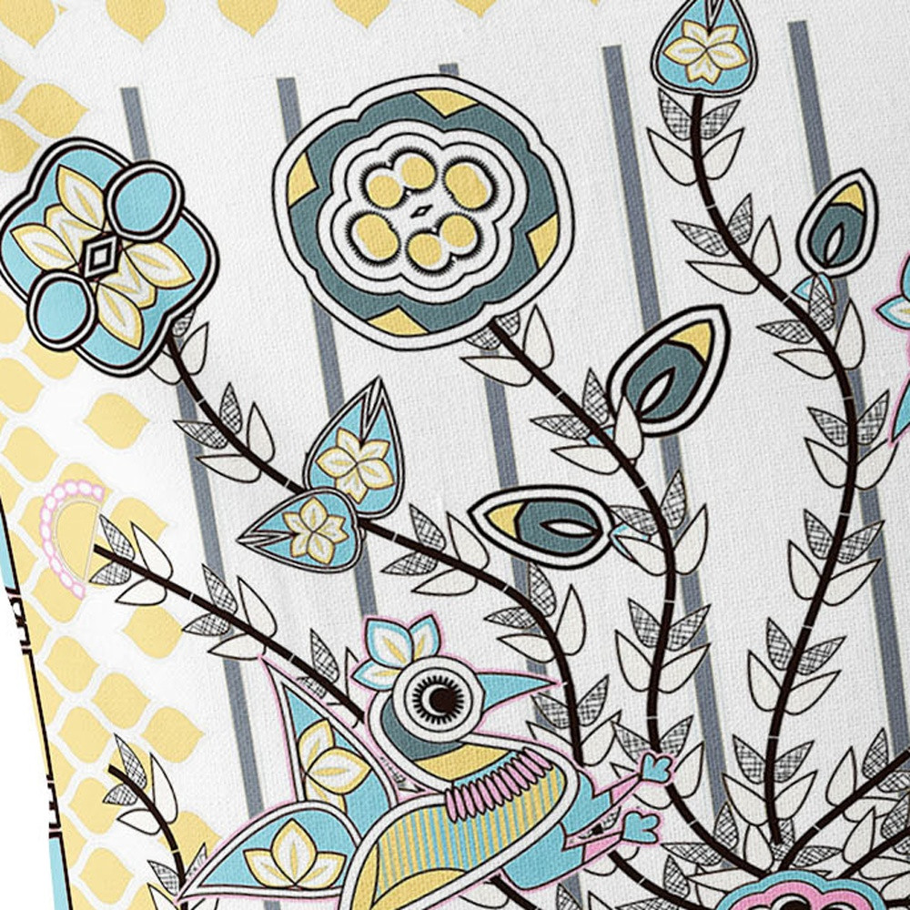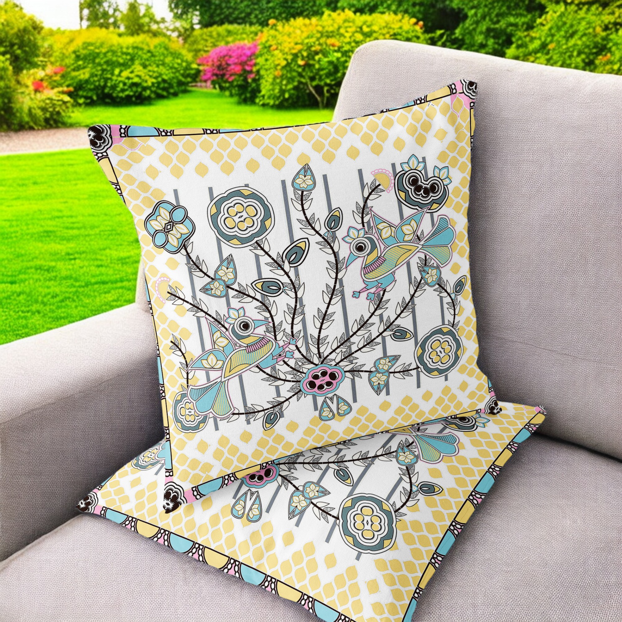 Pond Peacock Indoor/Outdoor Set of 2 Pillows in White Yellow Gray