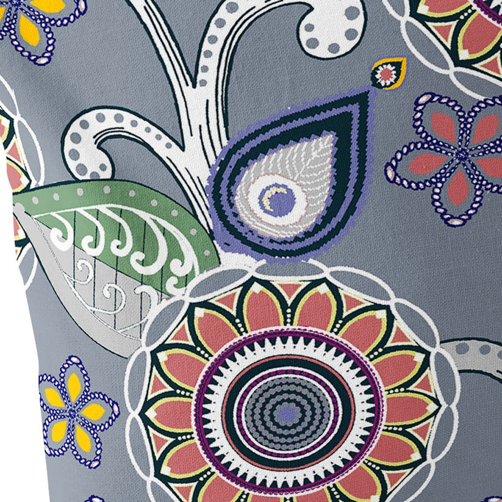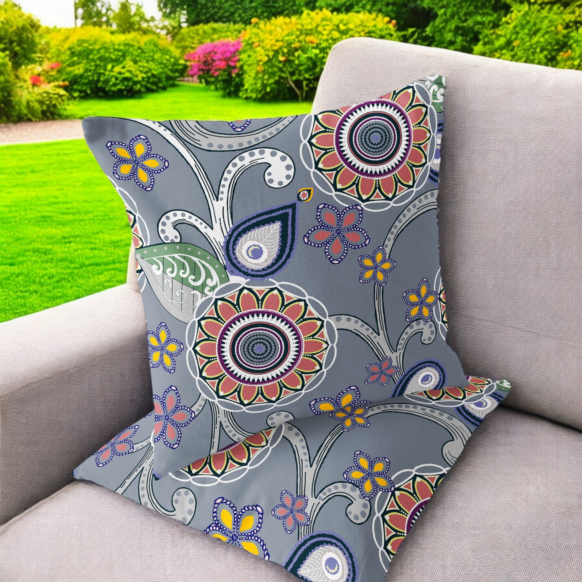 Flower Circles Indoor/Outdoor Set of 2 Pillows in Red Orange Blue Green on Gray