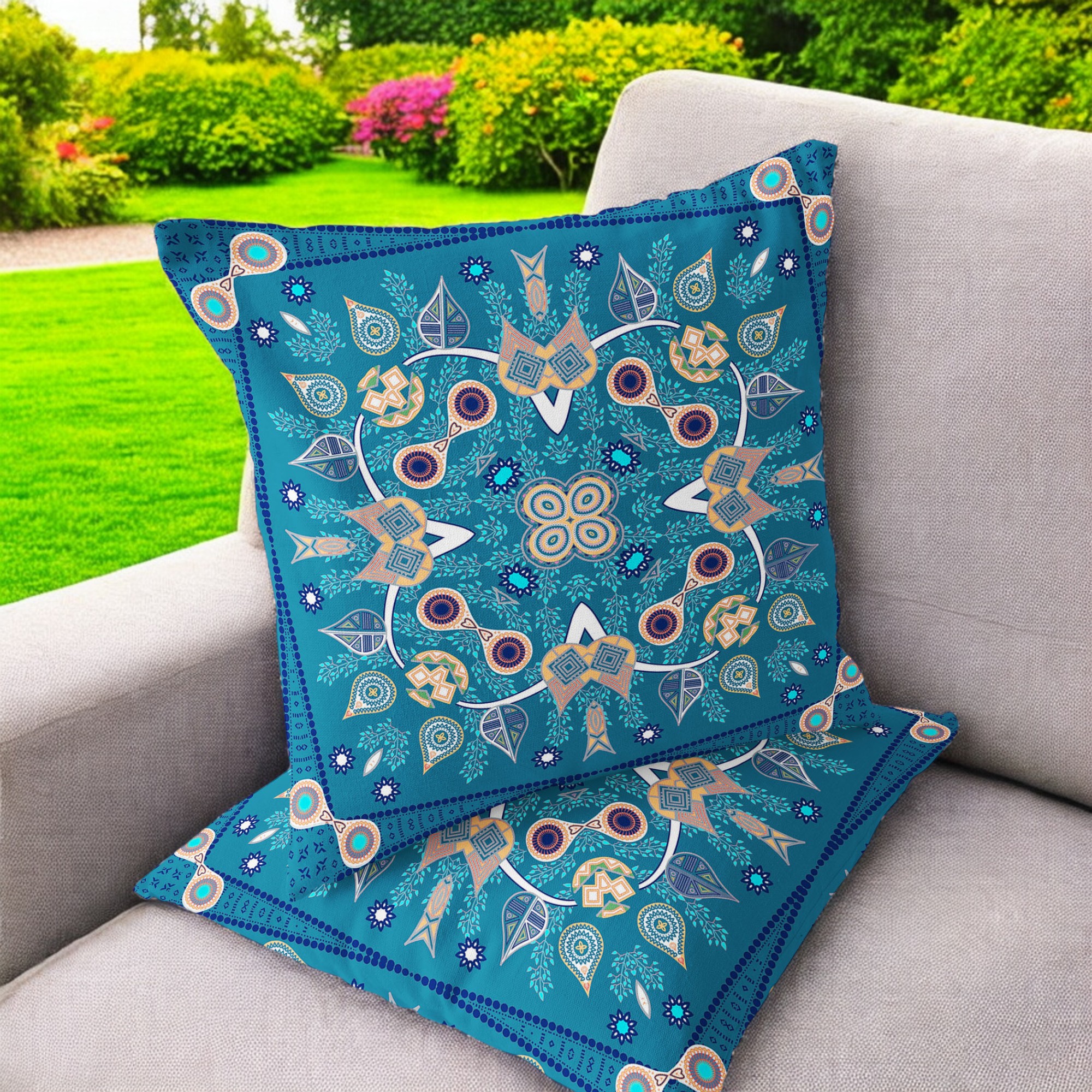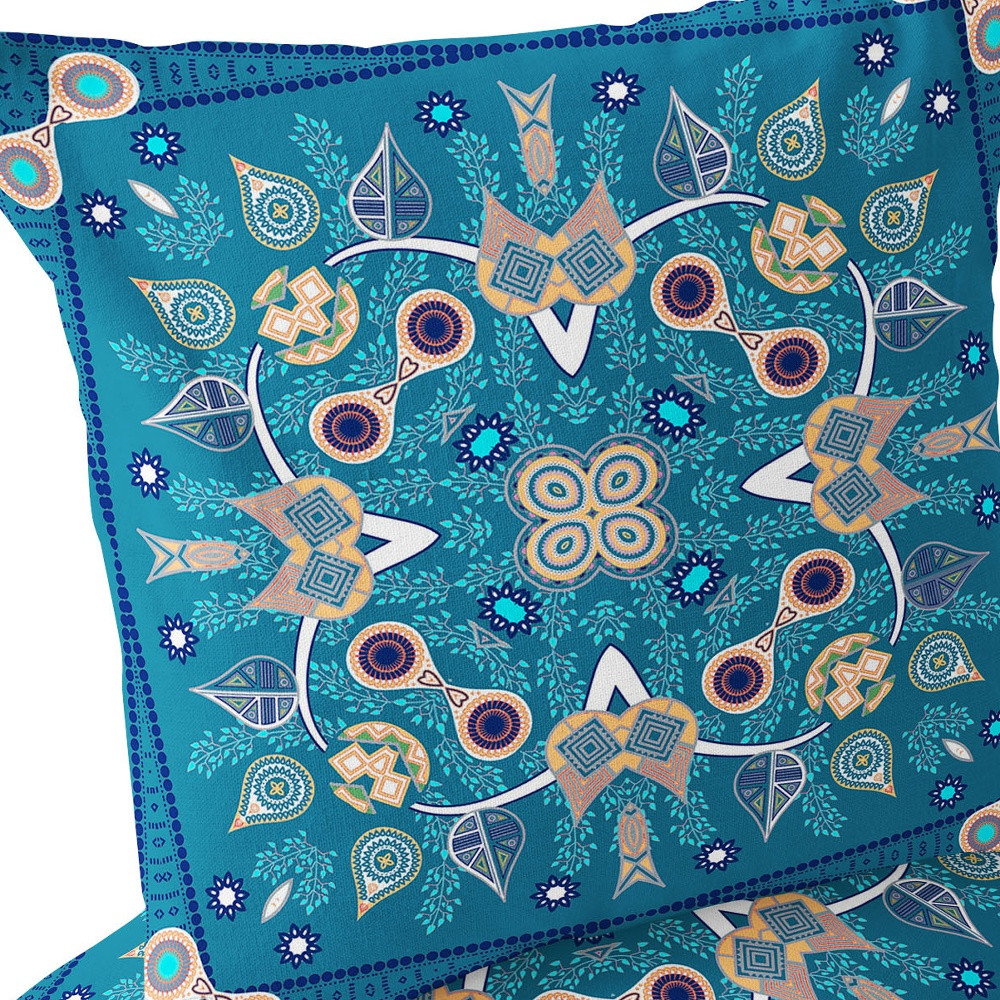 Paisley Leaf Geo Indoor/Outdoor Set of 2 Pillows in Blue Light Blue Beige