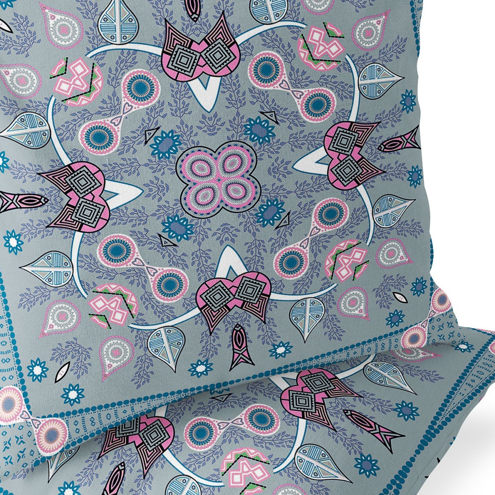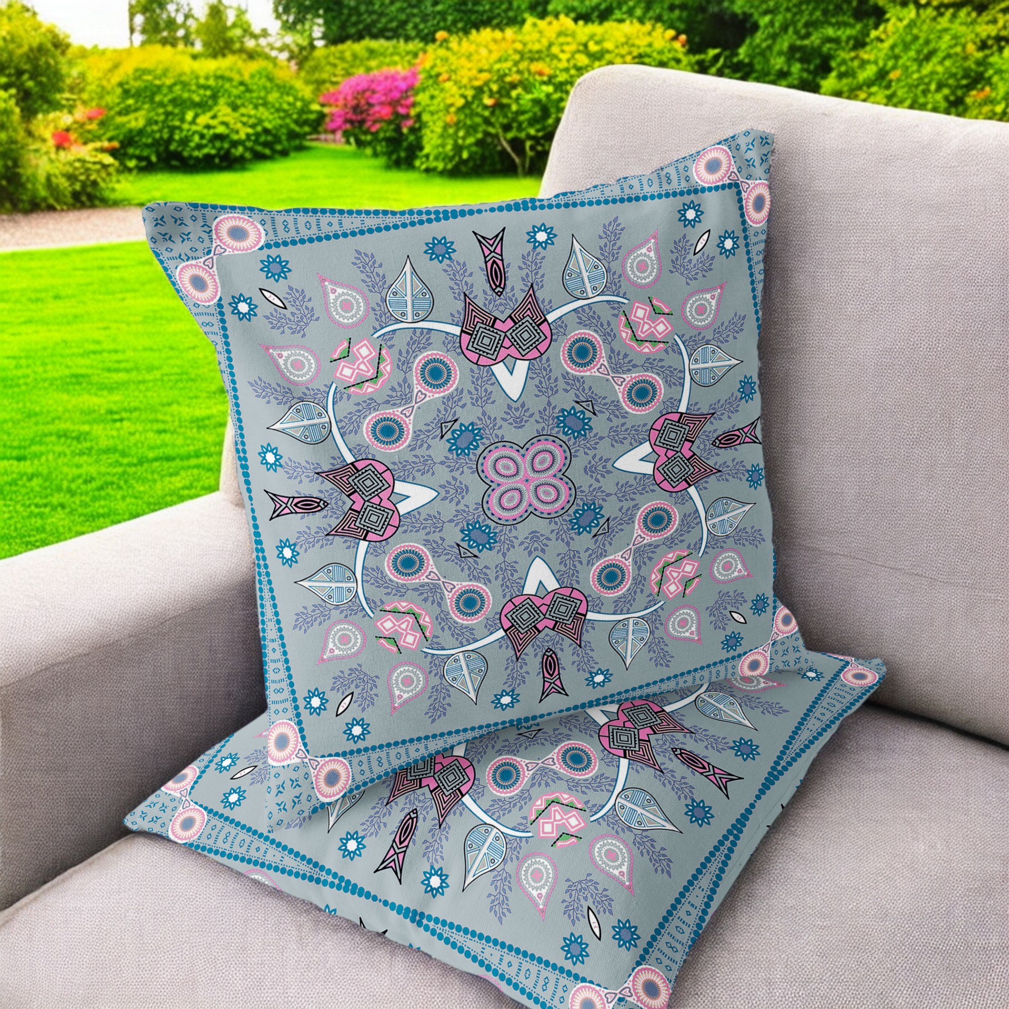 Paisley Leaf Geo Indoor/Outdoor Set of 2 Pillows in Gray Pink