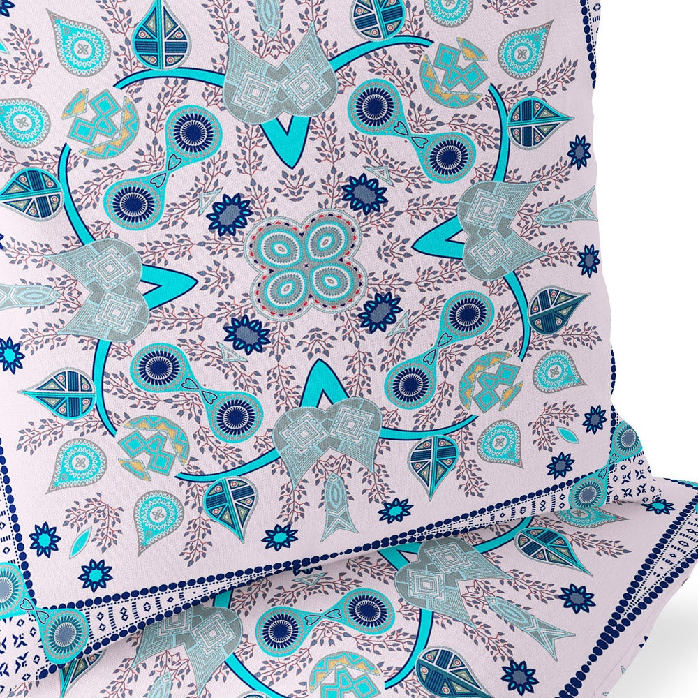 Paisley Leaf Geo Indoor/Outdoor Set of 2 Pillows in Light Pink Light Blue Navy Blue