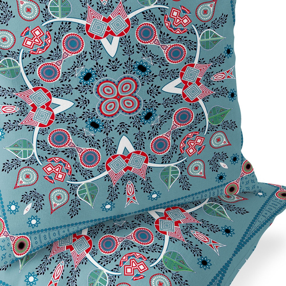 Paisley Leaf Geo Indoor/Outdoor Set of 2 Pillows in Muted Blue Red
