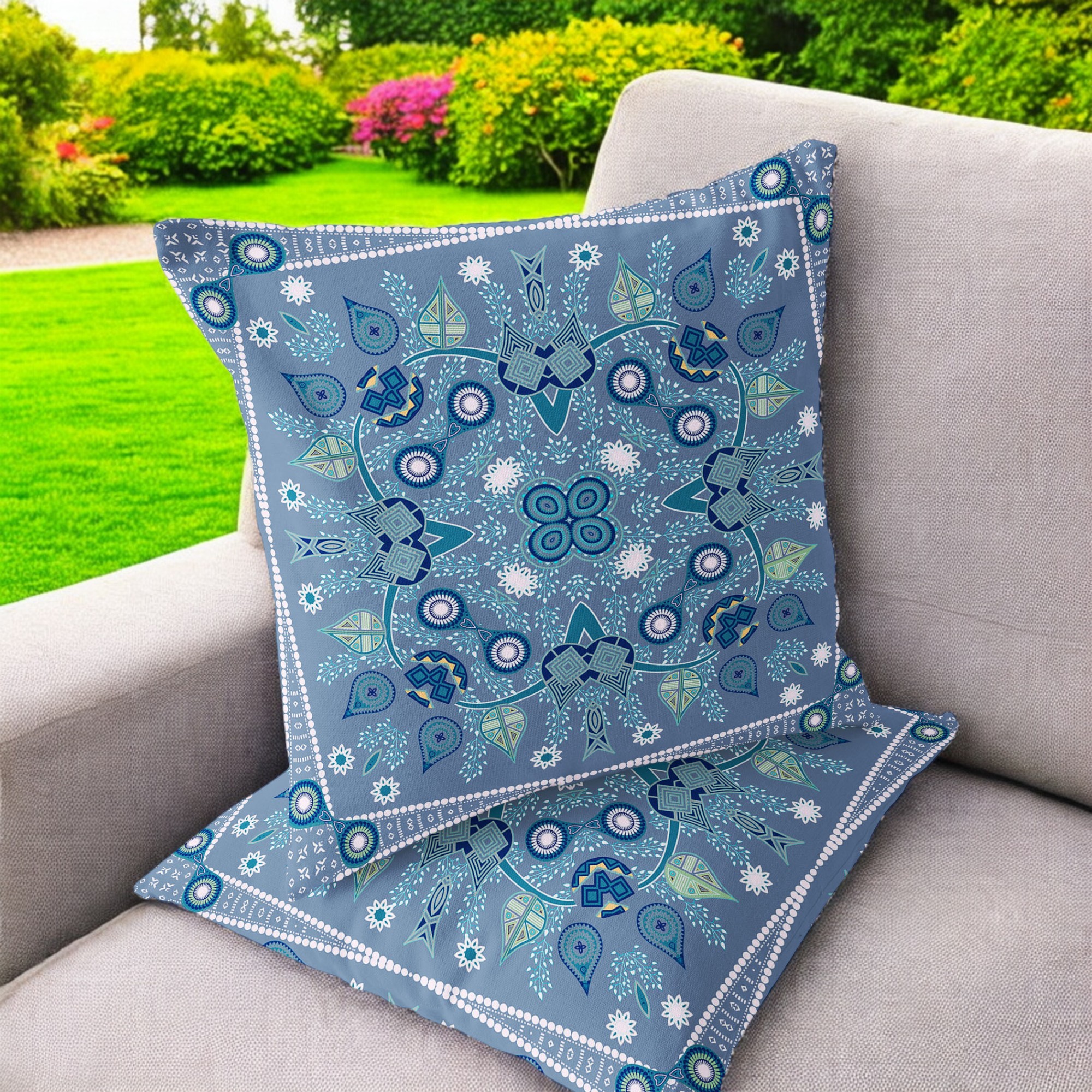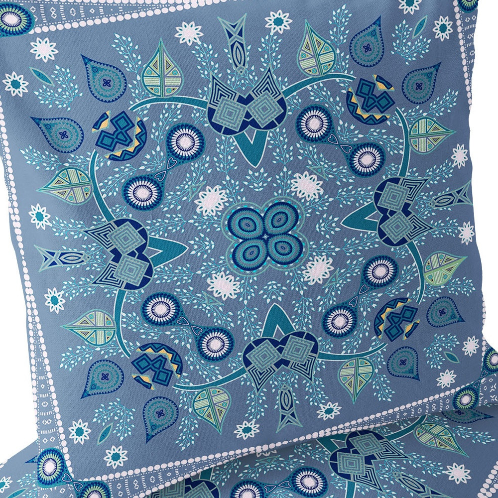 Paisley Leaf Geo Indoor/Outdoor Set of 2 Pillows in Muted Blue White