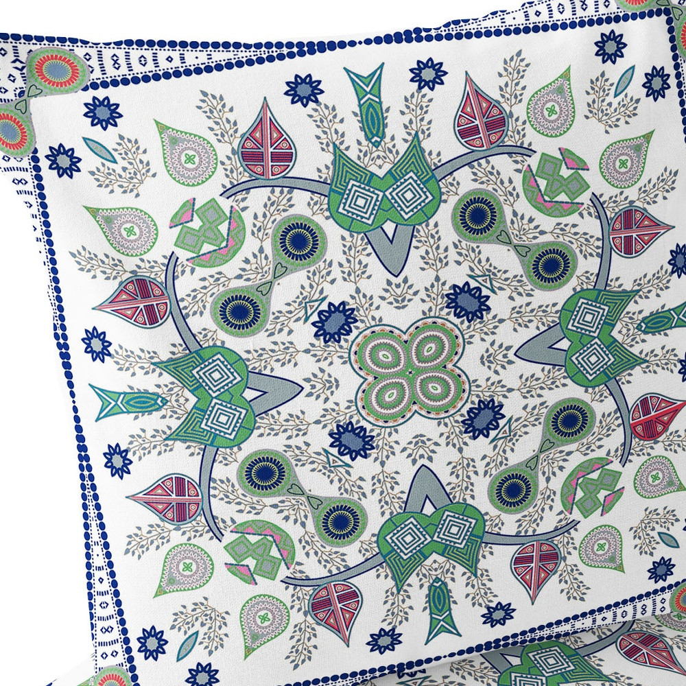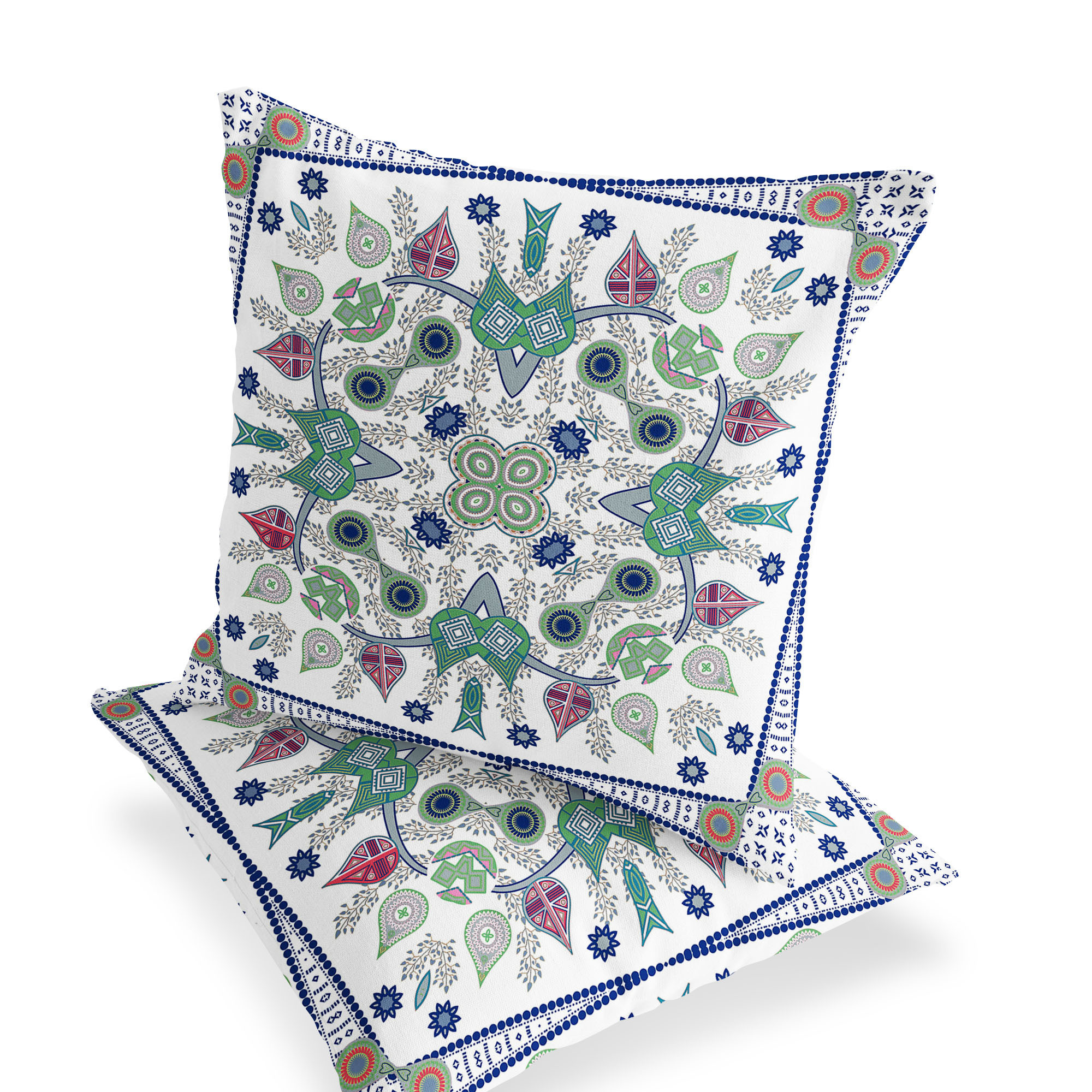 Paisley Leaf Geo Indoor/Outdoor Set of 2 Pillows in Off-White Green