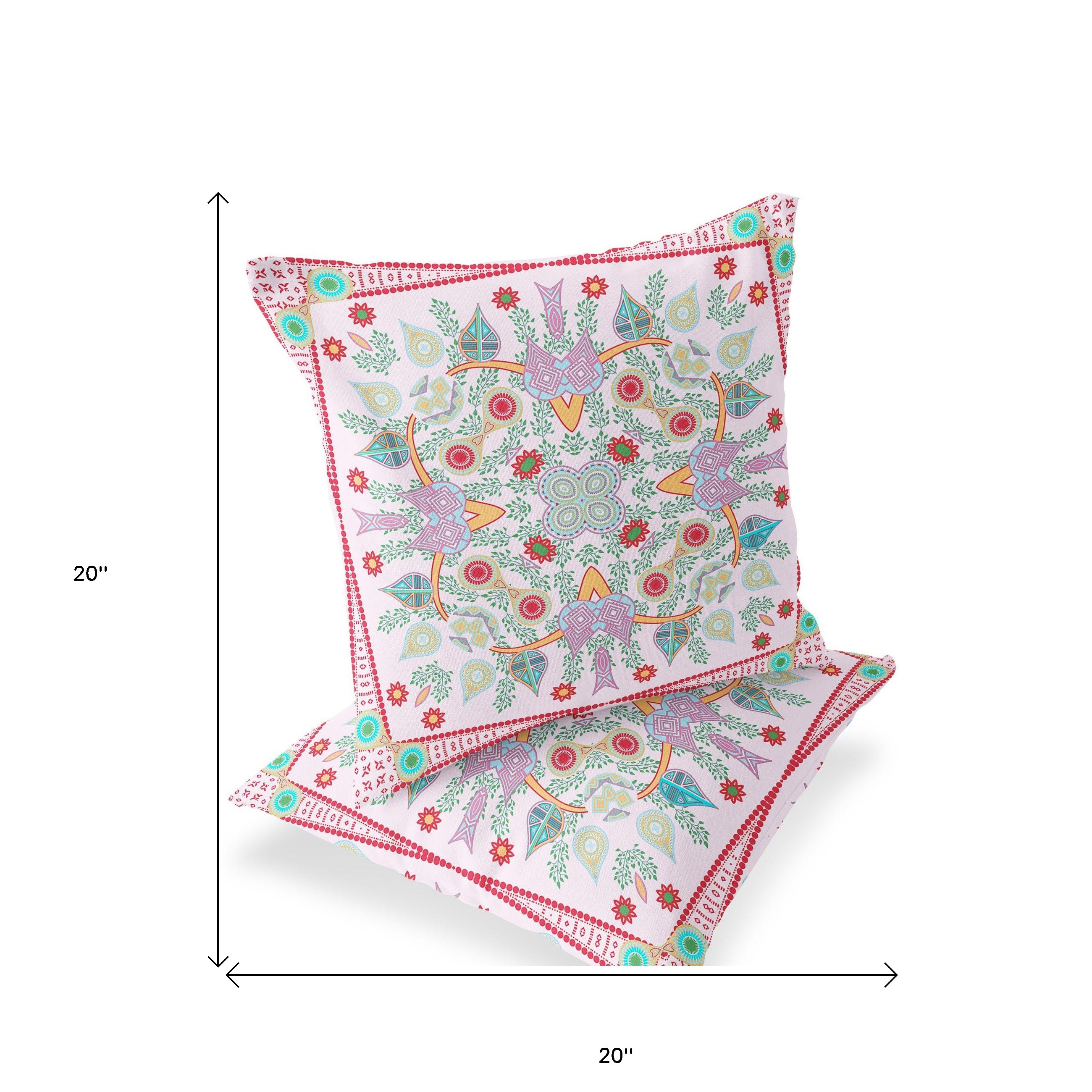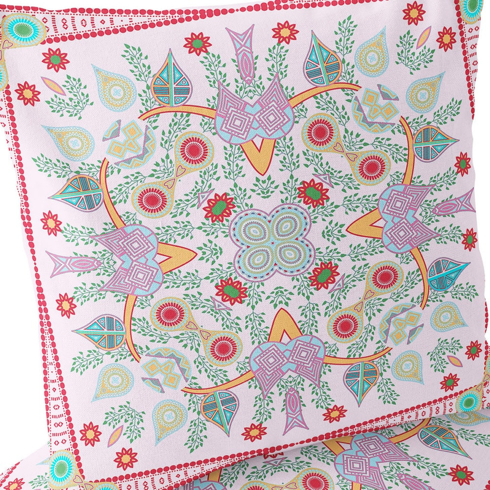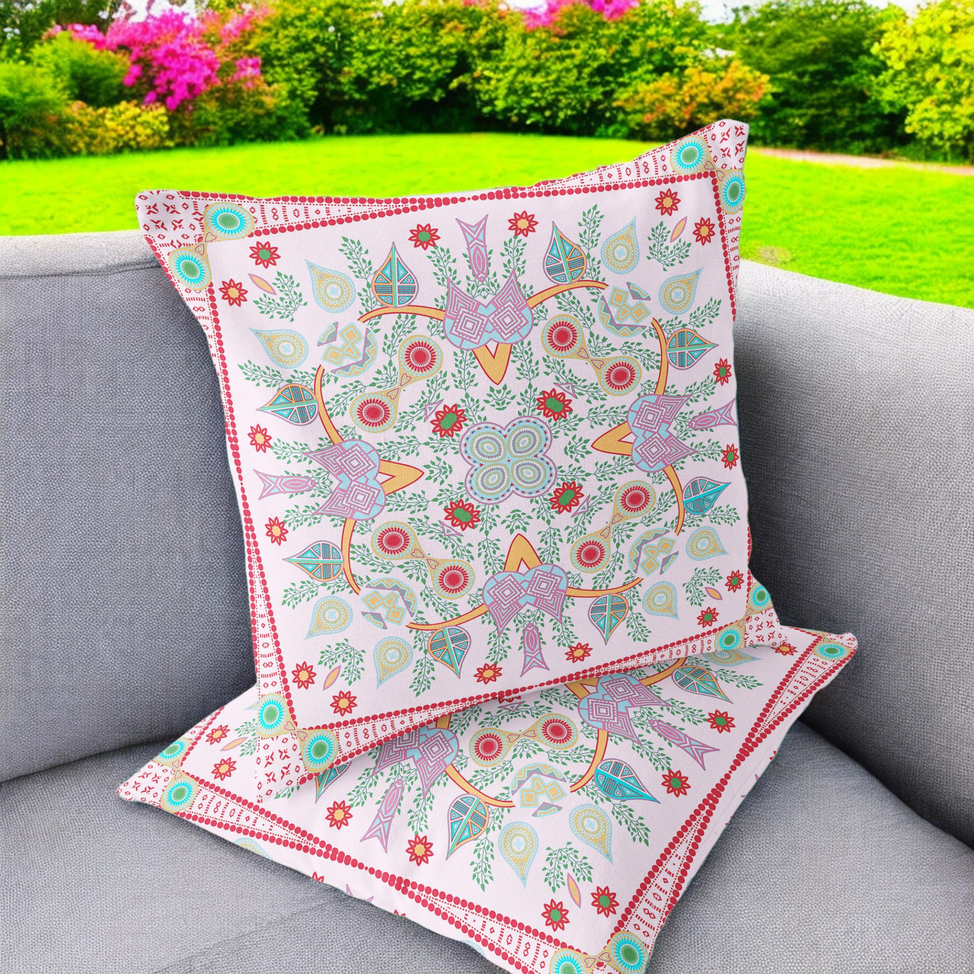 Paisley Leaf Geo Indoor/Outdoor Set of 2 Pillows in White Pink Red