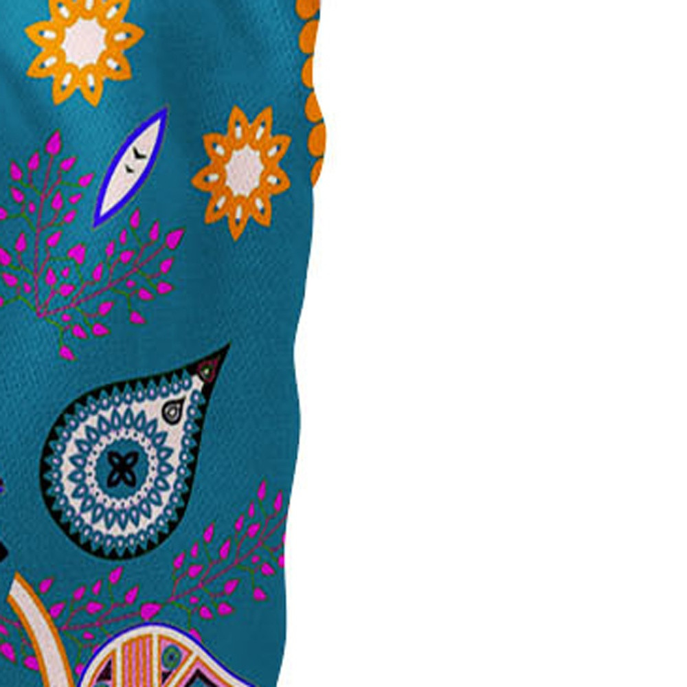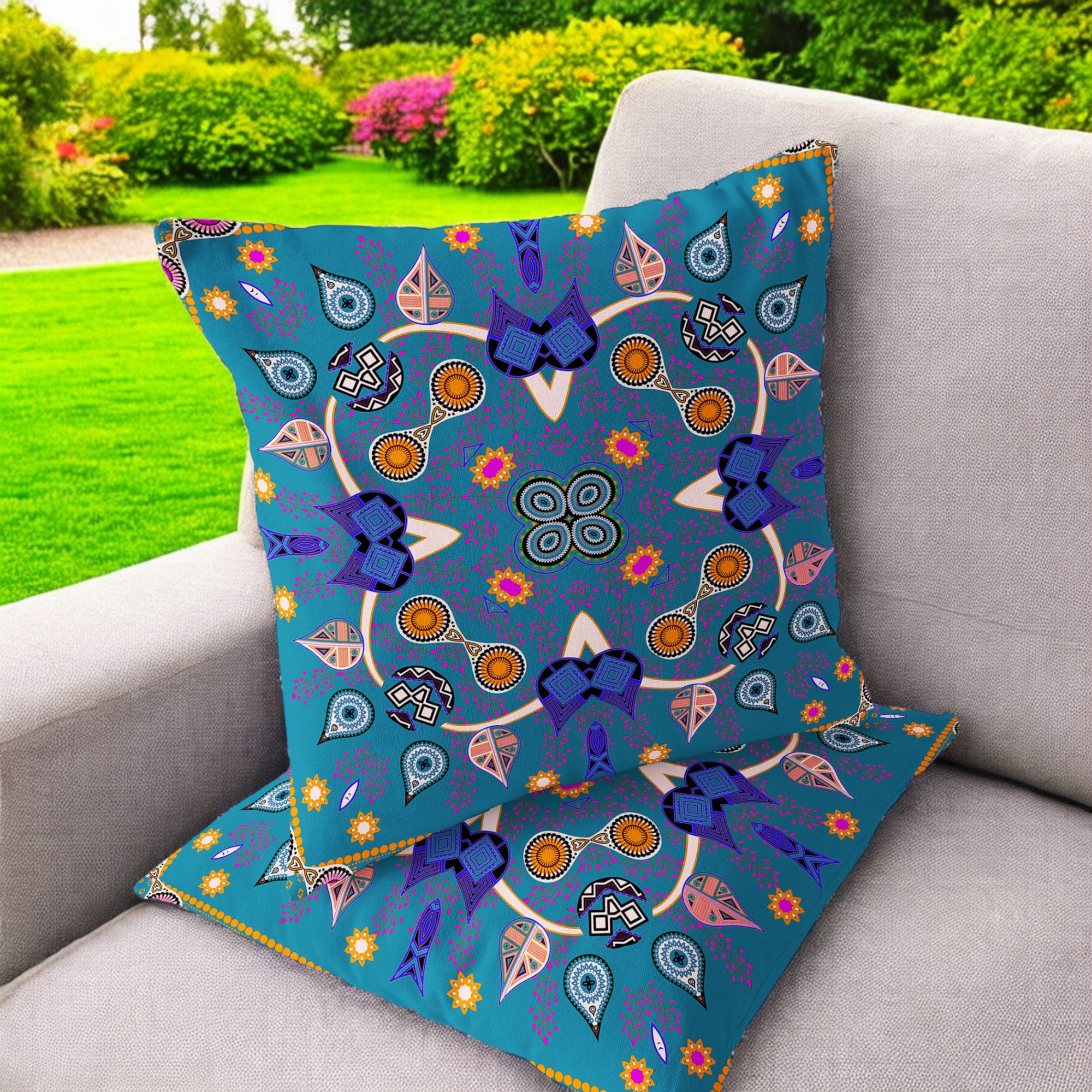 Paisley Pattern Square Indoor/Outdoor Set of 2 Pillows in Hot Muted Blue Gold