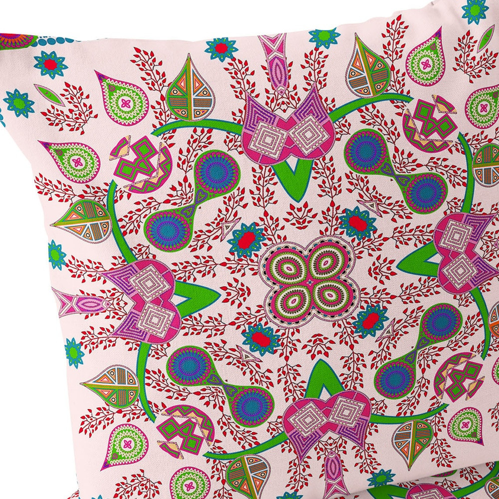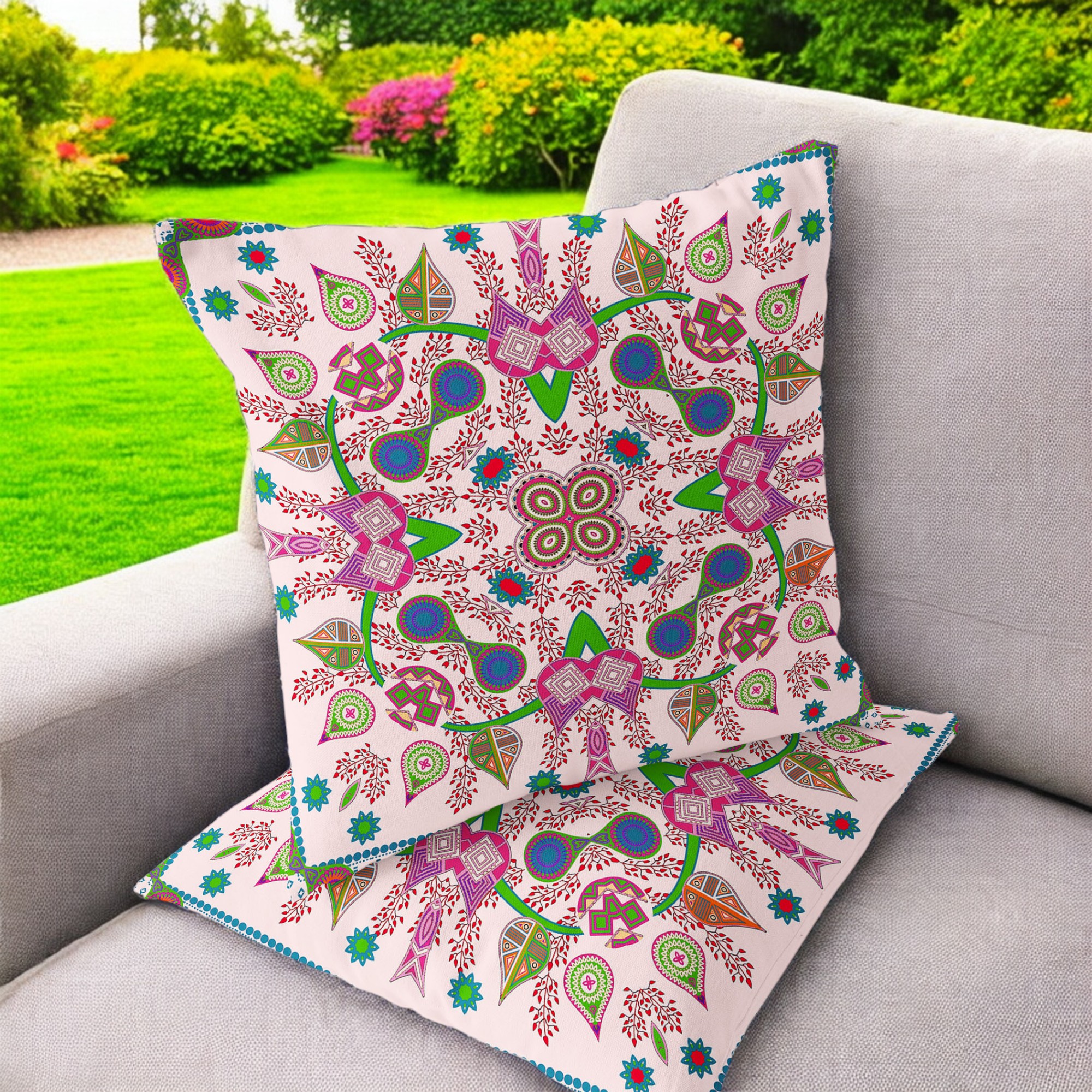 Paisley Pattern Square Indoor/Outdoor Set of 2 Pillows in Light Pink Purple Green