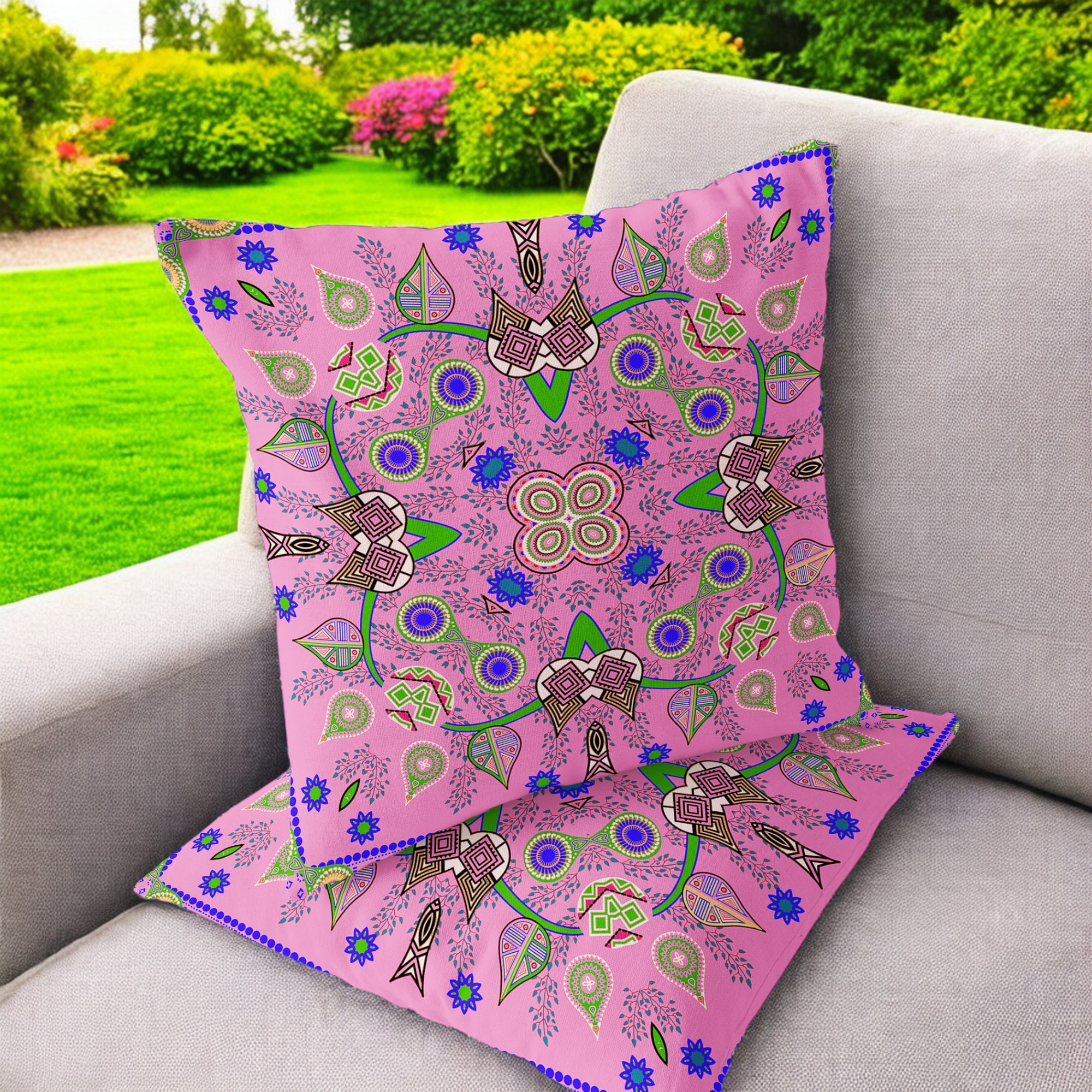 Paisley Pattern Square Indoor/Outdoor Set of 2 Pillows in Pink Blue Green