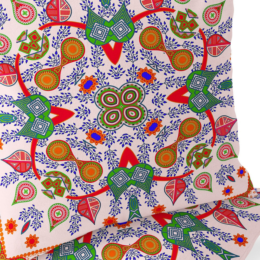 Paisley Pattern Square Indoor/Outdoor Set of 2 Pillows in White Red Orange