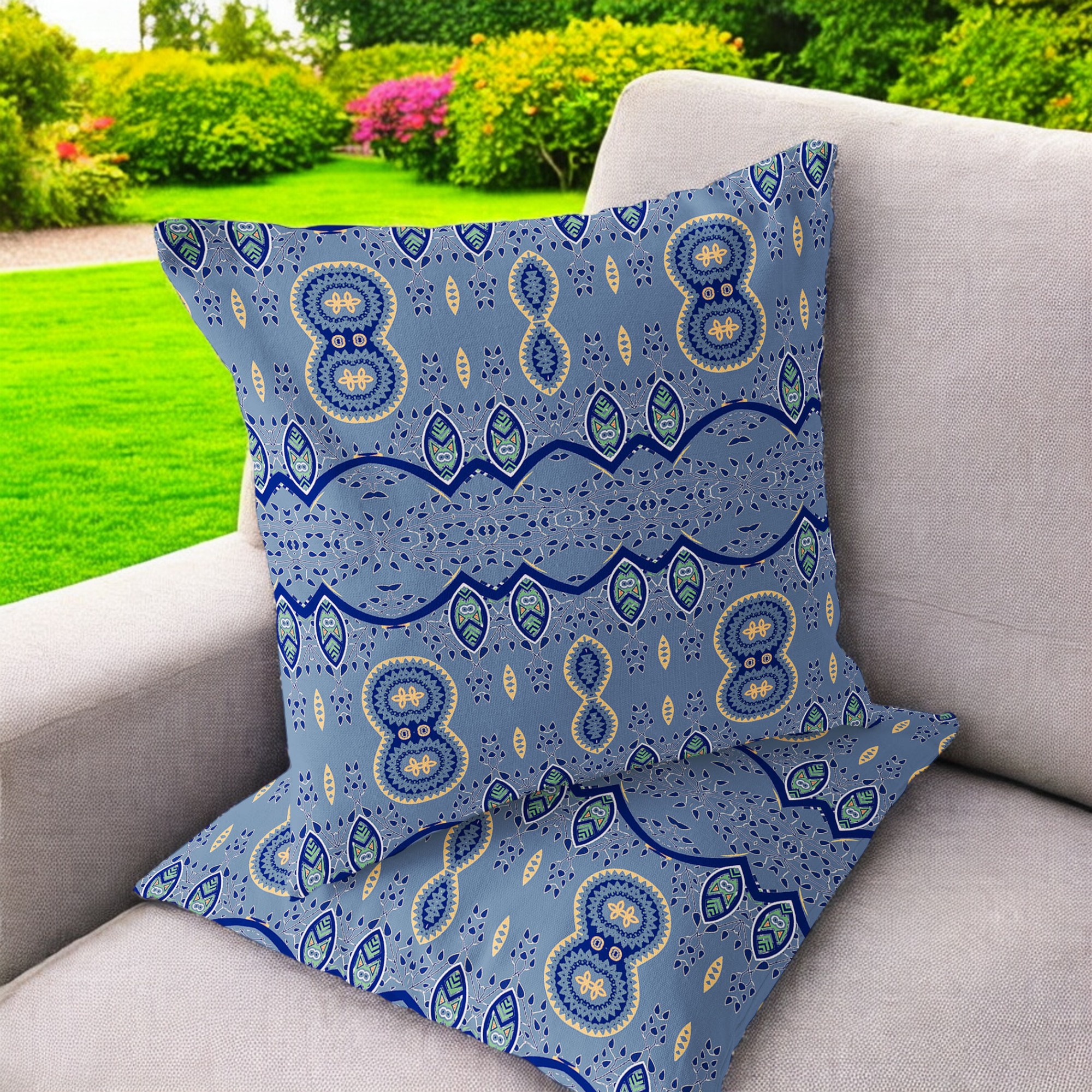 Sephalina Paisley Leaves Indoor/Outdoor Set of 2 Pillows in Muted Blue Navy