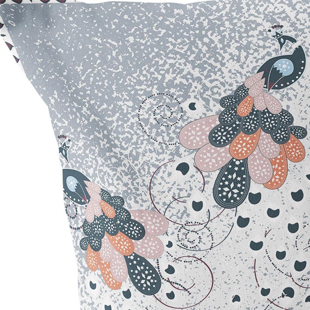 Set of Two Gray Peacock Indoor Outdoor Throw Pillow