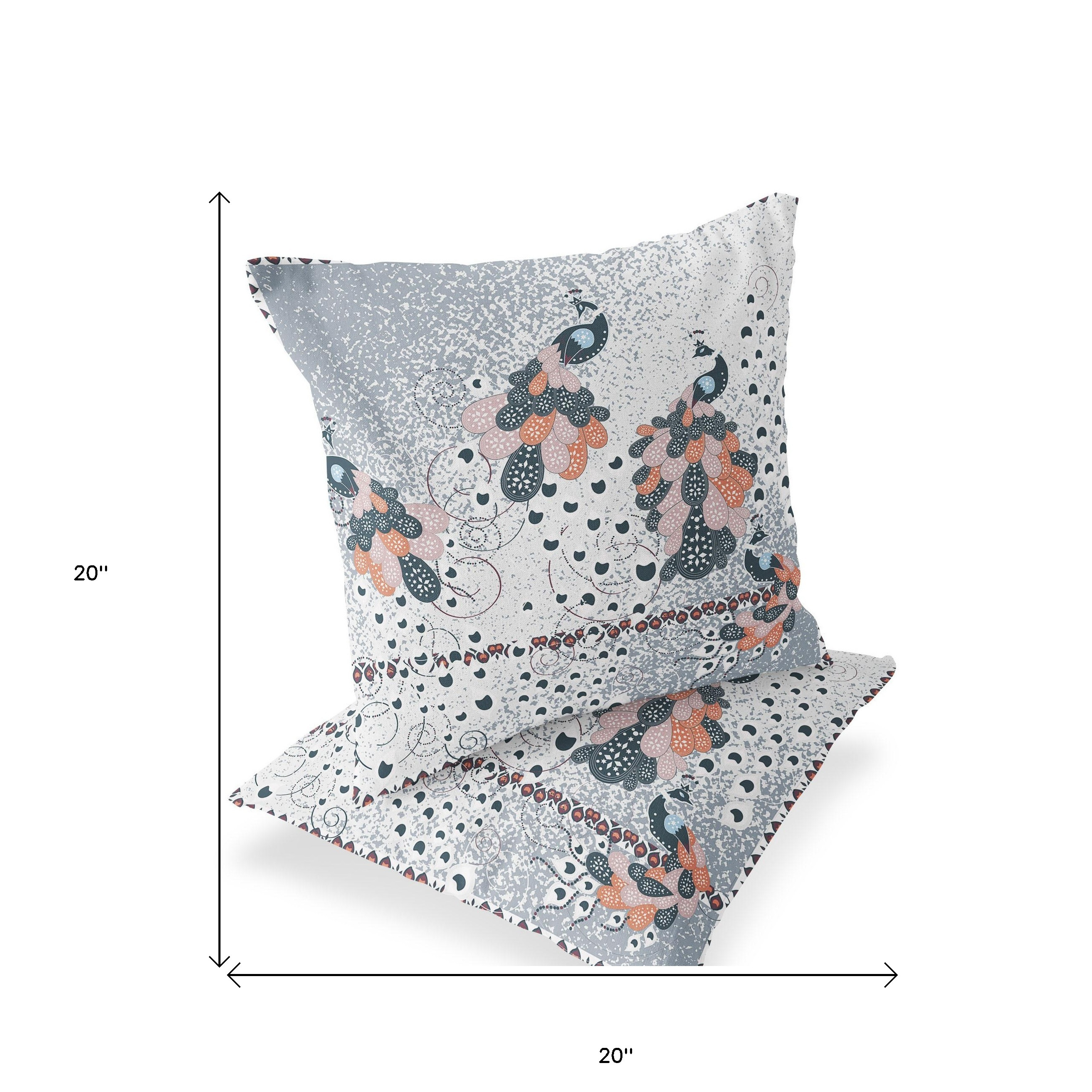 Painted Peacock Indoor/Outdoor Set of 2 Pillows in Gray on White