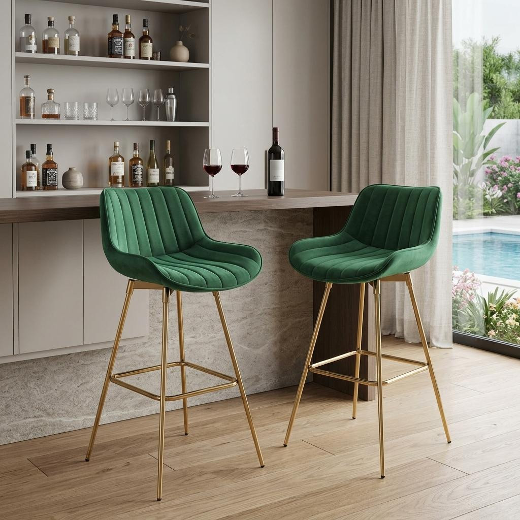 height swivel bar chairs, swivel bar chairs, bar height swivel bar chairs, set 29" green gold velvet, velvet metal low bar height |
