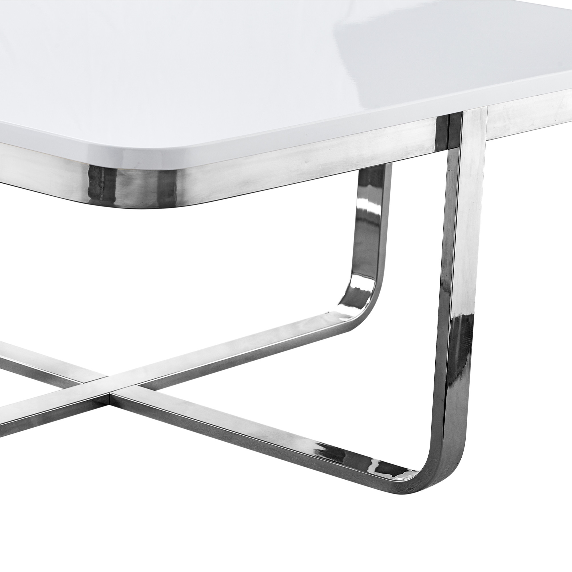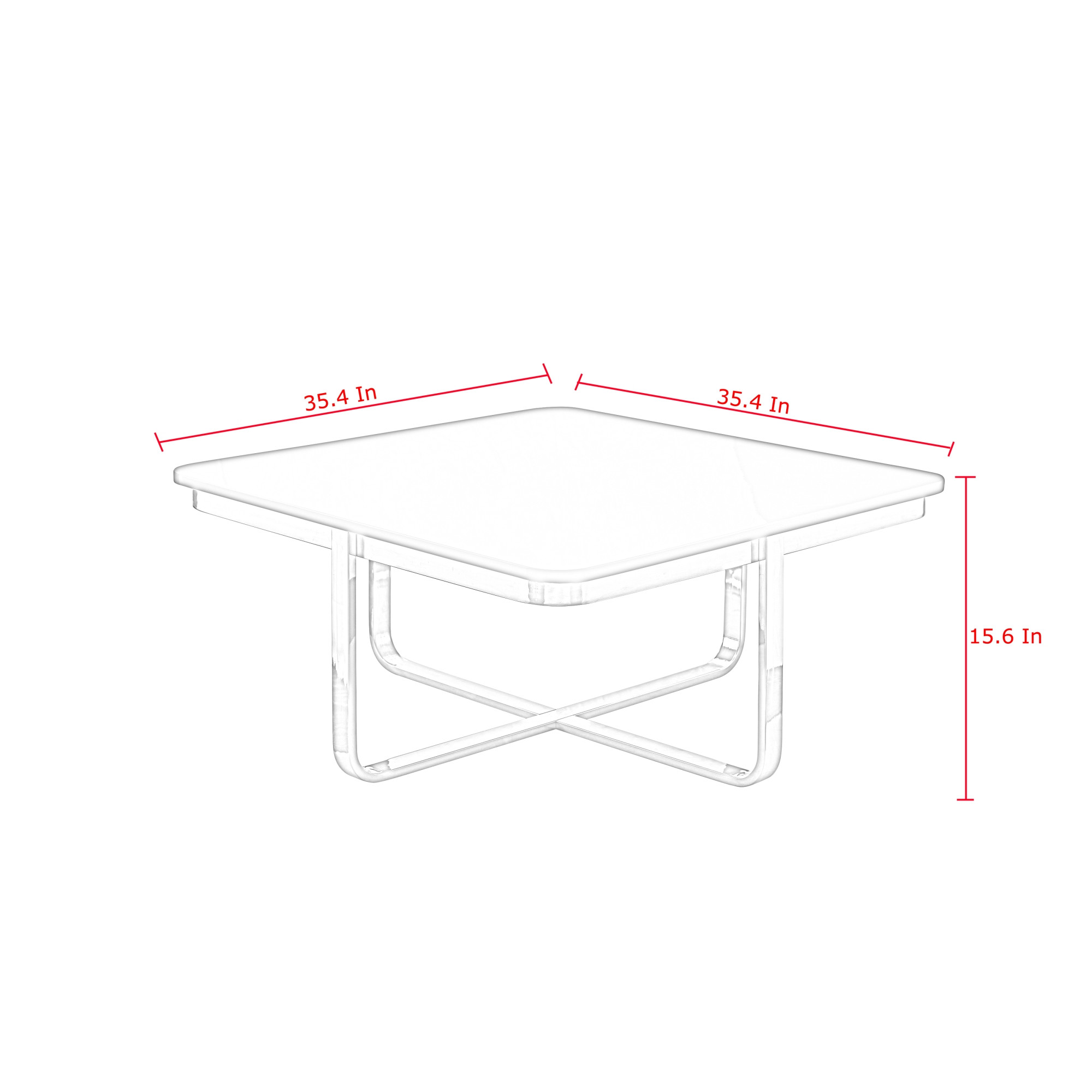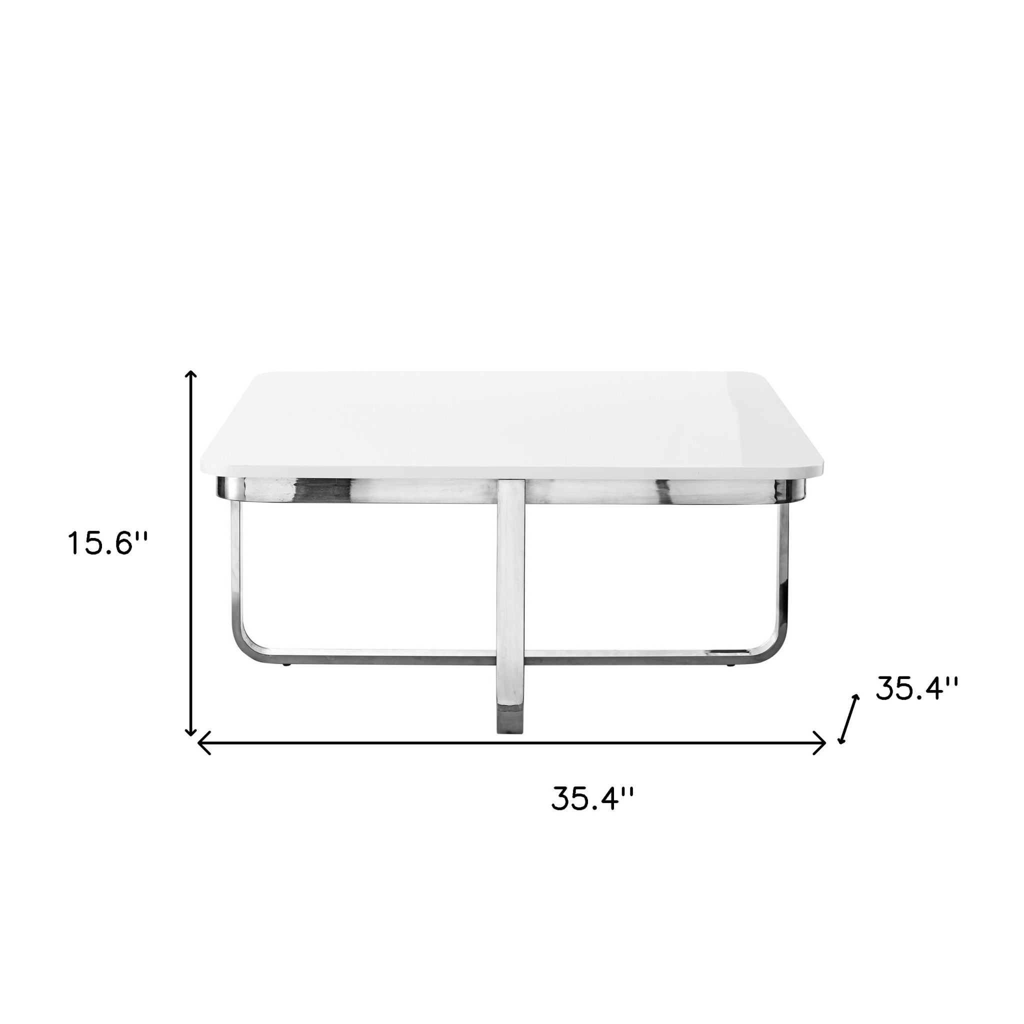 Stylish and super sturdy, the 35-inch white and silver metallic stainless steel square coffee table is an amazingly good looking coffee table that will compliment your living room. Quality construction from the silver metallic stainless steel base combines with white manufactured wood of the top to give this table a fresh and updated look. This square table features a fresh and stylish shape to give your room a visually pleasing accent. If you're looking for something that can fit into a living area, bedroom, or office, this coffee table is for you. This coffee table is the sturdy, reliable and stylish answer to your living room needs. 15.6-inch H x 35.4-inch W x 35.4-inch D