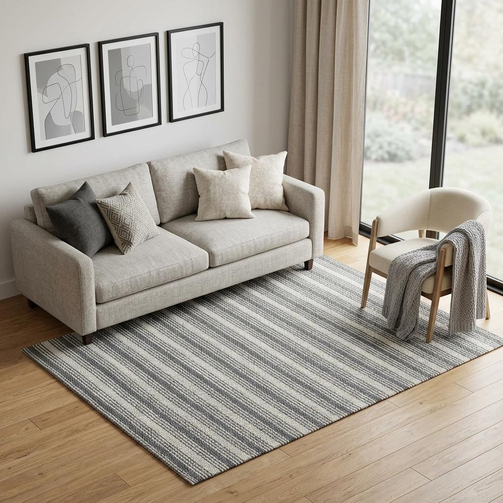 woven non skid area rug, non skid area rug, skid area rug, gray ivory striped hand woven, striped hand woven non skid |