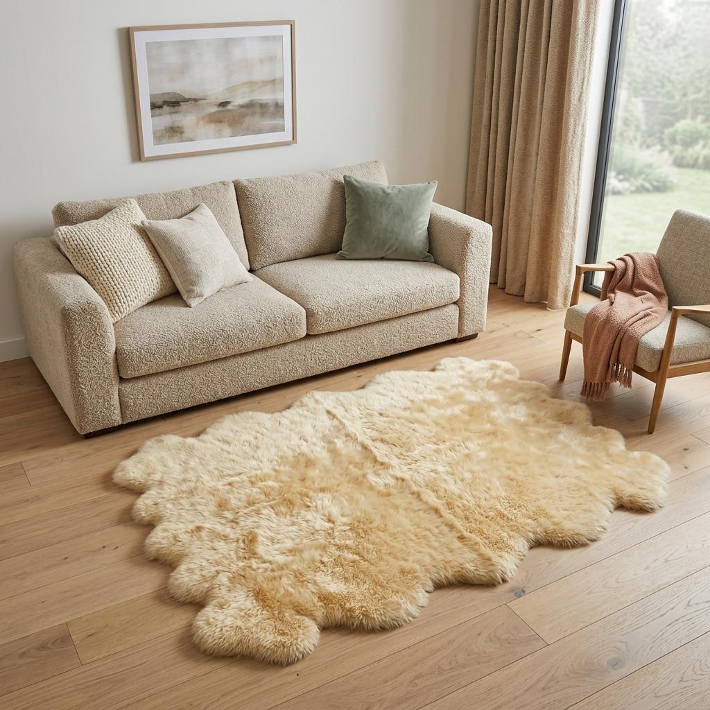 This 6-foot x 7-foot gold sheepskin handmade area rug, is a great way to add warmth to a room. Handcrafted by skilled artisans, this natural sheepskin rug is genuine and unique. No two will be exactly alike. Place this area rug against a hardwood or tile floor and it will enliven your living space with style and sophistication. 72-inch H x 84-inch W x 2-inch D