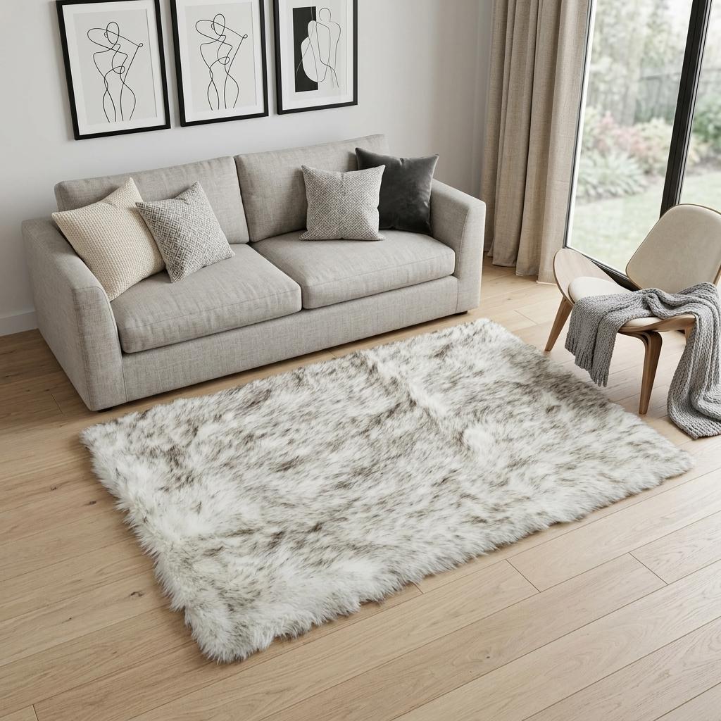 Set an inviting tone in your space with this 5-foot x 8-foot gray faux sheepskin printed area rug. Area rugs help to give warmth and sense of home to your space. 60-inch H x 96-inch W x 1.5-inch D