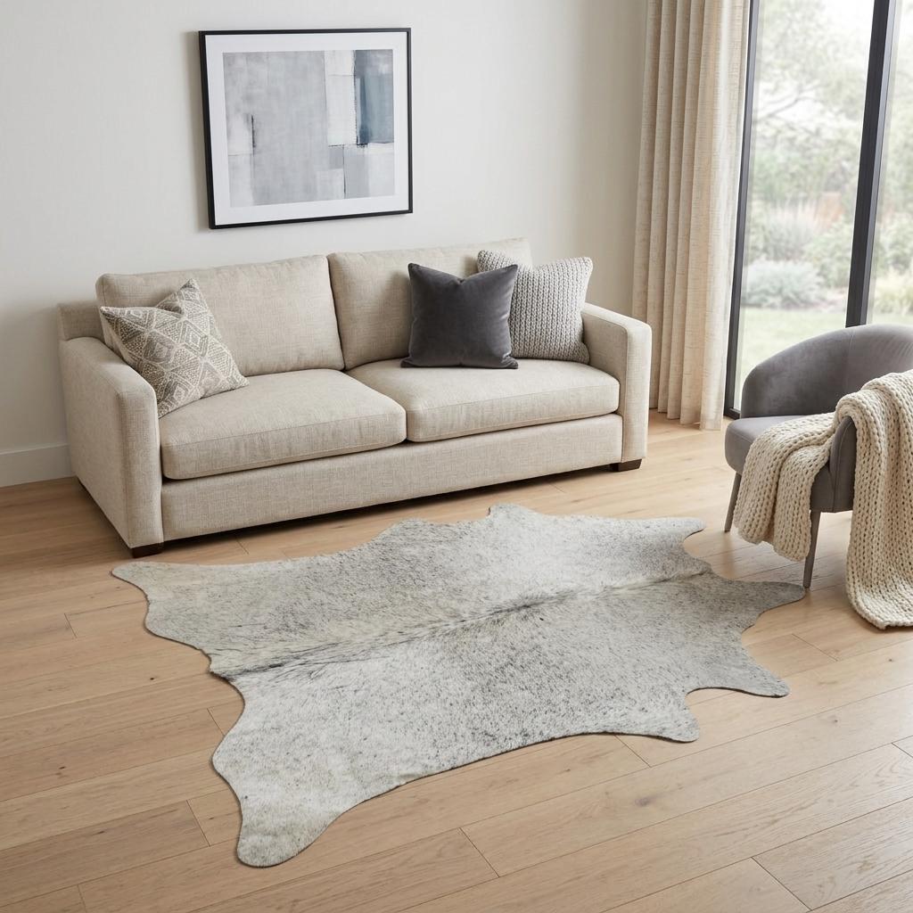 Add great coloration and comfortable texture to your space with this 5-foot x 7-foot light gray cowhide hand knotted area rug. Crafted by skilled artisans, this hand knotted rug is genuine and unique. No two will be exactly alike. Ideal for spaces with kids and pets, this rug is stain resistant to help repel dirt and spilled liquids. This larger sized rug is ideal to create a focal point or statement piece in your room. 60-inch h x 84-inch w x 0.1-inch d