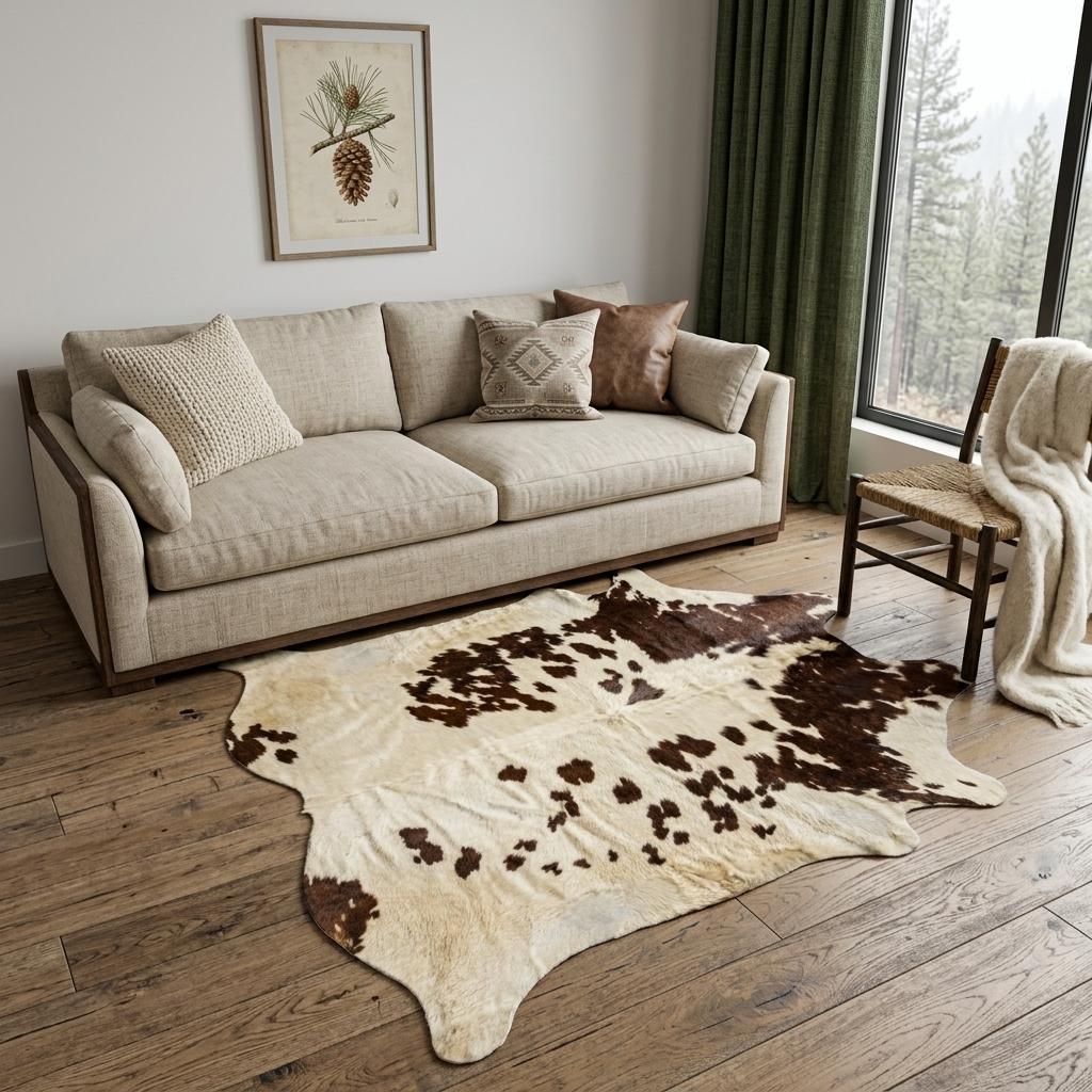 cowhide hand knotted area rug, hand knotted area rug, knotted area rug, cowhide hand knotted area, brown white cowhide hand knotted |