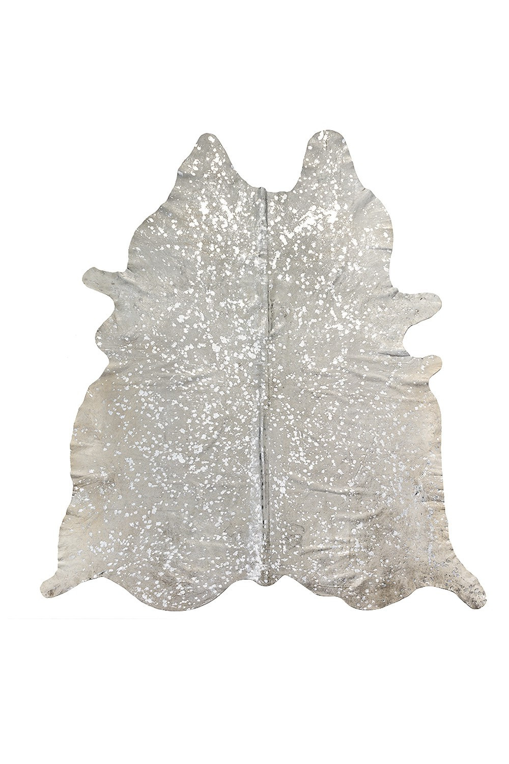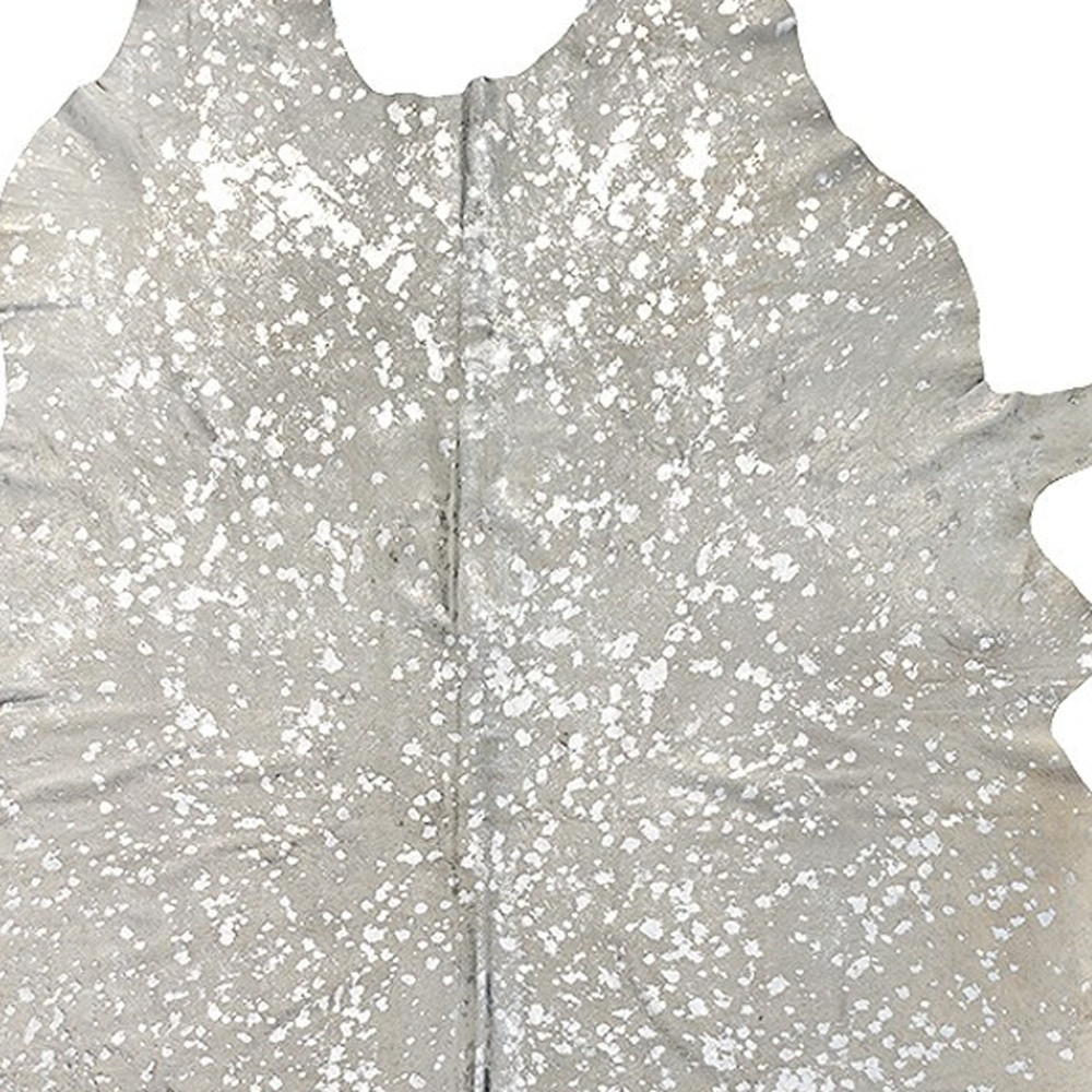 Add some artistry to your room with this 5-foot x 7-foot silver and ivory cowhide hand knotted area rug. Crafted by skilled artisans, this hand knotted rug is genuine and unique. No two will be exactly alike. Ideal for spaces with kids and pets, this rug is stain resistant to help repel dirt and spilled liquids. This larger sized rug is ideal to create a focal point or statement piece in your room. 72-inch h x 84-inch w x 0.1-inch d