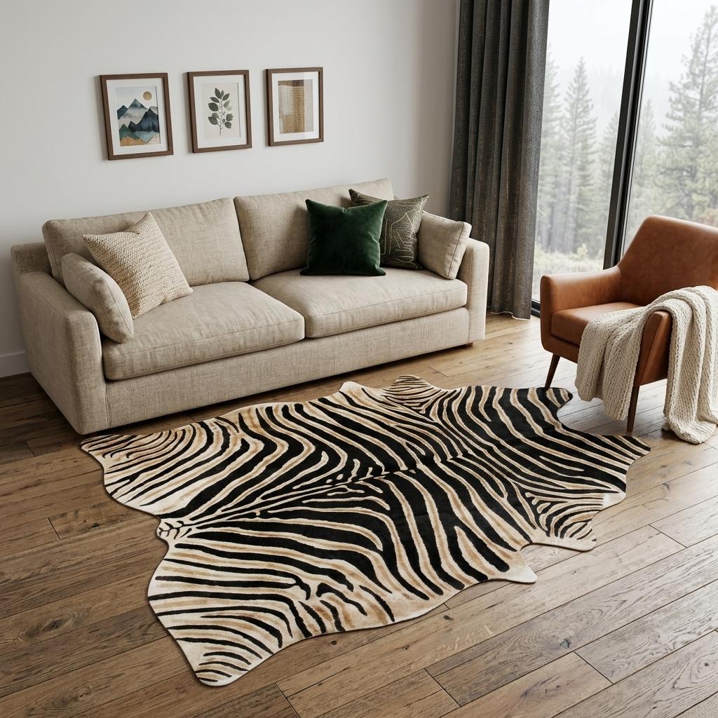 Add great coloration and comfortable texture to your space with this 6-foot x 7-foot brown and black cowhide hand knotted area rug. Ideal for spaces with kids and pets, this rug is stain resistant to help repel stains and spilled liquids. Crafted by skilled artisans, this hand knotted rug is genuine and unique. No two will be exactly alike. Area rugs help to give warmth and sense of home to your space. 72-inch H x 84-inch W x 0.1-inch D