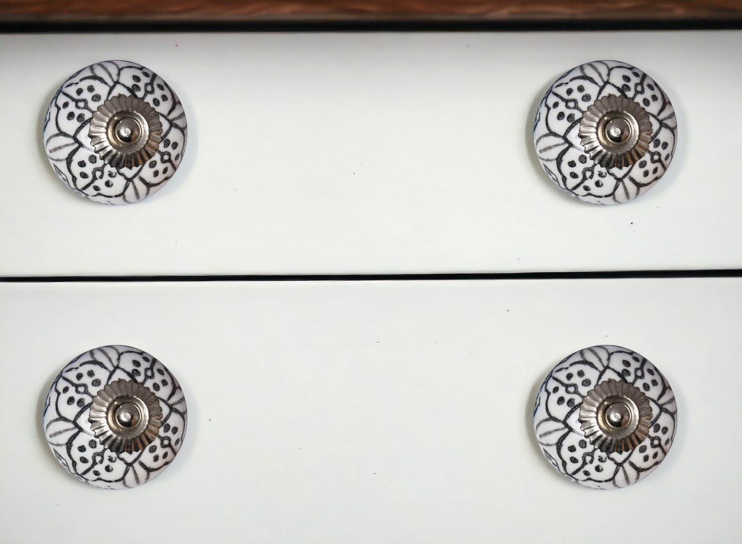 Set of Eight Black And White Ceramic And Metal Drawer Pull Knobs