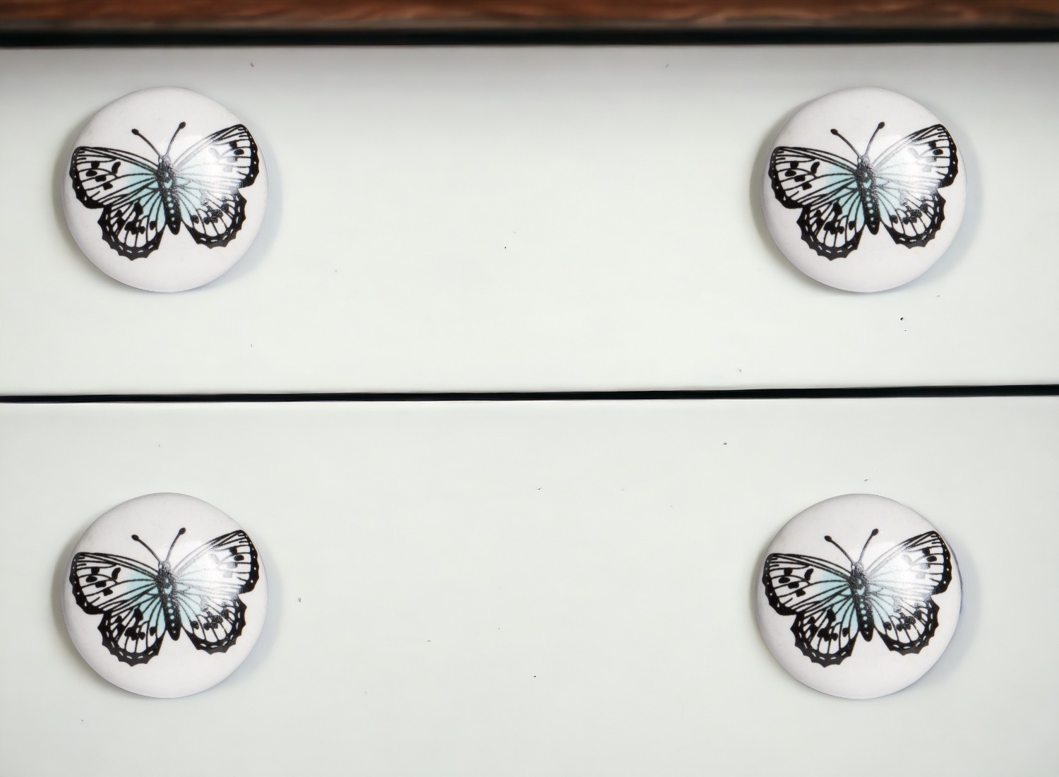 Set of Eight Black And White Ceramic And Metal Drawer Pull Knobs