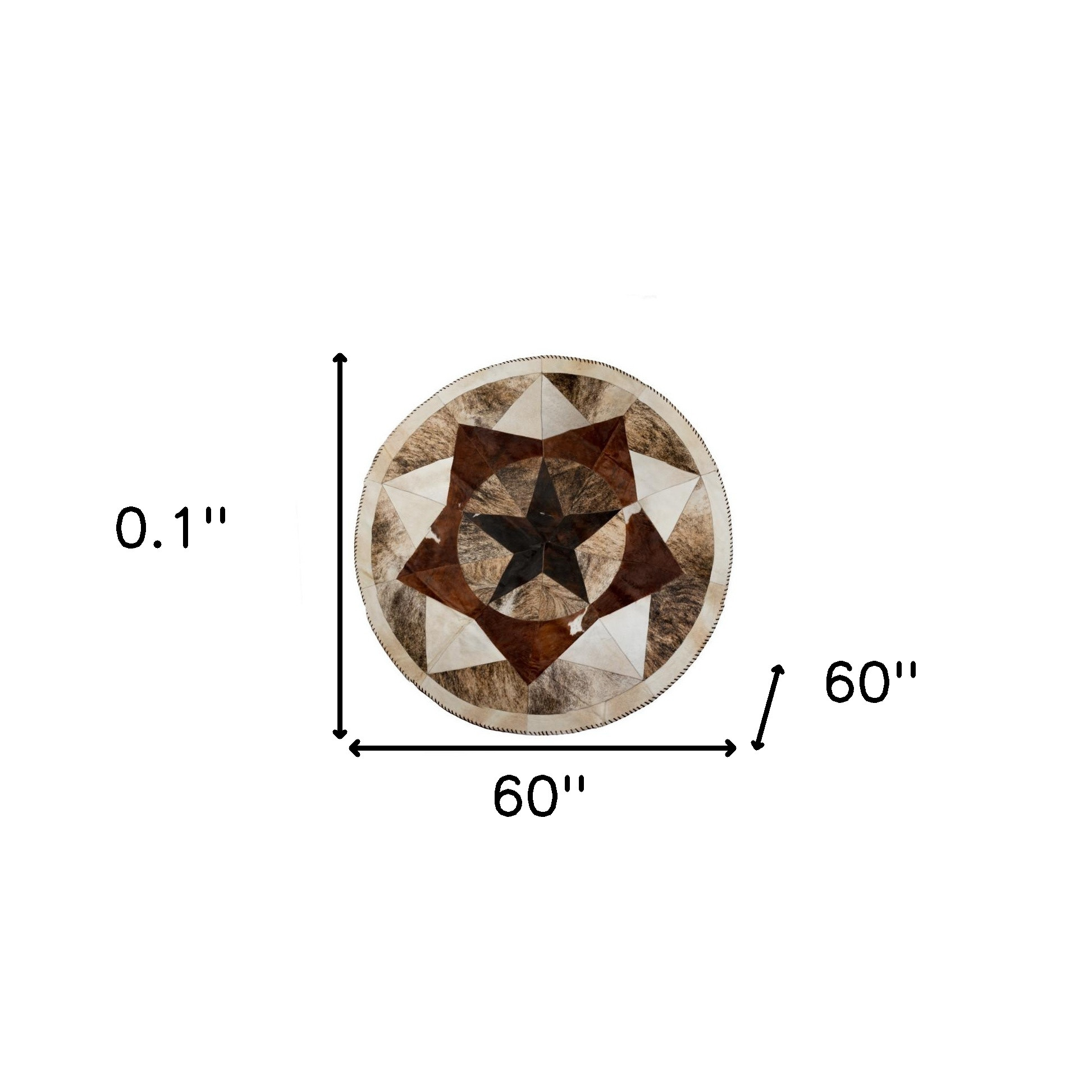 Set an inviting tone in your space with this 5-foot brown cowhide patchwork round rug. Ideal for spaces with kids and pets, this rug is stain resistant to help repel dirt and spilled liquids. Crafted from cowhide fibers that give this piece premium texture, refinement, and appeal. This smaller sized, rustic styled rug is just what you need for your walkway, bedside, in front of door, cabinet, refrigerator, or chair. 0.10-inch h x 60.00-inch w x 60.00-inch d.