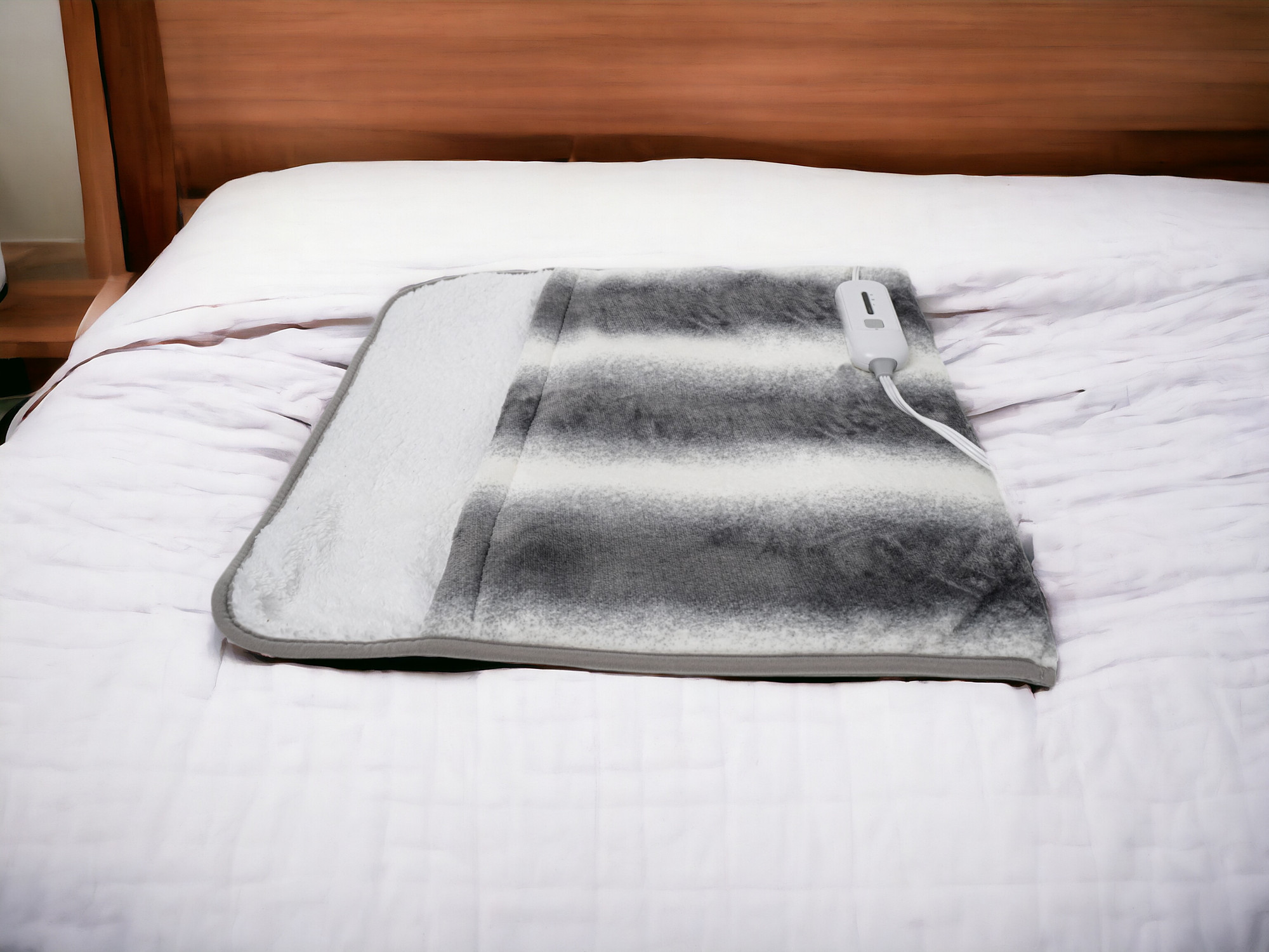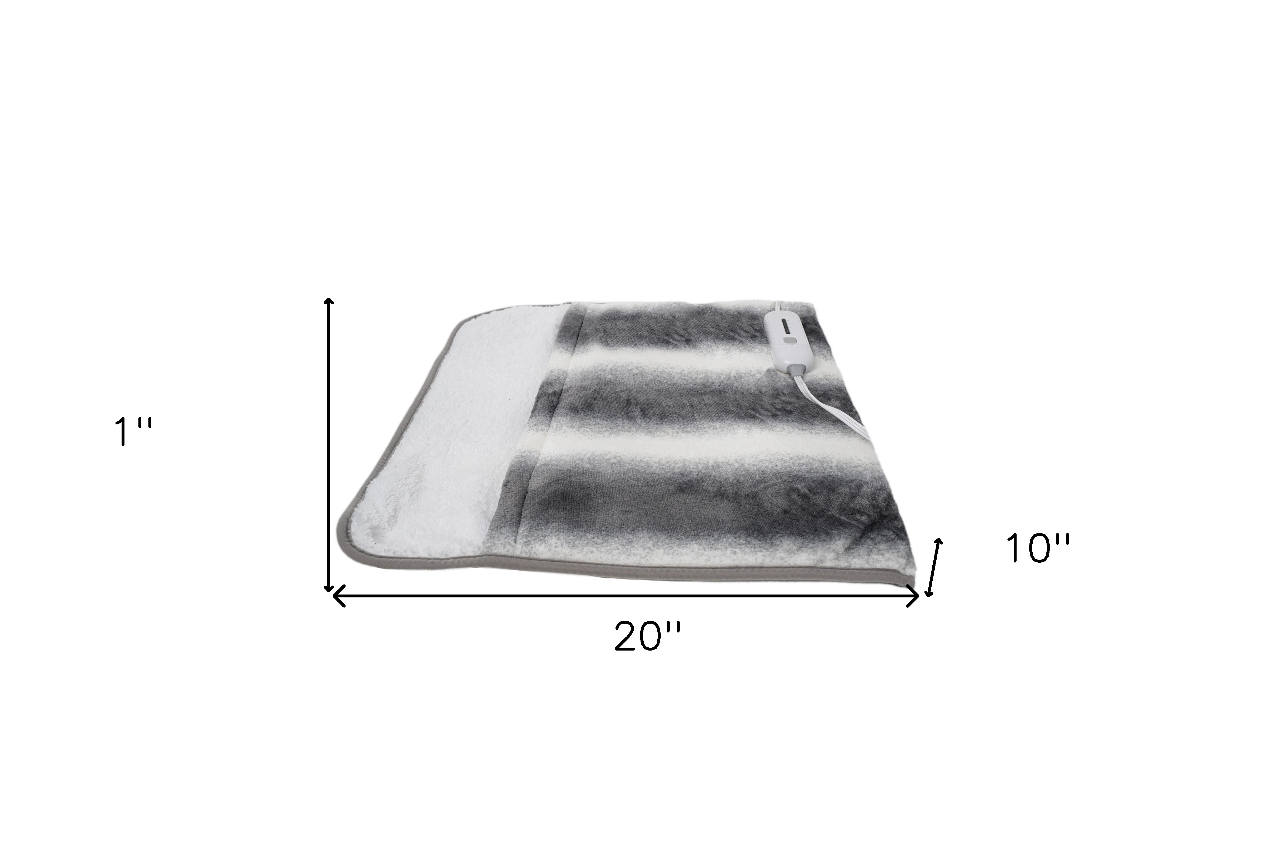 Whether you're curling up for movie night or you need an extra layer of warmth as you drift off to sleep, this 20-inch x 22-inch gray and white faux fur heated electric knitted animal print plush throw blanket is the perfect solution. This plush throw is cozy soft beyond belief and oh-so-giftable. For peace of mind, safety, and convenience, this blanket includes an electric plug-in power wired controller with an auto shut-off that protects from overheating. This textural knitted blanket in a animal print pattern looks fabulous and is perfect for staying warm cozy in the winter months. Made from faux fur this blanket will make a great addition to any room it's added to. The heated blanket warms up fast and is efficient in keeping you comforted. Add extra texture to your decor and turn your room into an inviting space. This cozy throw blanket makes the perfect add-on to movie nights and lazy afternoons. 22-inch h x 20-inch w x 1-inch d.