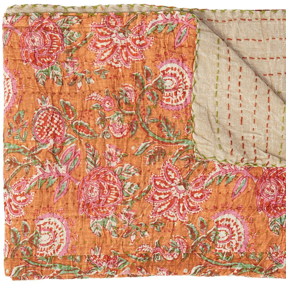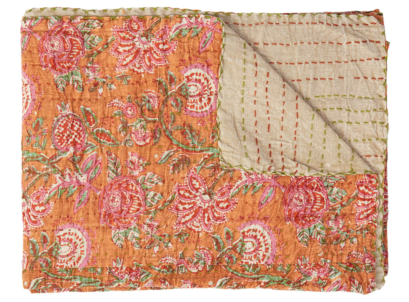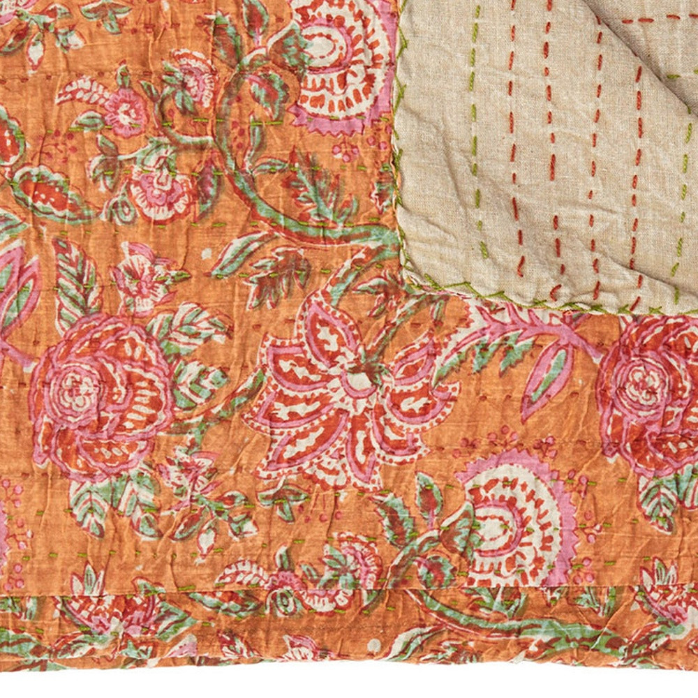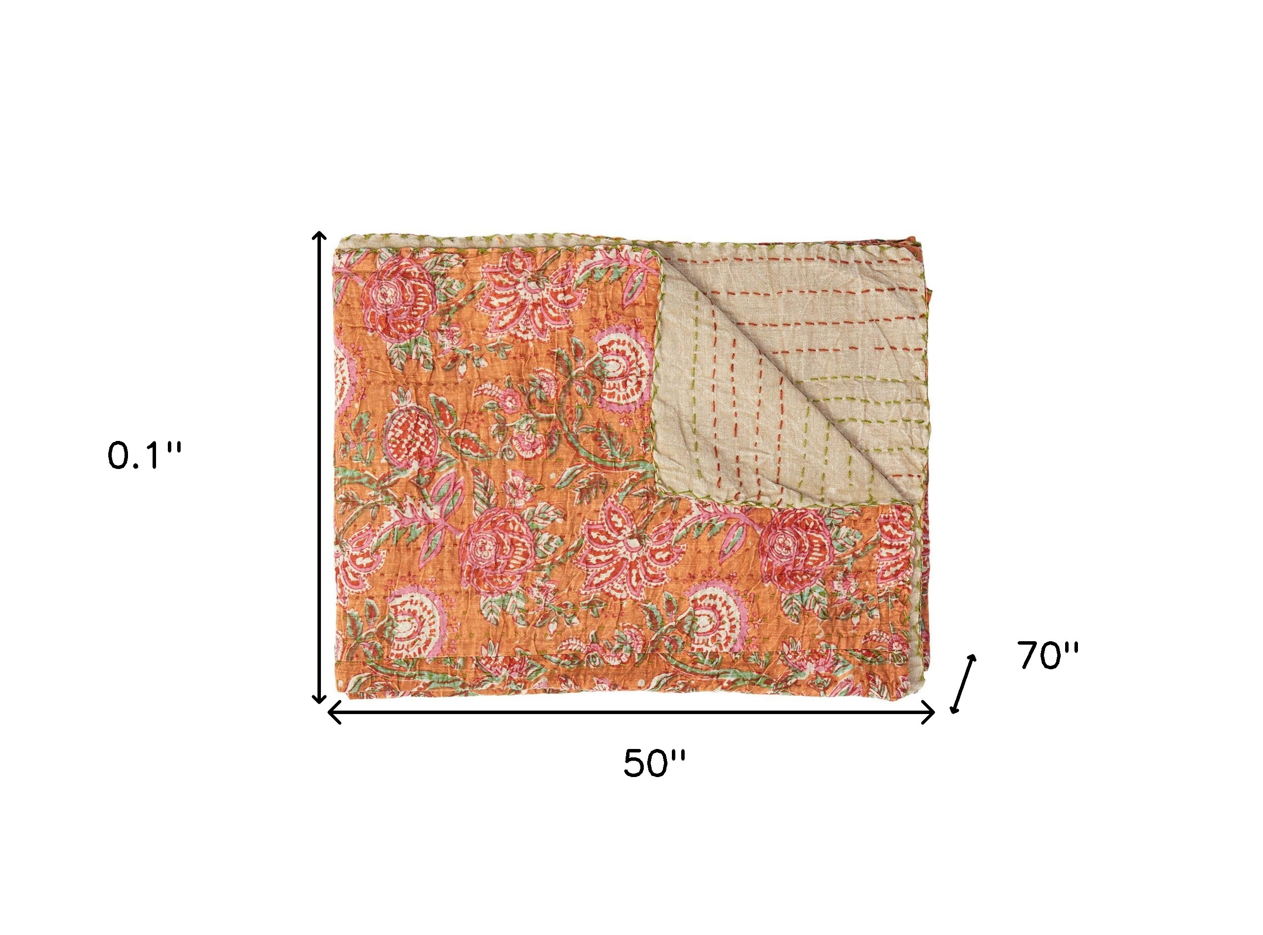 Bring warmth, comfort and style to your space with this 50-inch x 70-inch orange green and pink cotton quilted floral throw blanket with embroidery. Featuring beautiful embroidery, this embellished throw is of the highest quality and design. Features an intricate quilt stitch floral pattern. Made from cotton this blanket will make a great addition to any room it's added to. 70-inch h x 50-inch w x 0.1-inch d.