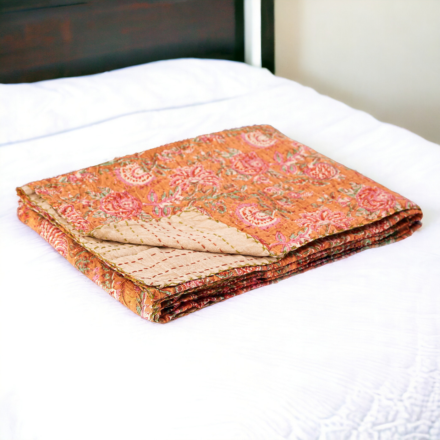 quilted floral throw blanket embroidery, cotton quilted floral throw blanket, quilted floral throw blanket, floral throw blanket embroidery, pink cotton quilted floral throw |