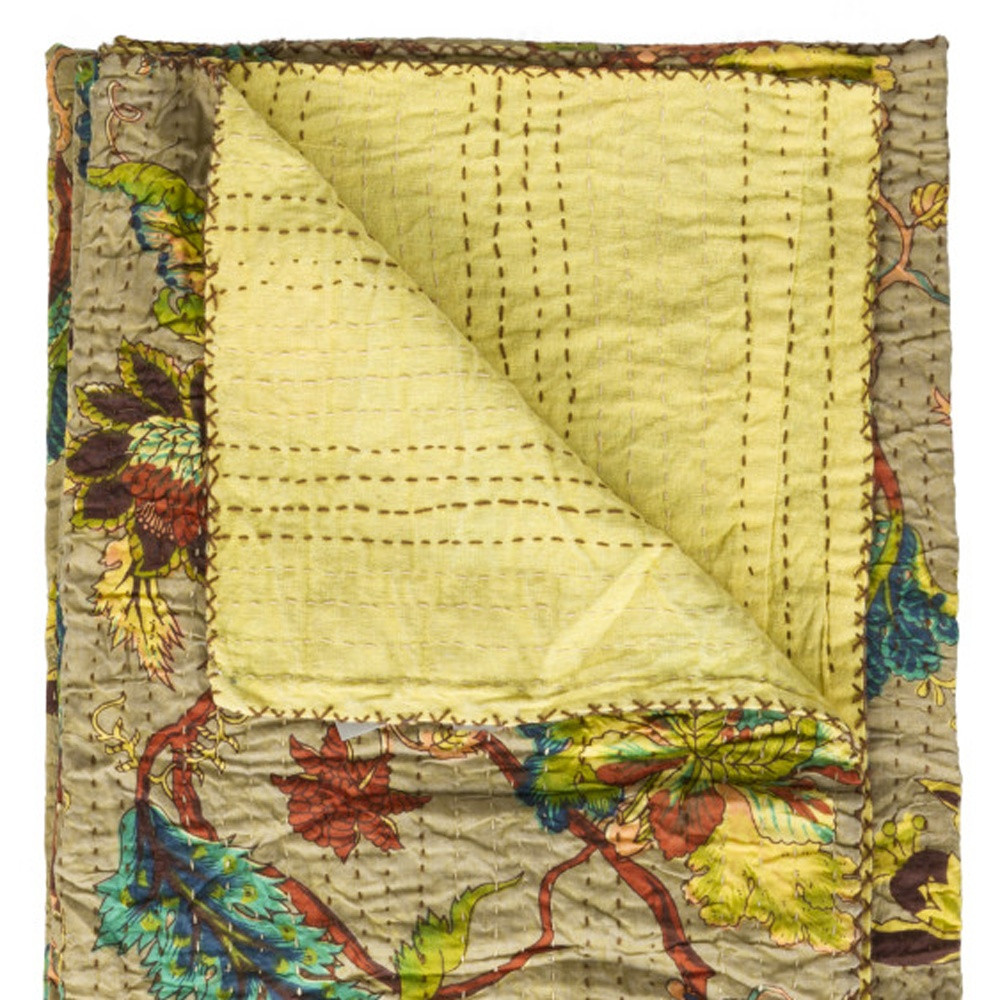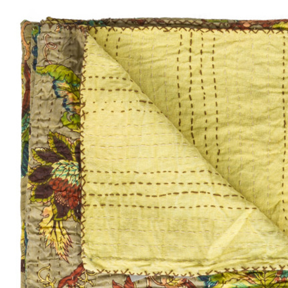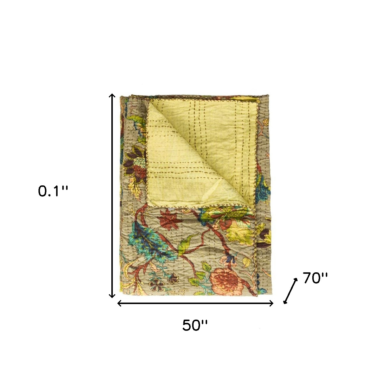 This 50-inch x 70-inch yellow green and red cotton quilted floral throw blanket with embroidery is the best (and most stylish) way to wrap you and your loved ones in the epitome of cozy all year long. Featuring beautiful embroidery, this embellished throw is of the highest quality and design. This quilt stitched floral pattern provides a classic aesthetic and look. Made from cotton this blanket will make a great addition to any room it's added to. 70-inch h x 50-inch w x 0.1-inch d.