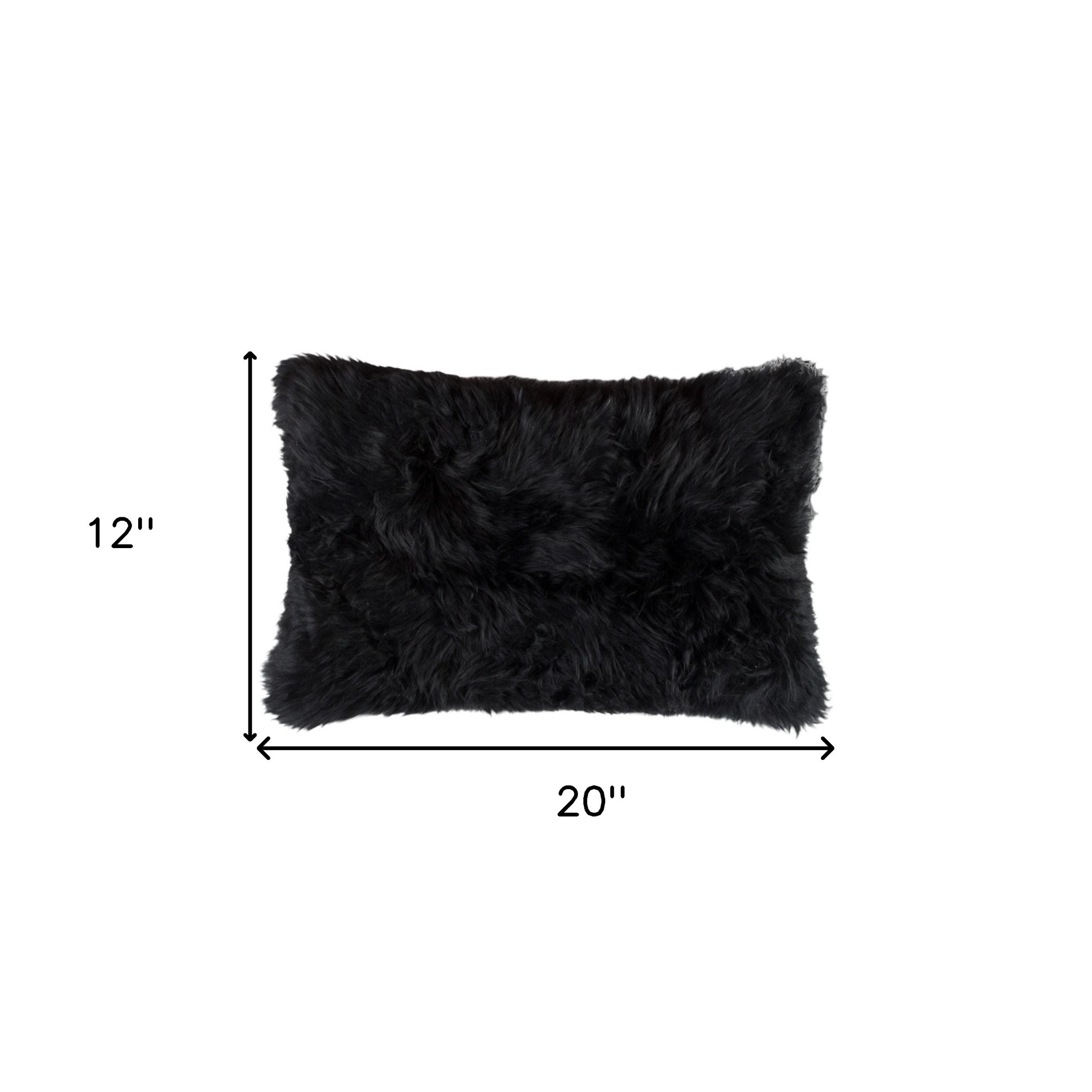 Unique and decorative, this comfortable set of two 12-inch x 20-inch black sheepskin lumbar throw pillows will leave a lasting impression. This luxuriously soft pillow set is expertly made of high grade, genuine sheepskin in a black coloration. Elegantly chic, these pillows are the epitome of luxury. Super soft and built to hold its shape, this cotton-filled pillow is a great option. For anyone that loves to decorate or accent their space with color and texture. A great decorative accessory to add color and dimension to your favorite chair, accent your sofa, or to use as part of your bed ensemble. 12-inch h x 20-inch w x 5-inch d.