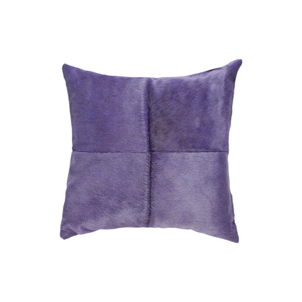 The perfect complement to your sofa, favorite chair, or bed, this set of two 18-inch purple cowhide throw pillows is a great decorative accent. The luxurious purple coloring of the genuine cowhide on these pillows will add dimension and texture to your space. Elegantly chic, these pillows are the epitome of luxury. Super soft and built to hold its shape, this polyfill-filled pillow is a great option. Great to use on its own or mix with other decorations for the perfect look. A great decorative accessory to add color and dimension to your favorite chair, accent your sofa, or to use as part of your bed ensemble. 18-inch h x 18-inch w x 5-inch d.