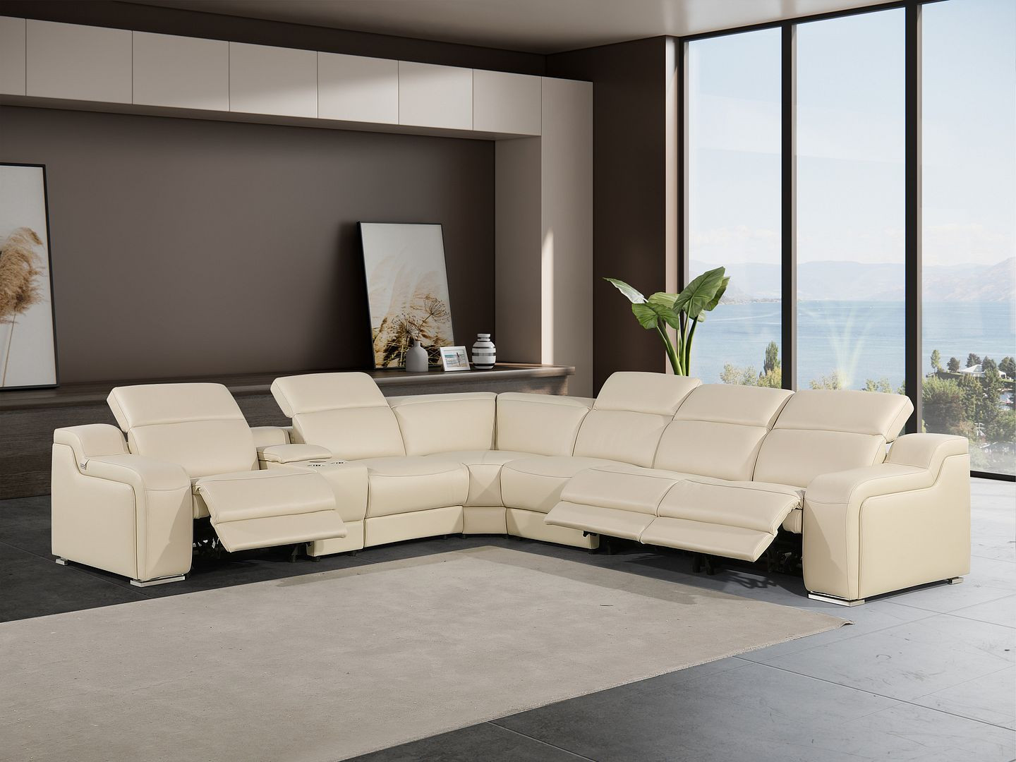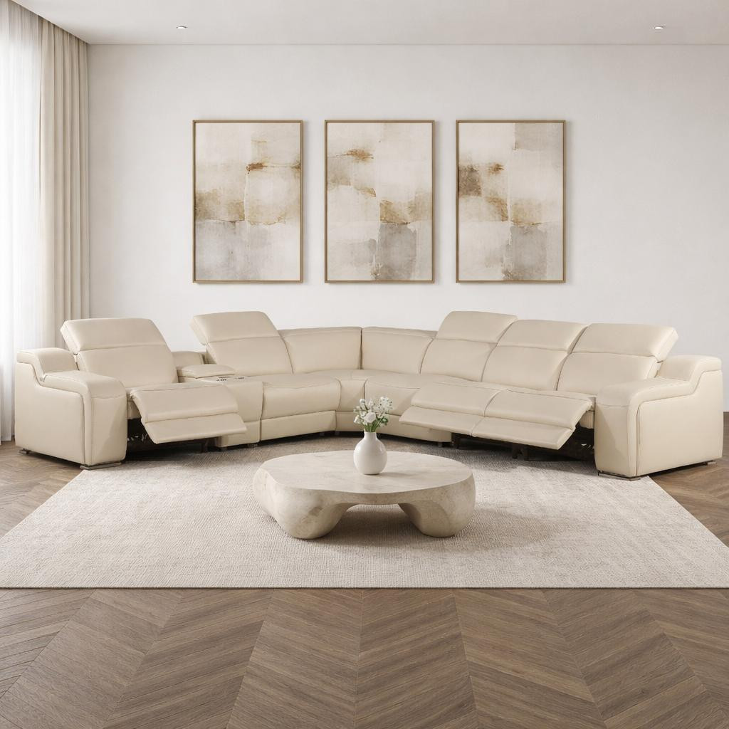 beige italian leather power reclining, leather power reclining curved seven, seven piece corner sectional console, italian leather power reclining curved, curved seven piece corner sectional |