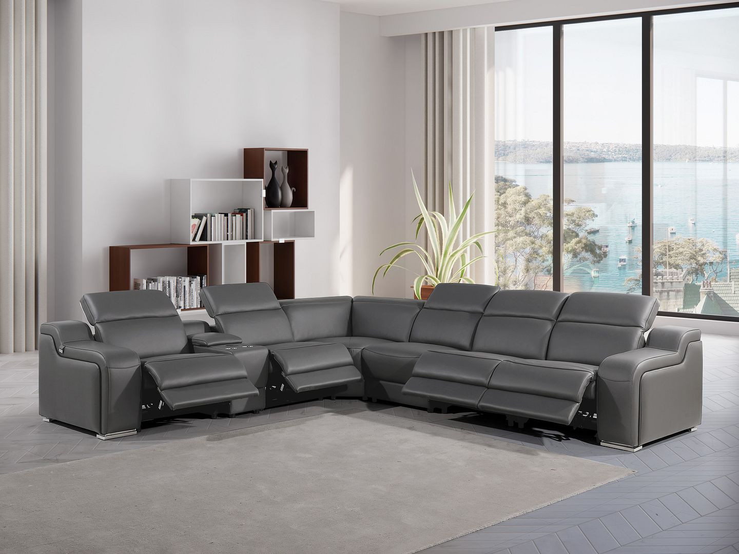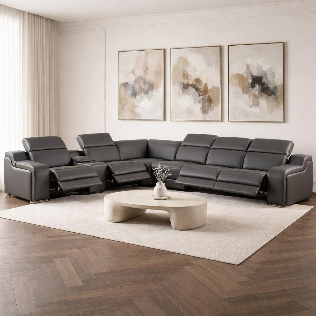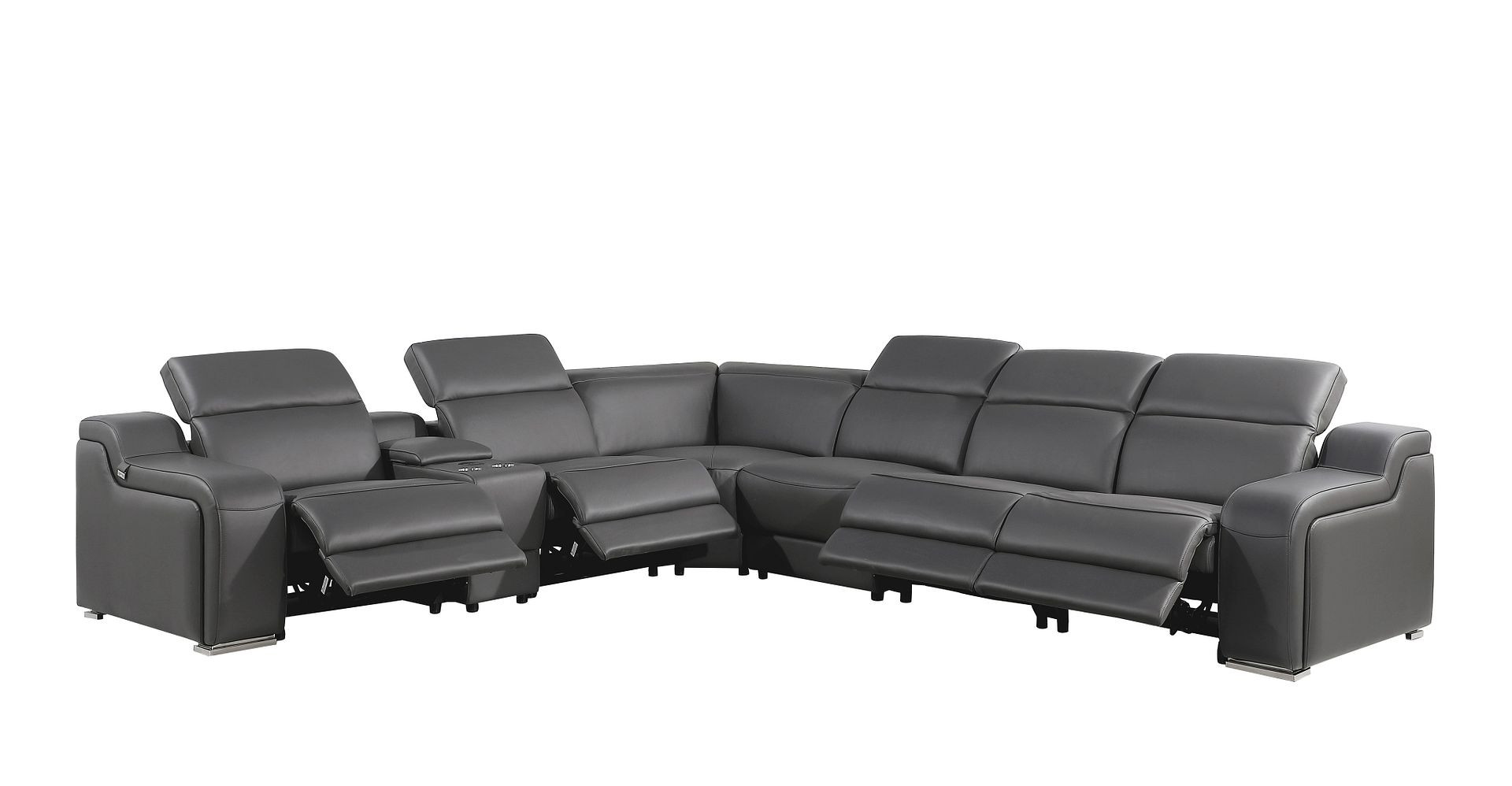 leather power reclining curved seven, gray italian leather power reclining, seven piece corner sectional console, italian leather power reclining curved, curved seven piece corner sectional |